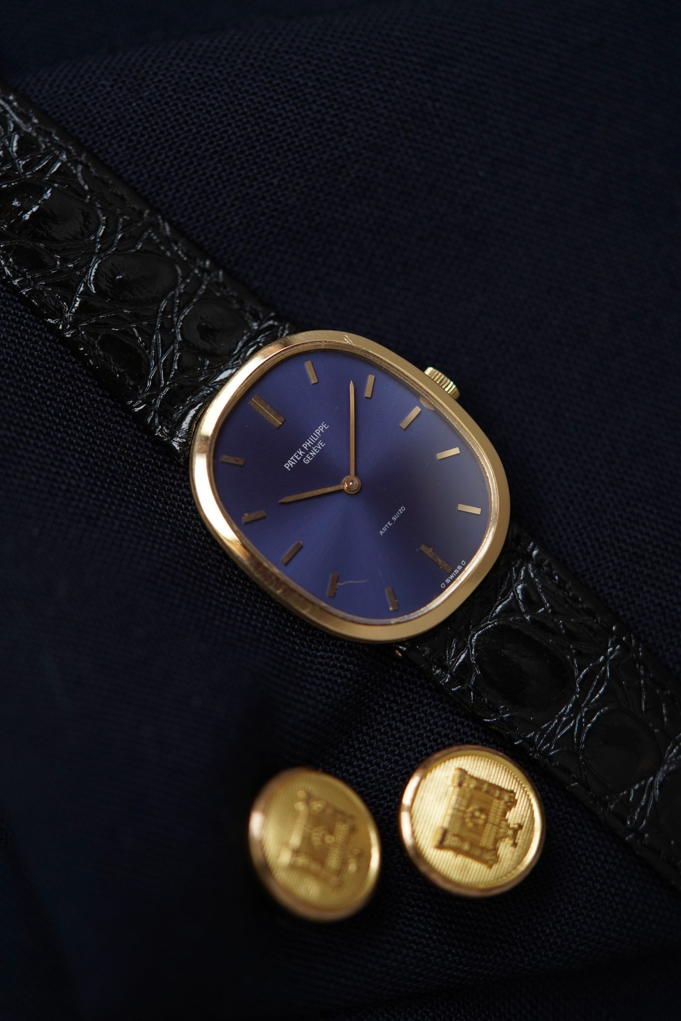 A rare and unique opportunity to own one of the very first Patek Philippe ellipses ever made. This first series ref. 3548 with double stamped ‘Arte Suizo’ dial meaning the watch was destined for the South American market.