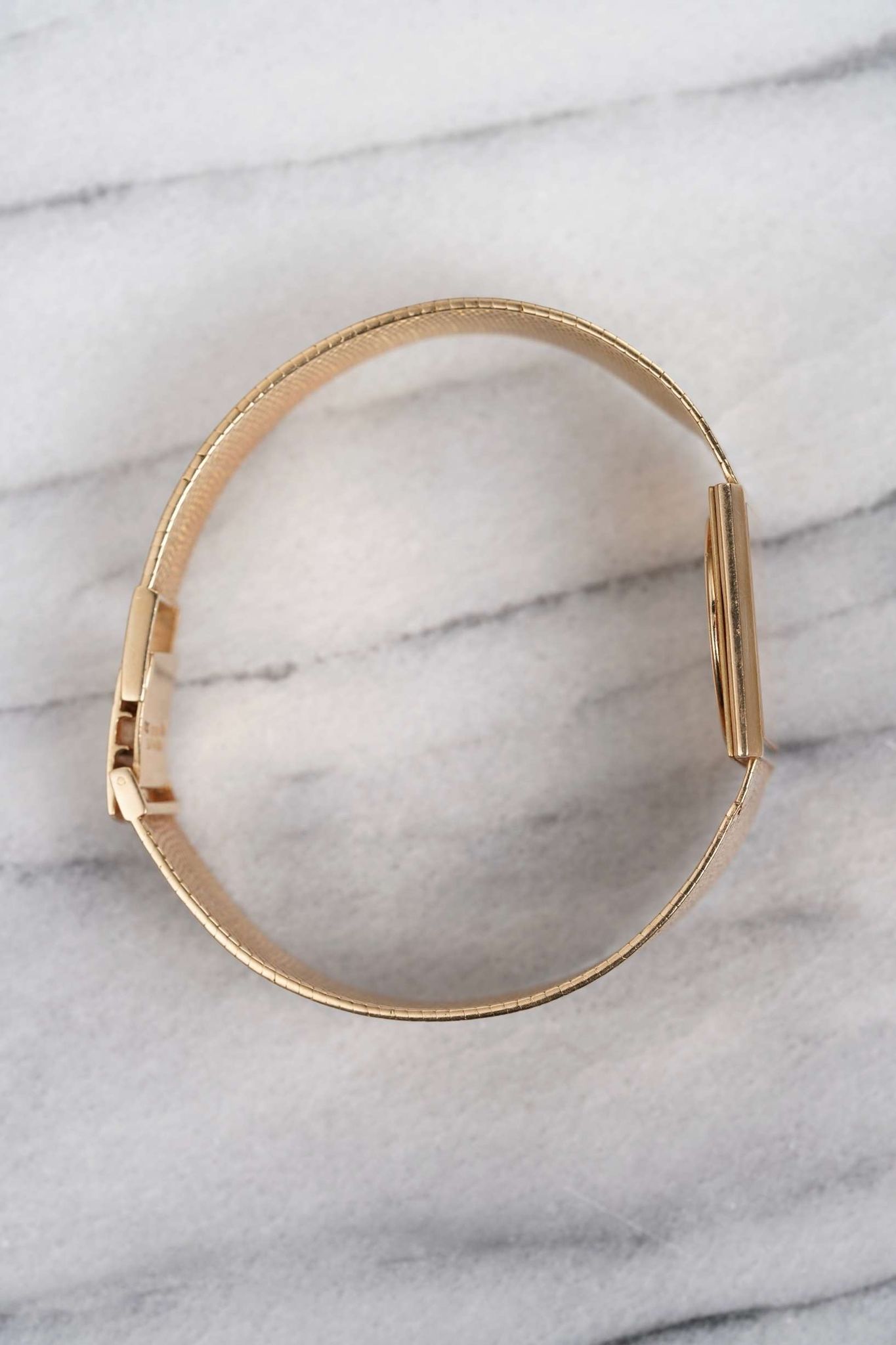 Here we have a unique vintage integrated 18k yellow gold Patek Philippe reference 3490 with a champagne dial from the 1970s. Keeps great time and is fully functional. The bracelet fits up to a 7.5 inch wrist. Measurements include a 25x30mm case size. The bracelet and dial both have the same texture throughout which gives it a sleek look. The case houses a clean blue Roman numeral dial with applied markers at 3,6,9, and 12. The dial has some marks throughout the dial as seen in photos. It features an unpolished sharp case and bracelet powered by a manual wind movement. It keeps great time and is fully functional. Case size is 26mm including the crown.