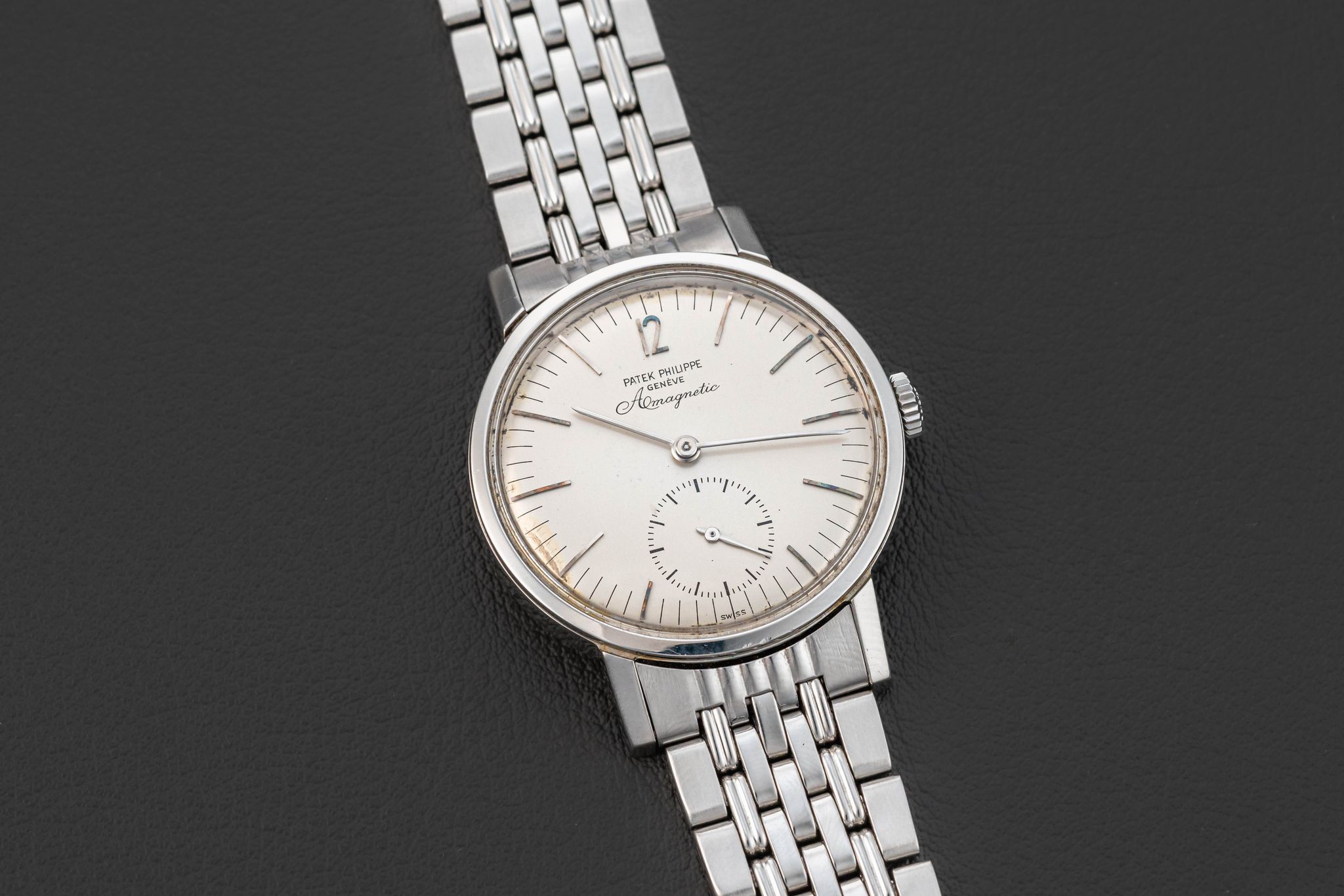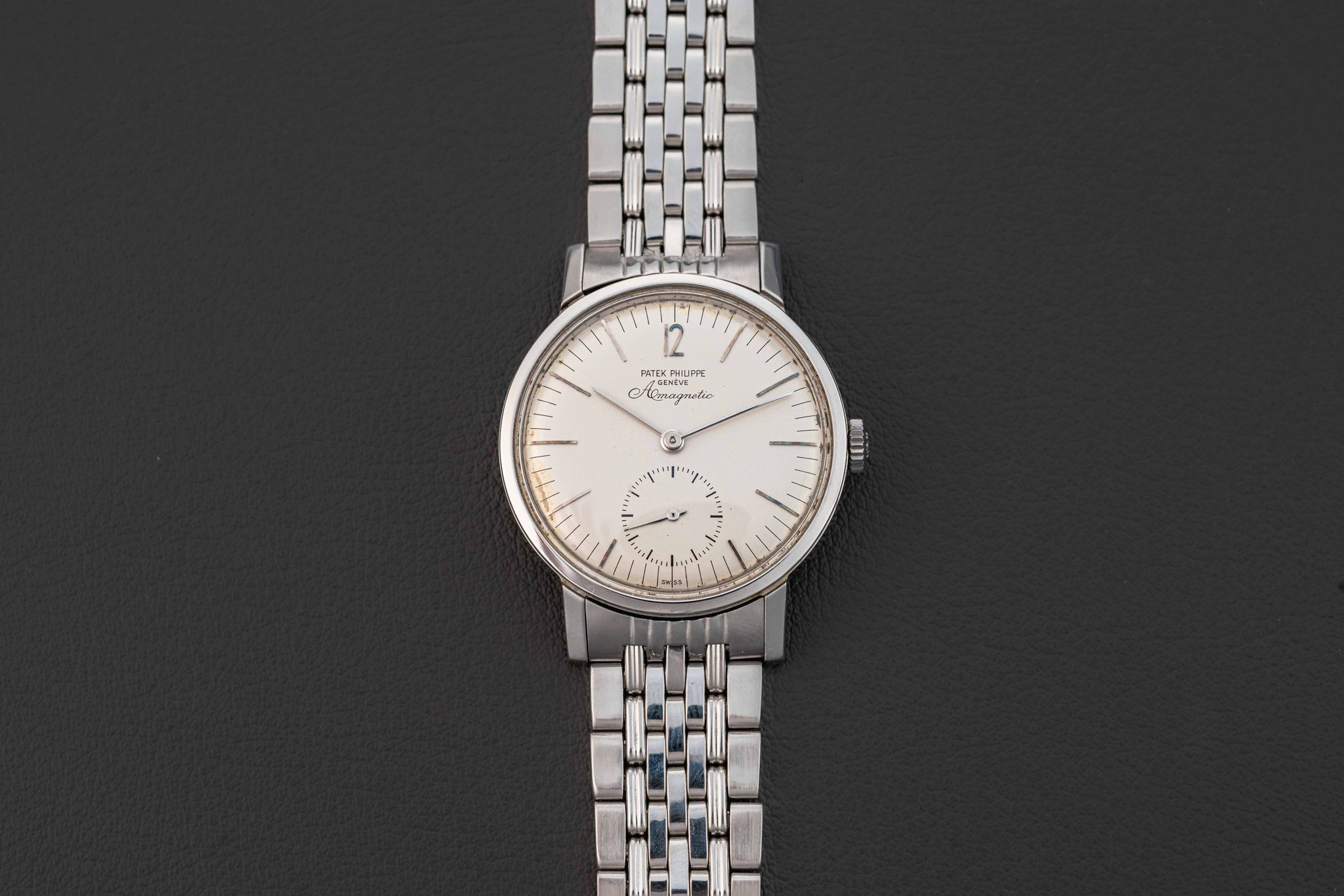 Up for grabs is a very special and rare Patek Philippe Amagnetic time-only watch, the Reference 3417, which was produced by Patek for roughly 10 years (between 1958-1968), and only available in stainless steel. Amagnetic watches were produced by various makers in order to withstand magnetic fields while used during commercial, industrial, scientific, medical, etc., operations, where magnetism could be a problem. This example has been confirmed by Patek as all matching, produced in 1964, and an Extract from the Archives is included in the sale.