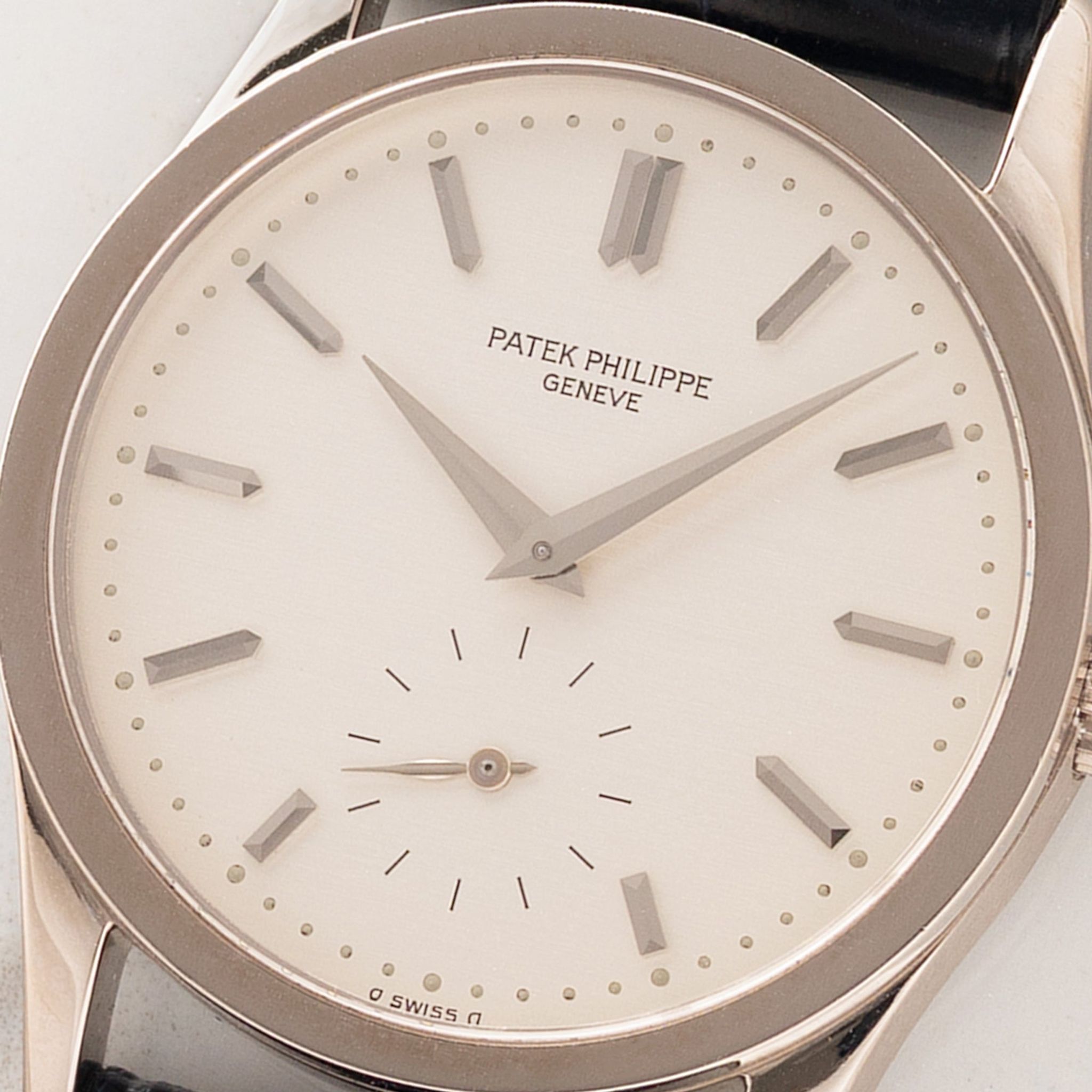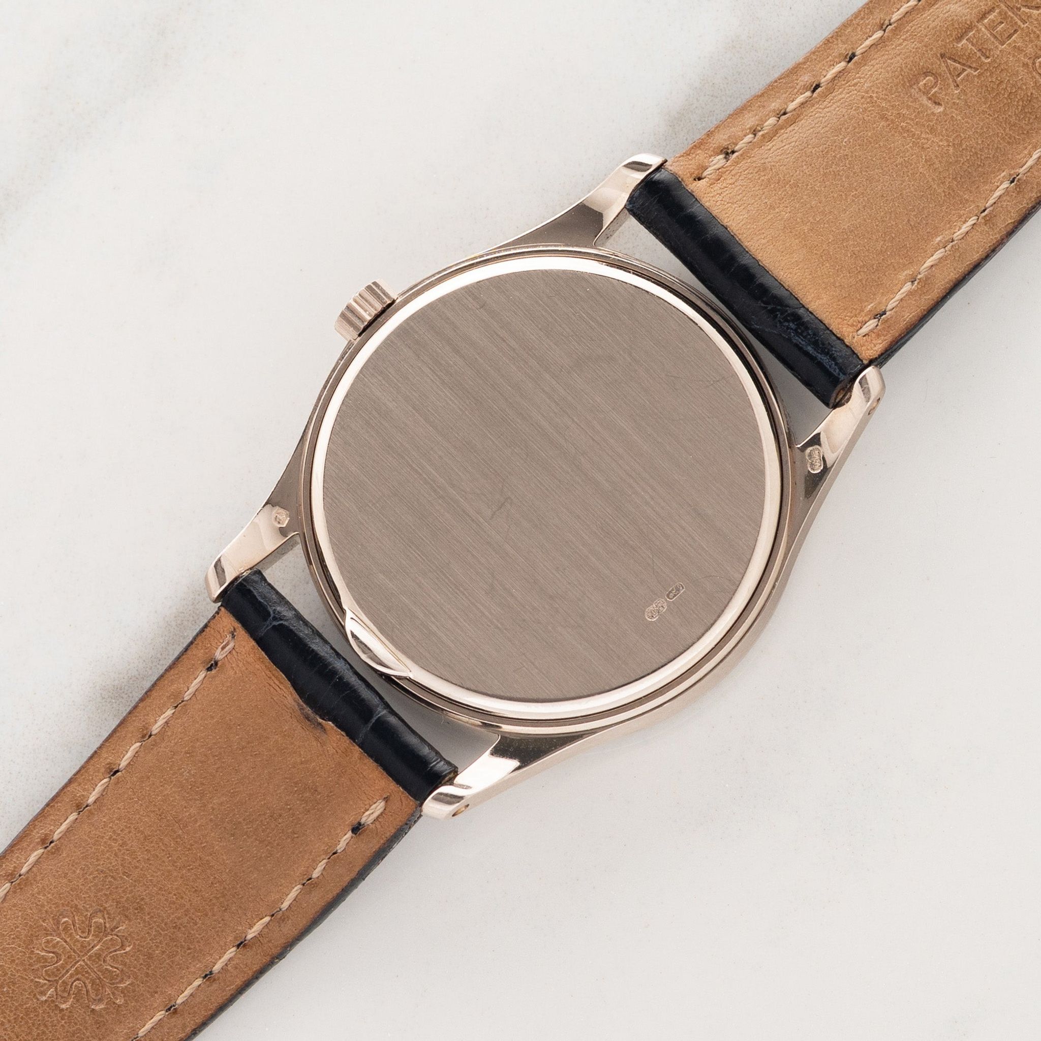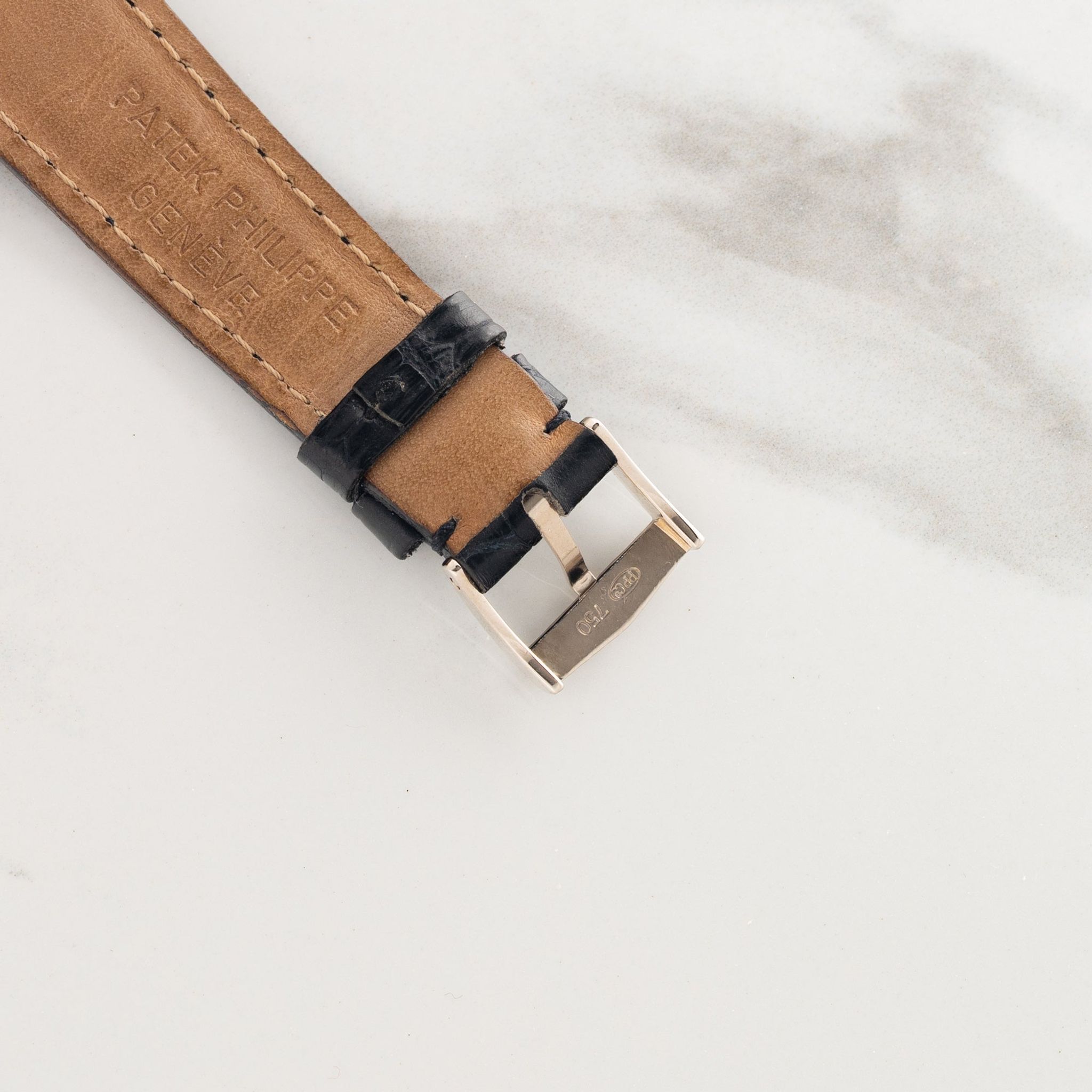 On offer is a gorgeous example, ref. 3796G which is housed in white gold and features the classic "brushed" silver dial. As many Patek collectors know, the white-metals examples (platinum, WG and steel) were produced in fewer quantities, potentially making them more special as time goes on. This piece remains in fantastic neo-vintage condition with a clean case, displaying crisp hallmarks. The dial and hands are excellent with no notable wear under magnification. This example benefits from being accompanied by its original 18k white gold PP buckle, 18k spring bars and PP gator strap. If you've been looking for the ultimate classic dress watch, this ref. is one of our top recommendations. An archive extract has been requested to be included in the set.