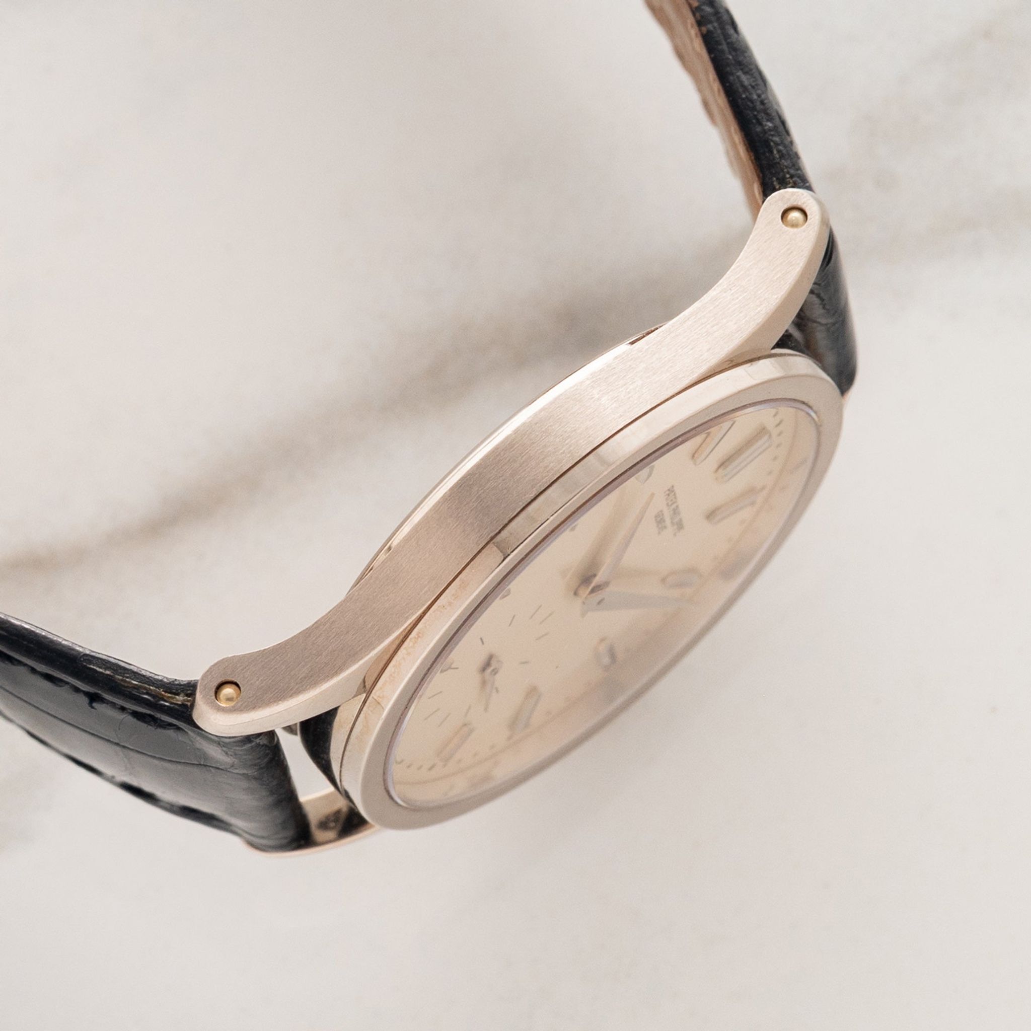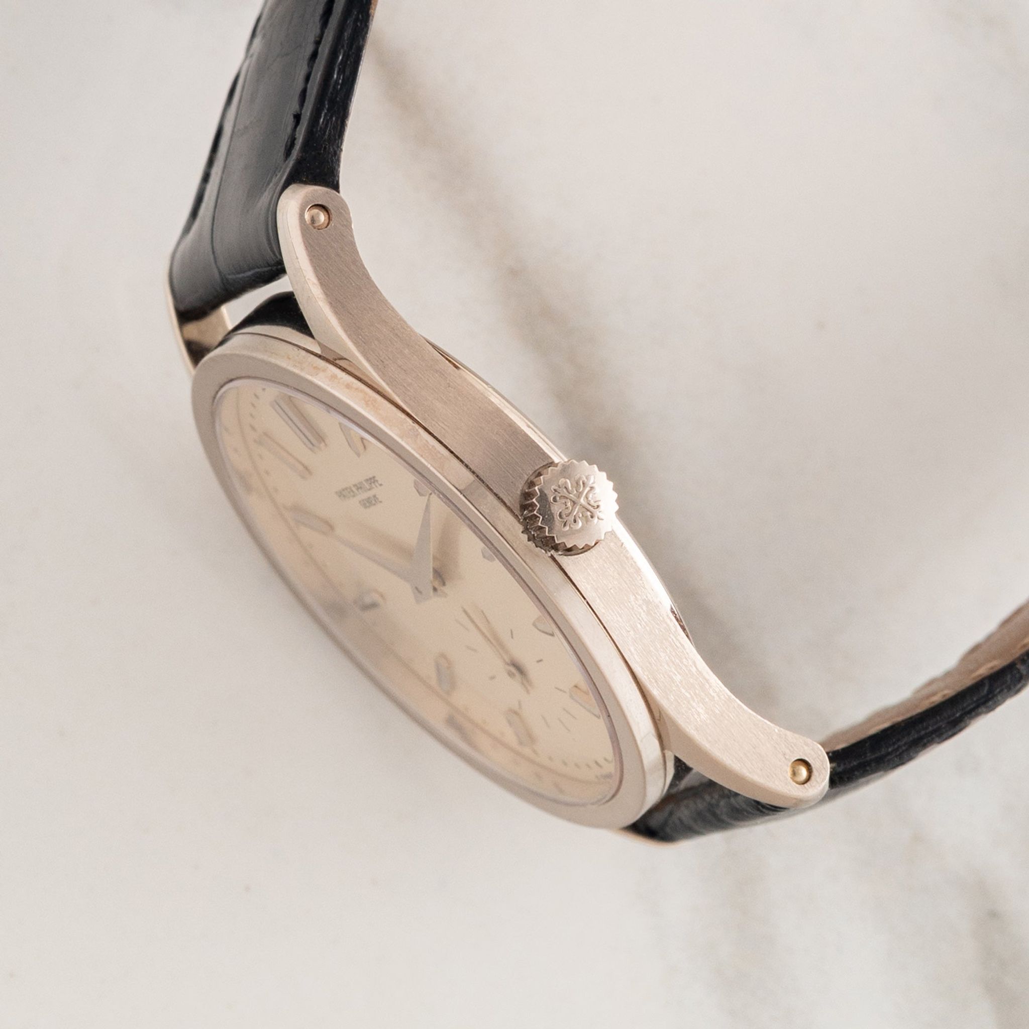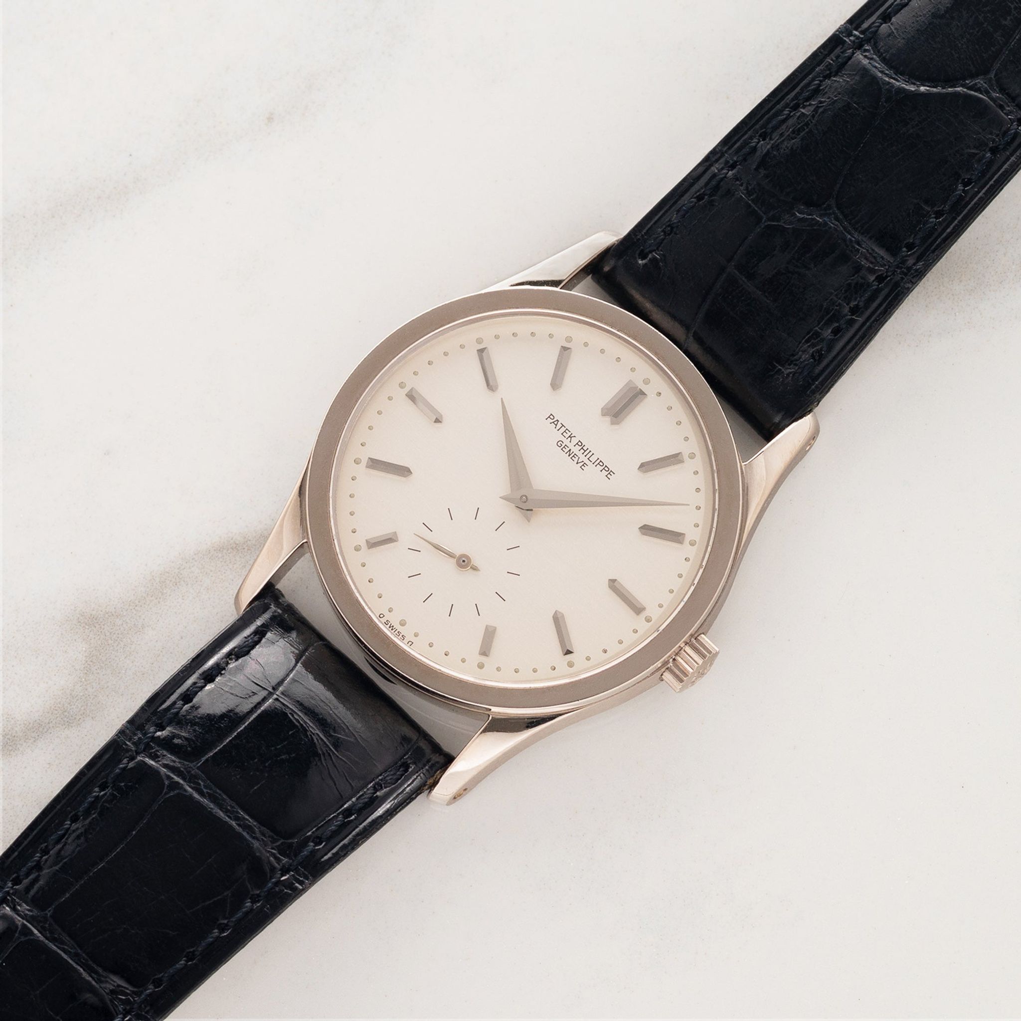 On offer is a gorgeous example, ref. 3796G which is housed in white gold and features the classic "brushed" silver dial. As many Patek collectors know, the white-metals examples (platinum, WG and steel) were produced in fewer quantities, potentially making them more special as time goes on. This piece remains in fantastic neo-vintage condition with a clean case, displaying crisp hallmarks. The dial and hands are excellent with no notable wear under magnification. This example benefits from being accompanied by its original 18k white gold PP buckle, 18k spring bars and PP gator strap. If you've been looking for the ultimate classic dress watch, this ref. is one of our top recommendations. An archive extract has been requested to be included in the set.