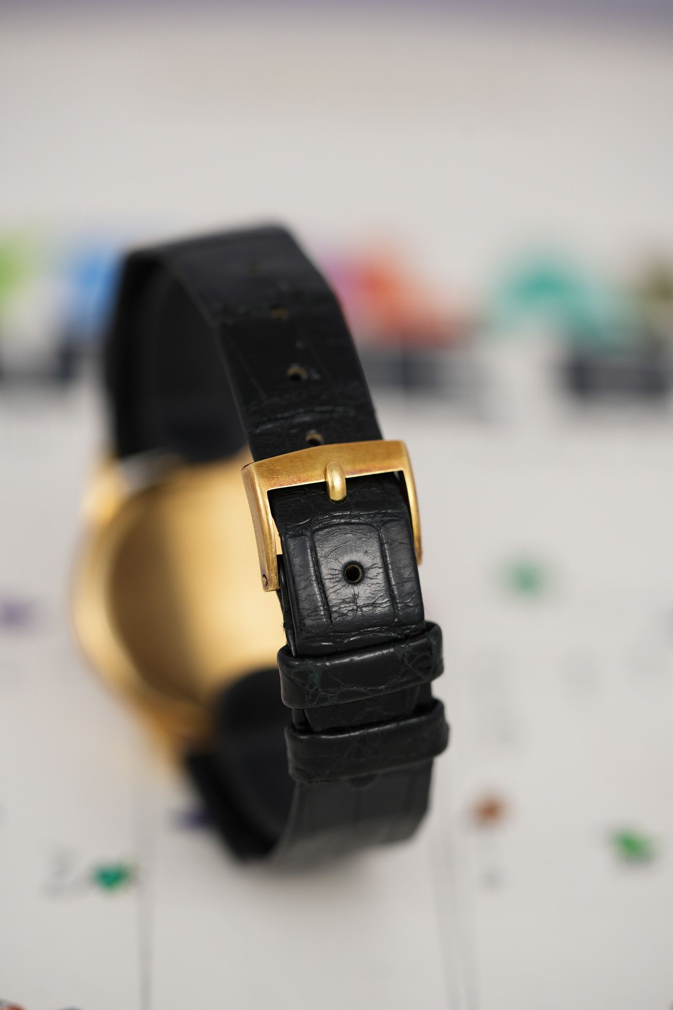 The 18K yellow gold case shows minimal wear with no signs of overpolishing.