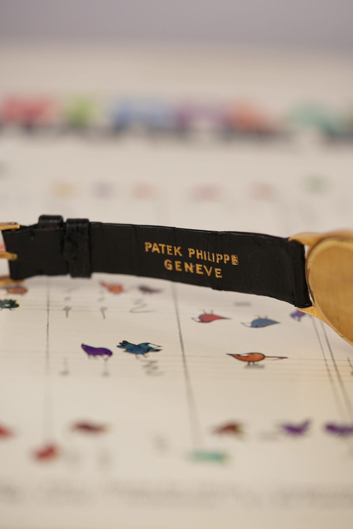 Then there’s the strap: a near-mint, original Patek Philippe brown alligator leather with its original 18K buckle still in place. The gold lettering inside is still intact, almost a small miracle on its own.
