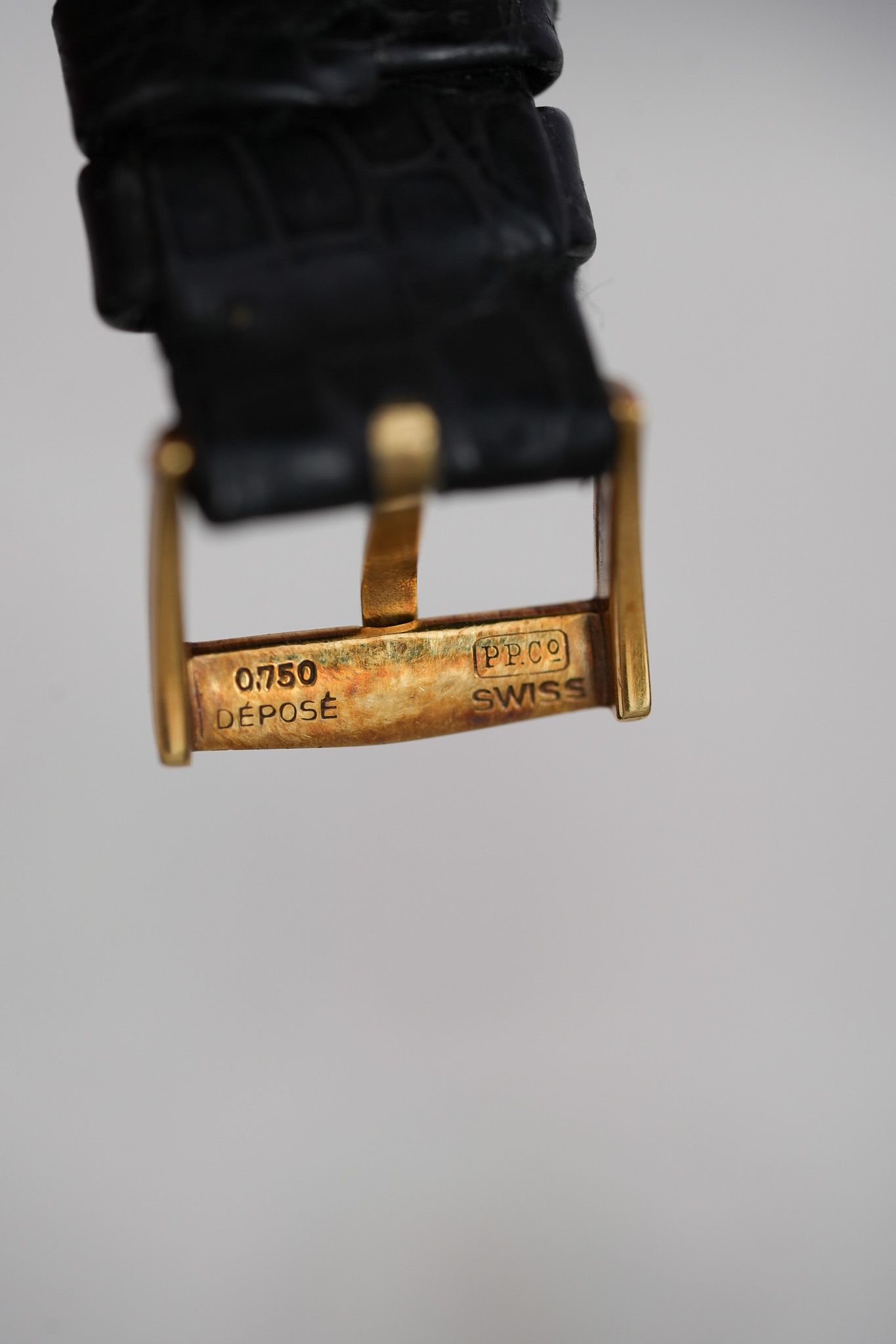 Original Patek 18K tang buckle shows light wear consistent with age.