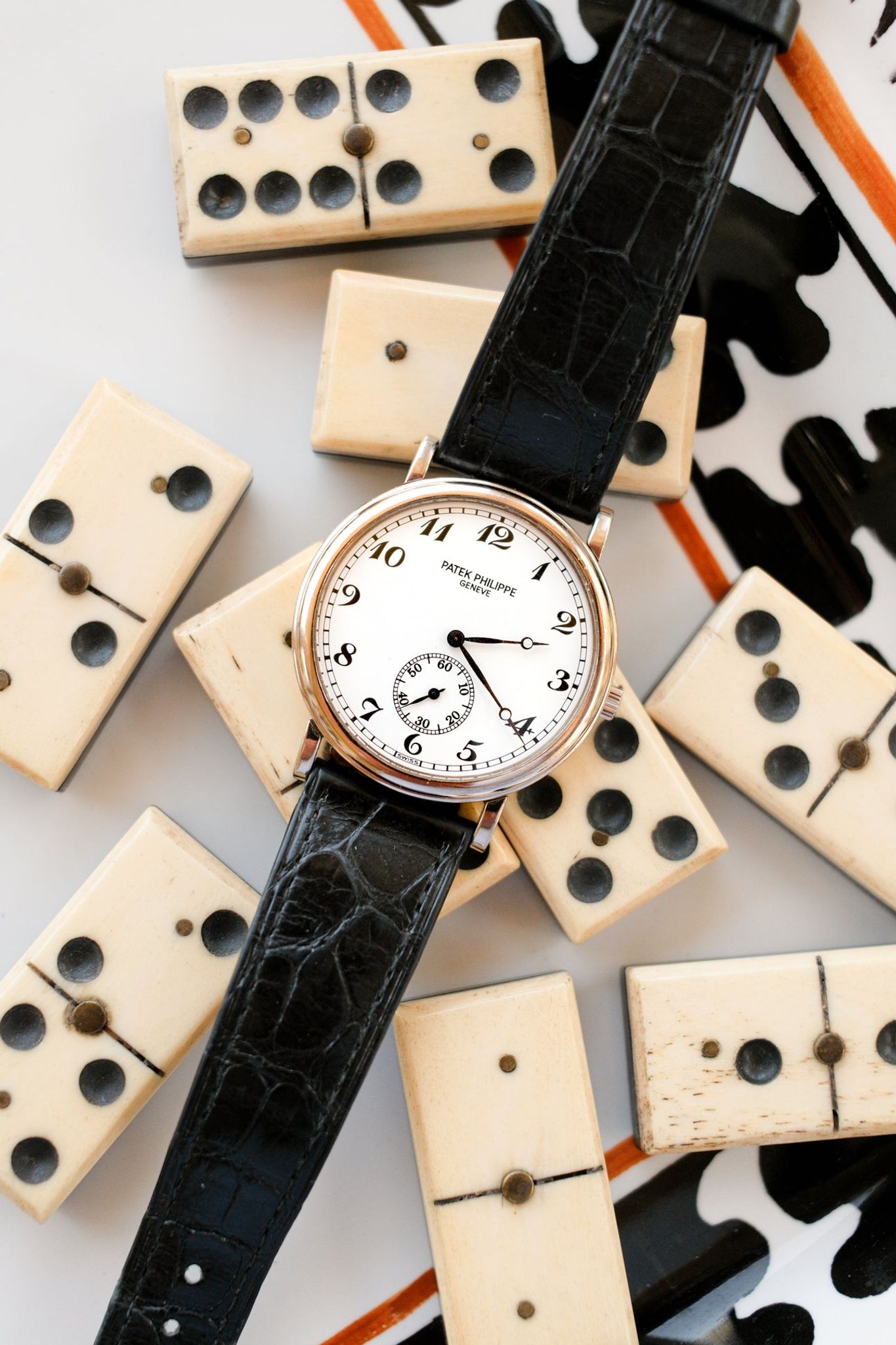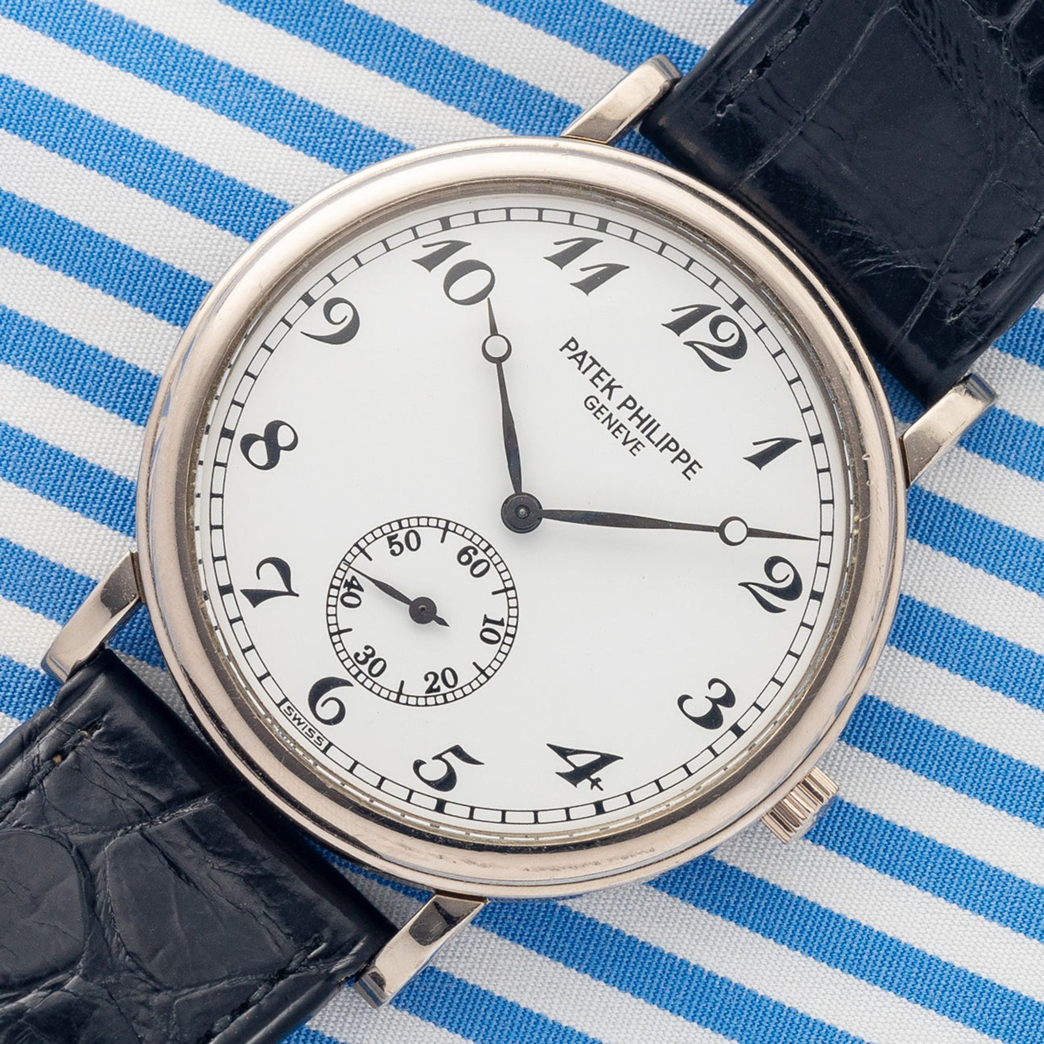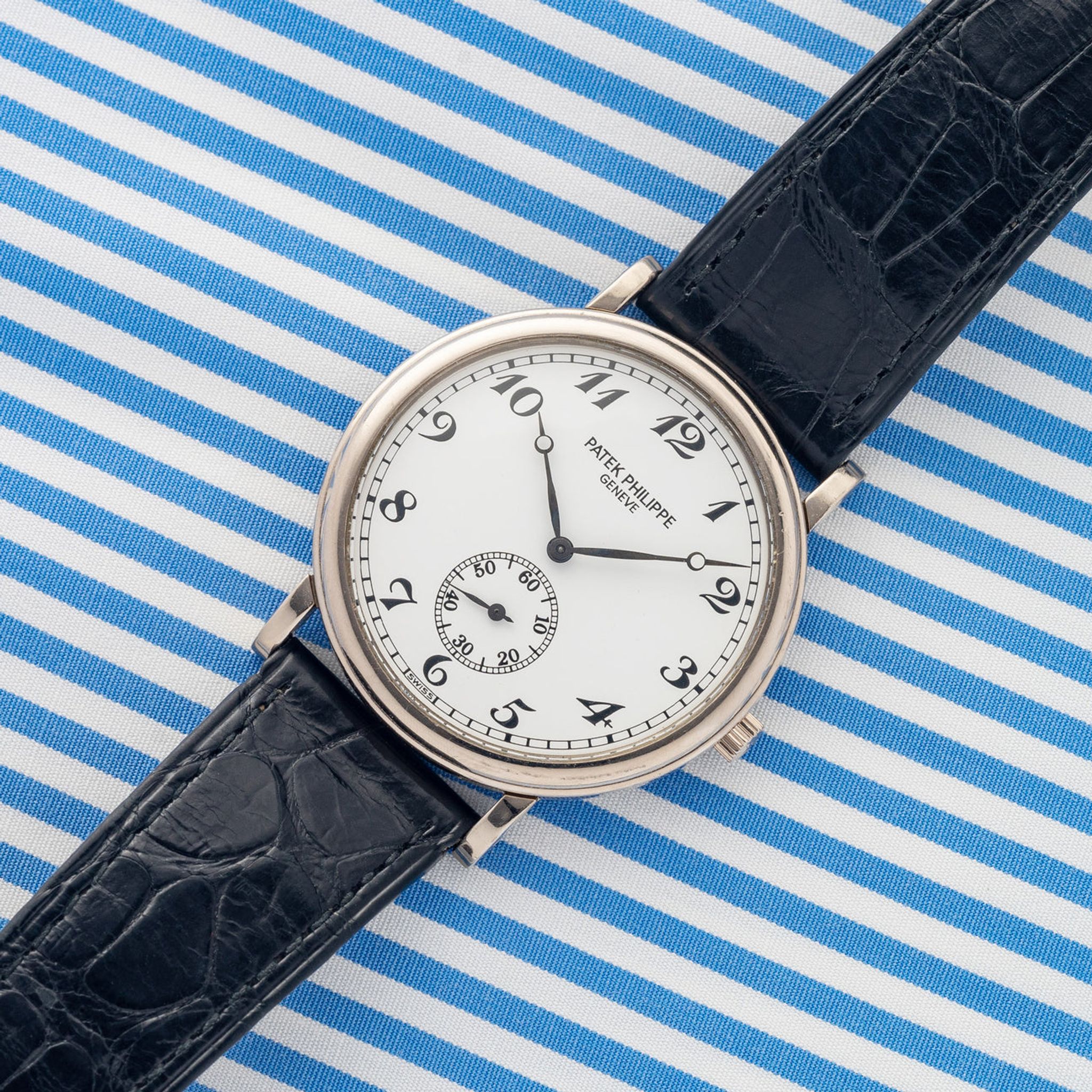 Bracelet: Two piece gator strap in brown with 18k white gold buckle - both Patek Philippe. Accessories: An archive extract can be ordered at the request of the next owner.