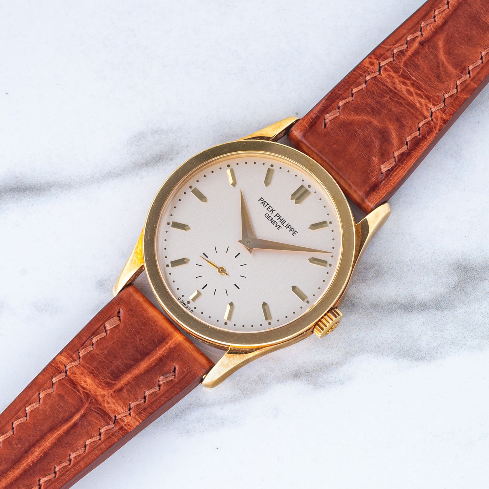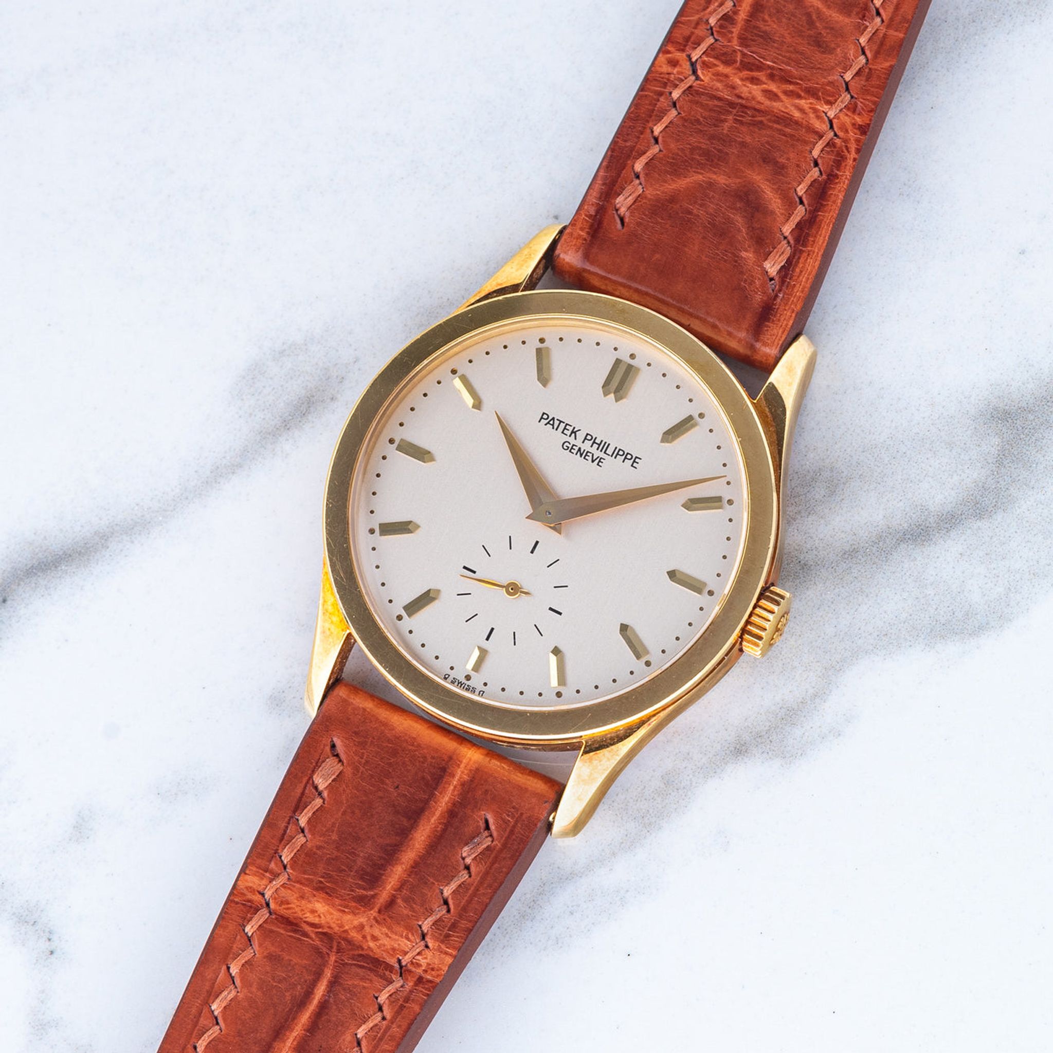 The Patek Philippe Calatrava stands as a testament to one of the most esteemed watch designs from the 20th century, with its origins dating back to the 1930s, commencing with the iconic ref. 96. The updated reference 3796 was introduced in 1982 and ran up until the late 1990s. Minimal updates included a sapphire crystal and new caliber 215. It is often referred to as the last "classic" Calatrava for its identical case shape to the original ref. 96. Although both references share a 30.5mm case width, these pieces are deceptive to many and wear much larger due to their long and curved lug architecture. For the average sized wrist they wear with elegance and are becoming more relevant today than ever as an appreciation for smaller watches is finally being realized again. Collectors with medium to large wrists will find the original Calatrava size a touch too small and for anyone in that camp, the seldom seen ref. 5096 could be just the right ticket. Produced for a short run from 1996 to just 1999, this updated model comes in at 33.5mm, runs on the same cal. 215 but benefits from the addition of a display back which is the first time this was seen in the Calatrava and later carried into the ref. 5196.