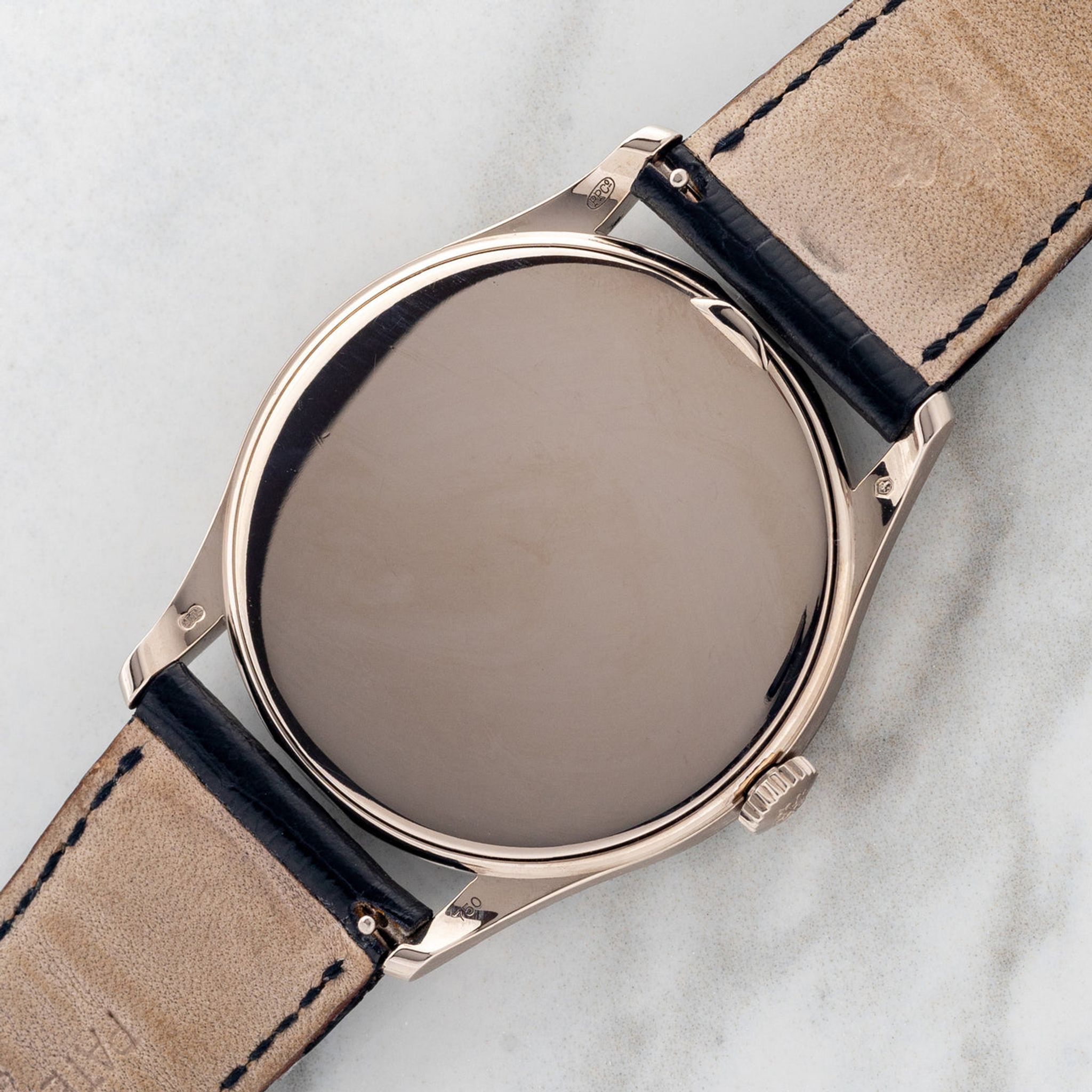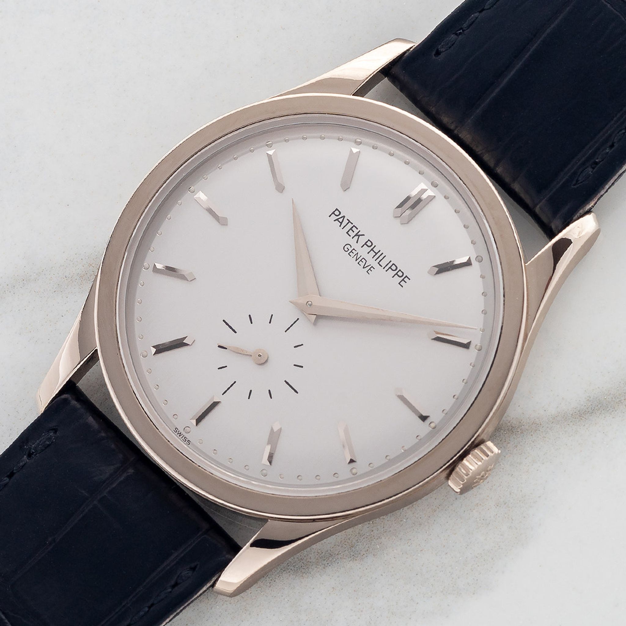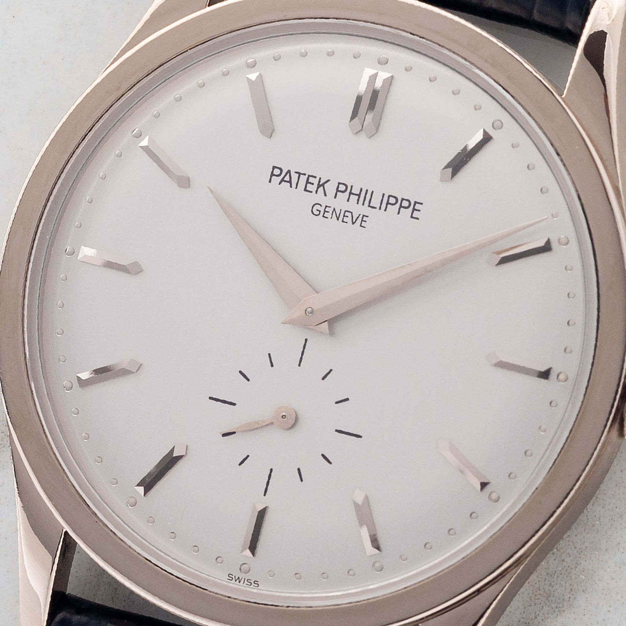 This particular piece, circa 2010 is a true collector grade example and comes with an archive extract adding to its provenance. The dial is mint and the hands are devoid of service marks. The case is very clean and appears unpolished with sharp edges and deep hallmarks. Also included is its Patek Philippe strap and 18k pink buckle. It doesn't get more classic than this for Patek design language and in white gold this piece is perfectly understated as a Calatrava should be.