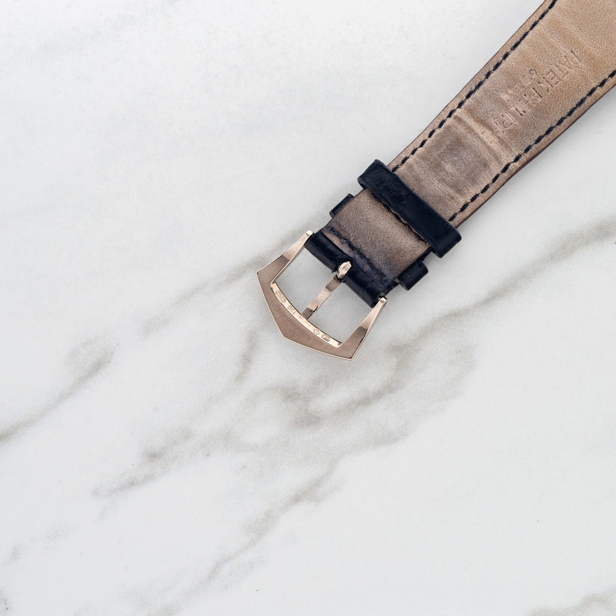 Bracelet: 18k Patek Philippe pin buckle and two piece Patek Philippe strap in black gator. Accessories: Archive extract.