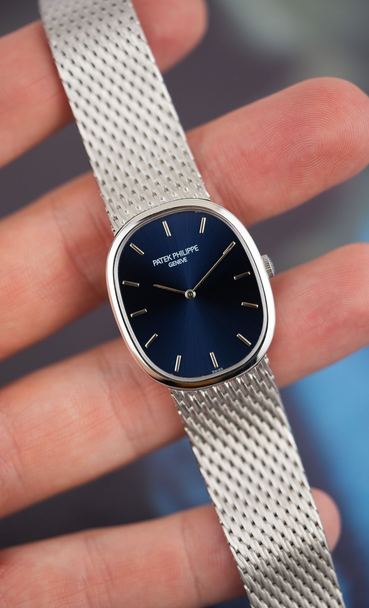 This is the kind of Ellipse that rewards repeated wear. The more you live with it, the more you notice — the soft curve of the case edges, the fluid drape of the bracelet, the way that blue dial refuses to look the same twice.