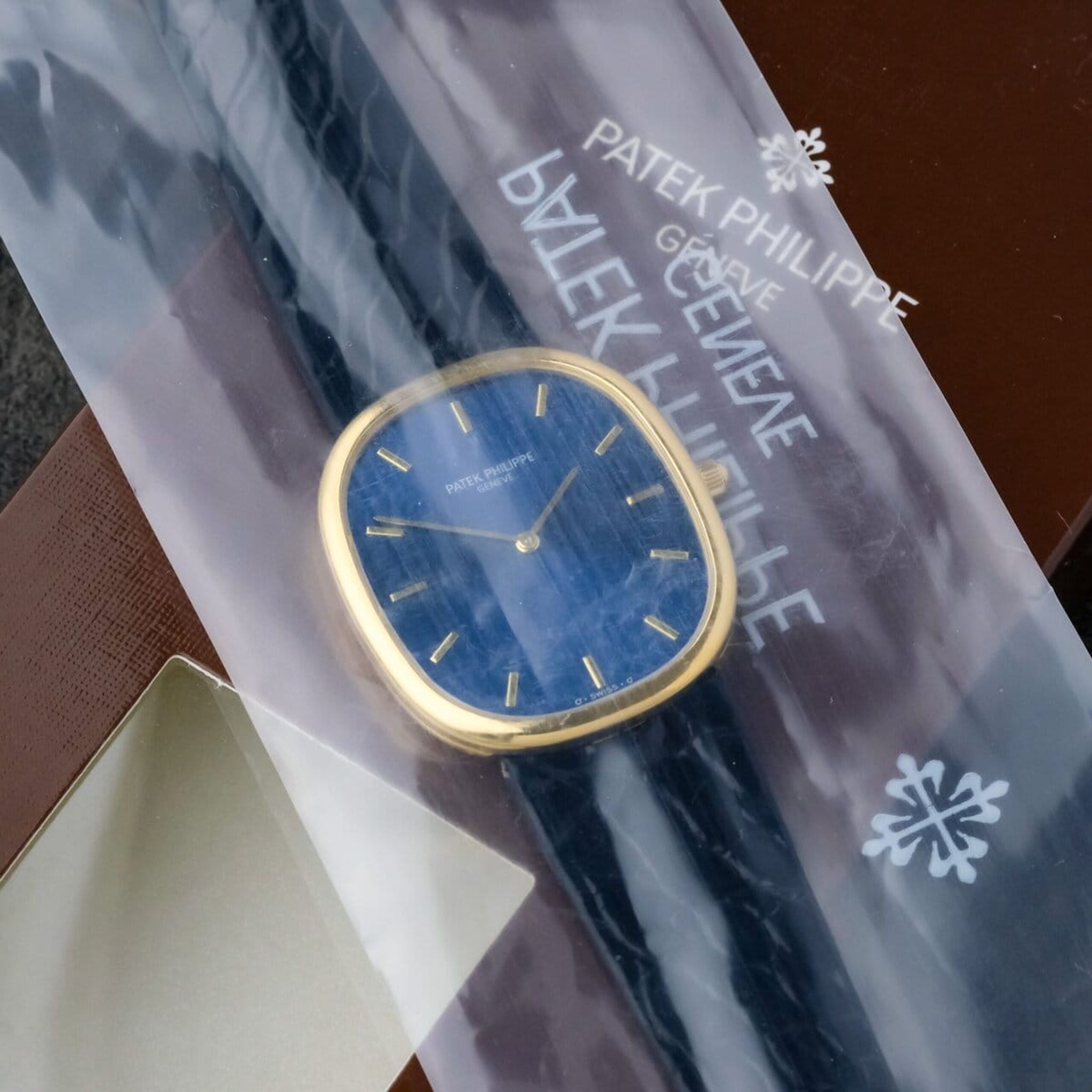 This Patek Philippe Ellipse reference 3738 is a rare and beautifully preserved example of the large model from the Ellipse collection, presented in 18k yellow gold with elegant proportions measuring 31 by 35 millimeters. Recently serviced and single sealed, the watch remains in outstanding cosmetic and technical condition.