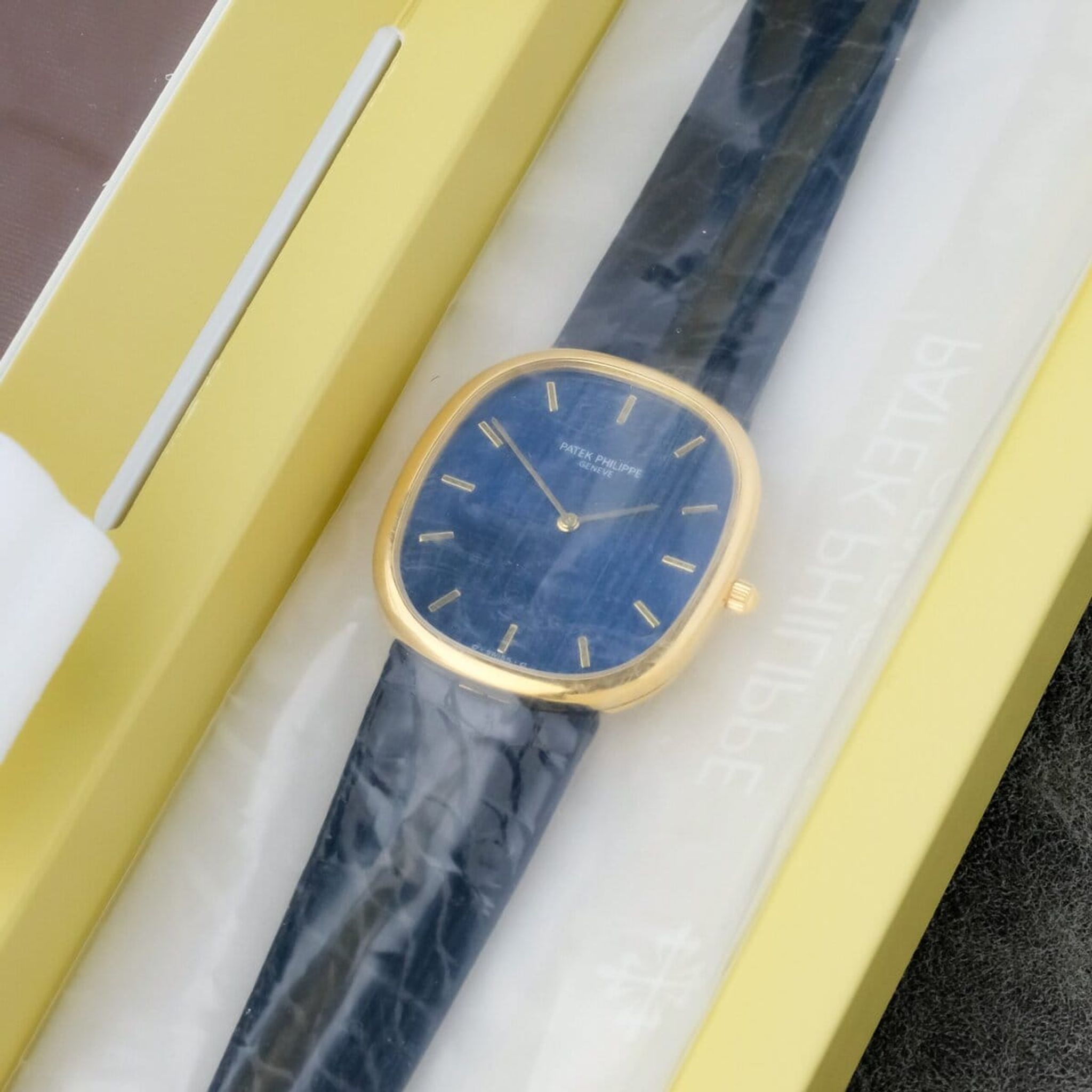 The deep blue sunburst dial, one of Patek Philippe’s most recognizable designs, radiates a rich and captivating tone that contrasts beautifully with the warmth of the gold case. It is powered by the ultra thin automatic caliber 240, a movement celebrated for its precision, reliability and refined micro rotor architecture.