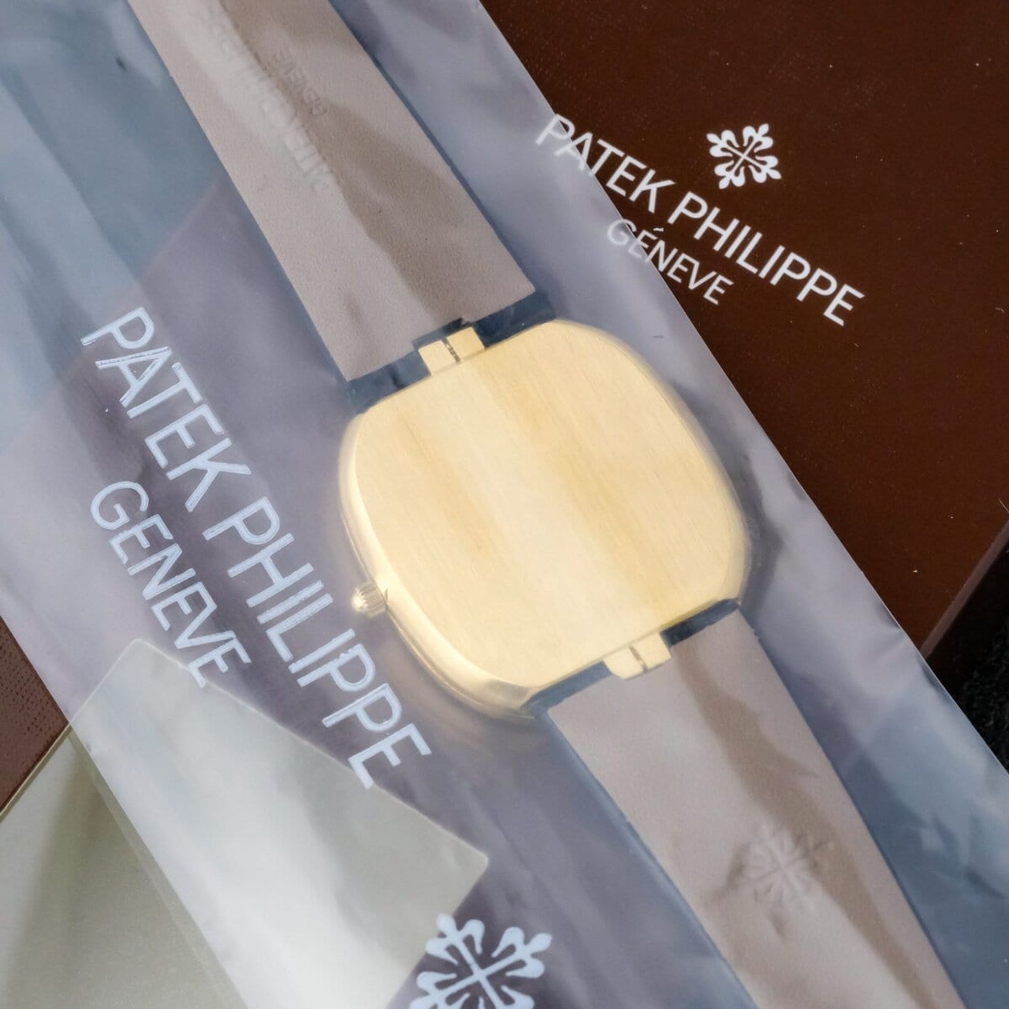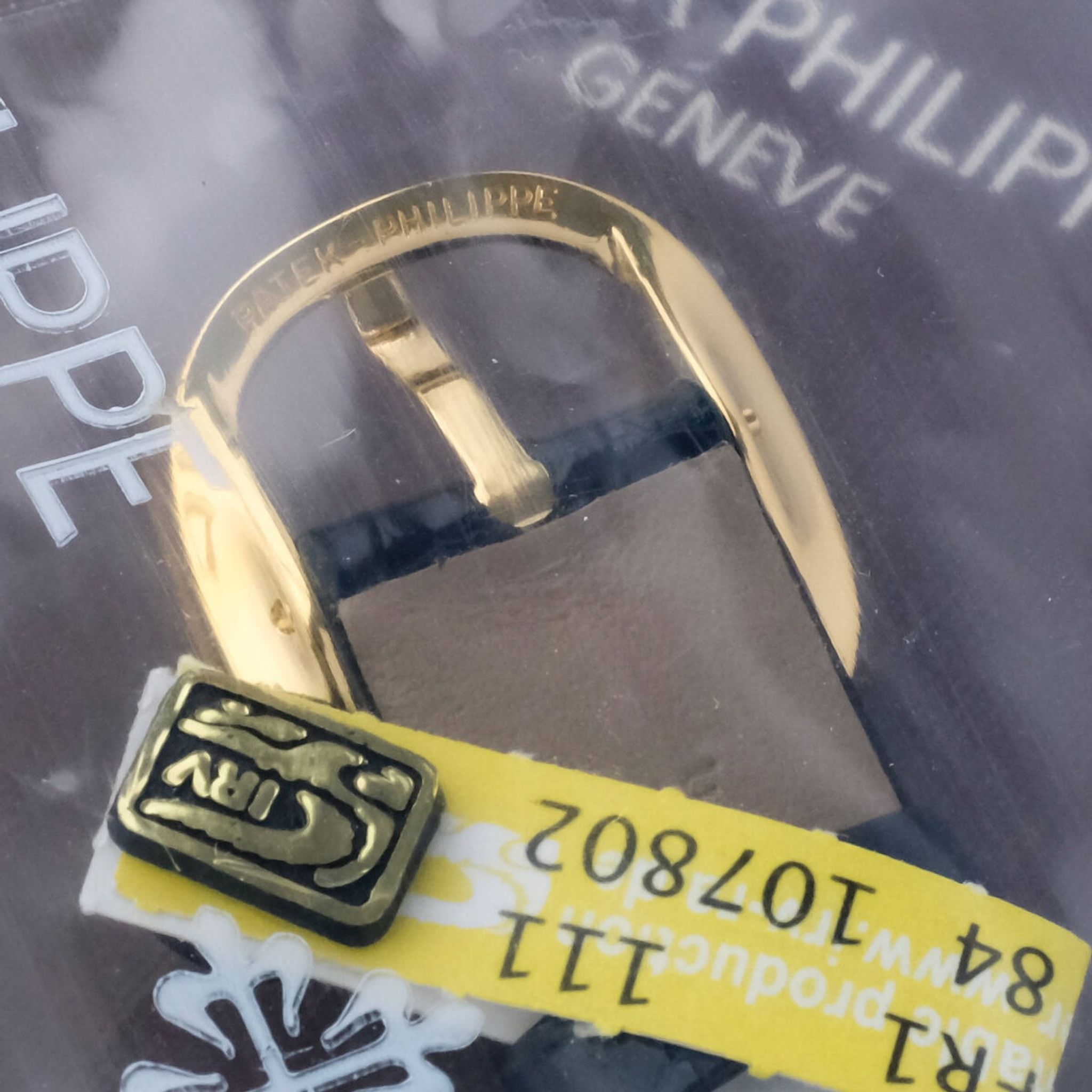 Fitted with its matching Ellipse gold buckle, this example represents a rare opportunity to acquire a large model Ellipse in near perfect condition. Its sealed post service presentation and exceptional preservation make it a highly desirable piece for collectors seeking a pristine and complete example of one of Patek Philippe’s most enduring icons.