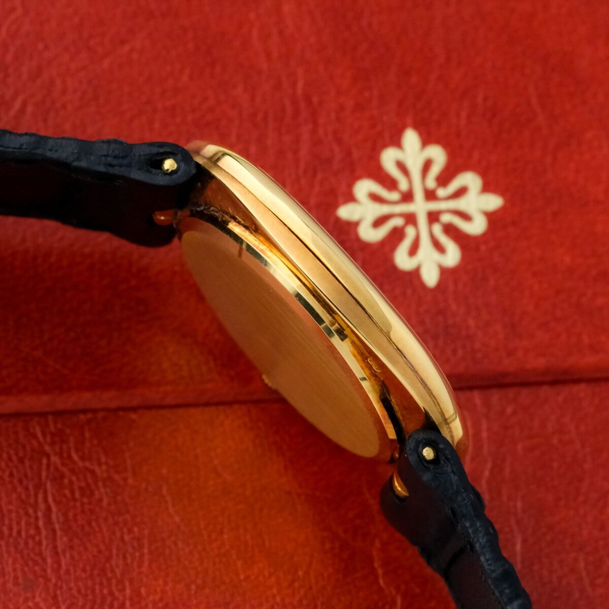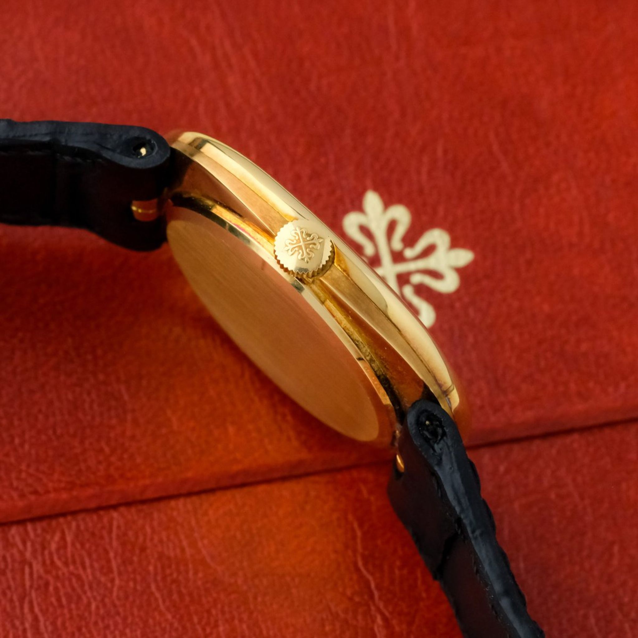 Powered by the hand wound caliber 215, the watch reflects Patek Philippe’s commitment to precision and refined simplicity. The case shows light and honest signs of wear with slight discoloration on the caseback, consistent with age and careful use.