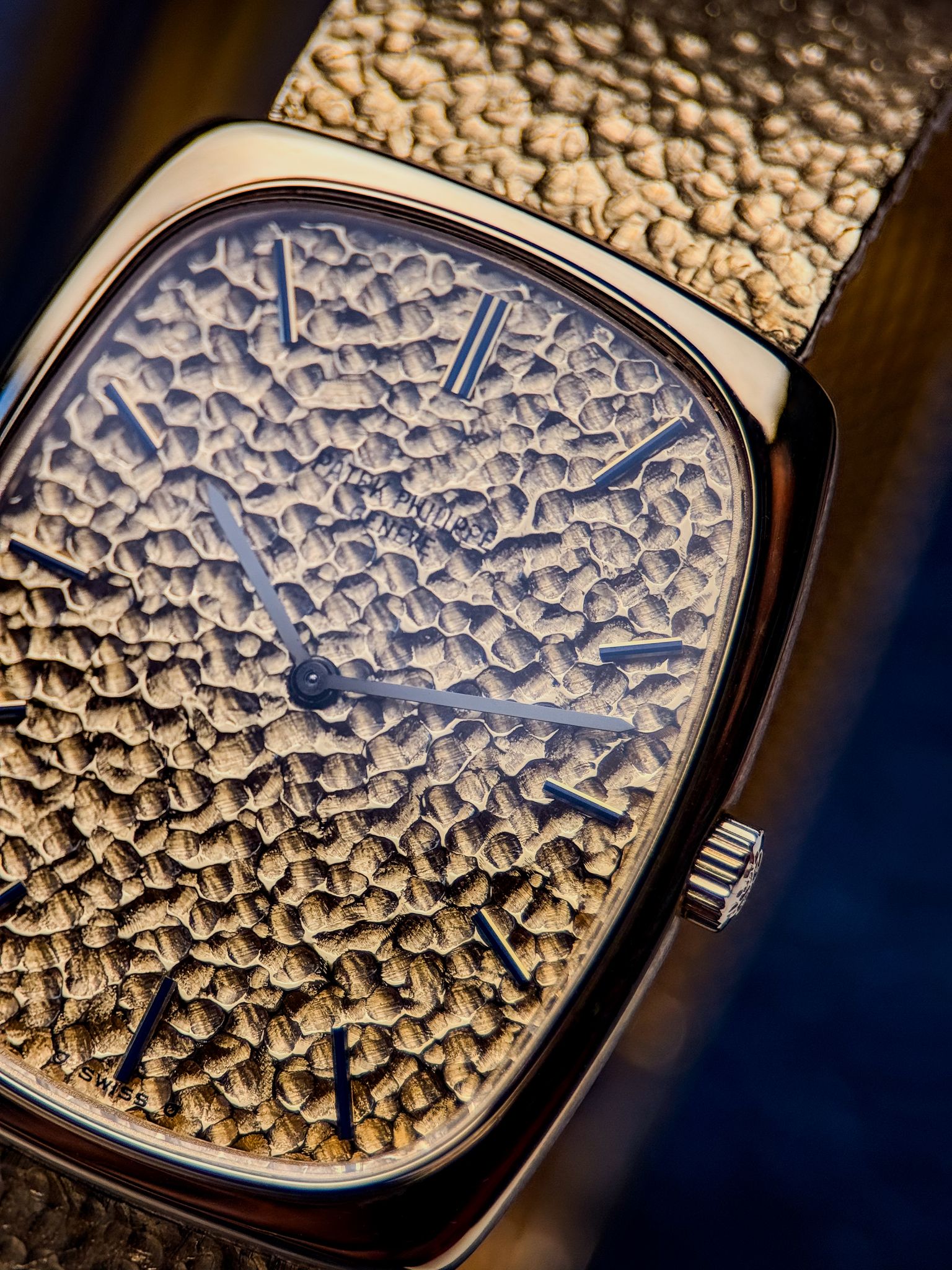 Dial: Champagne “pebble texture” (hammered finish)
