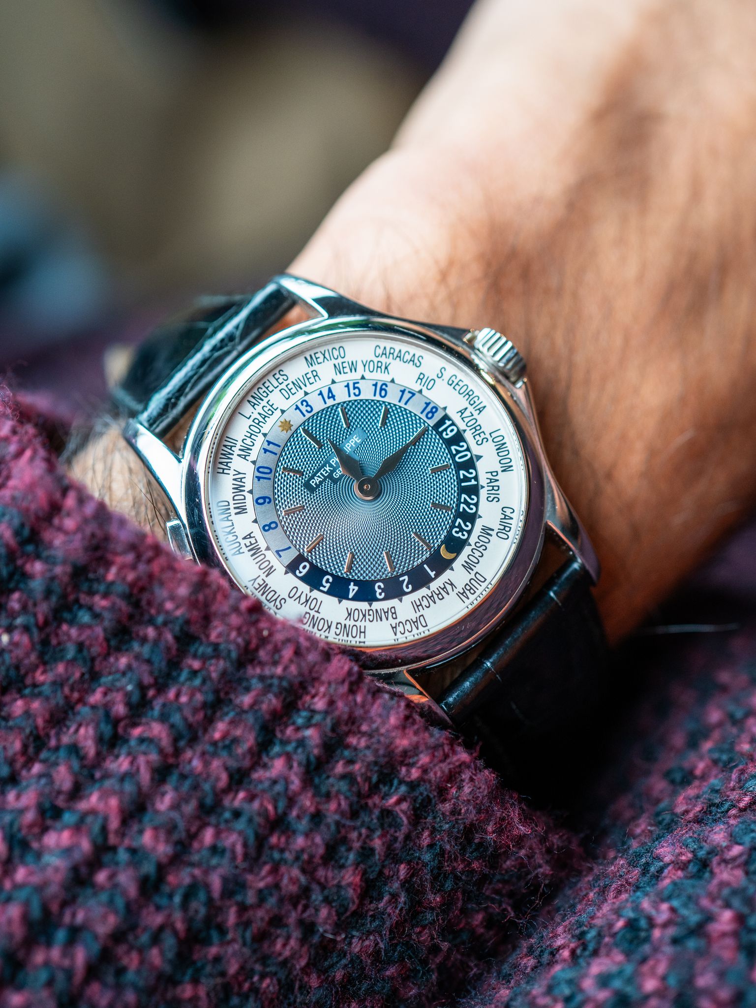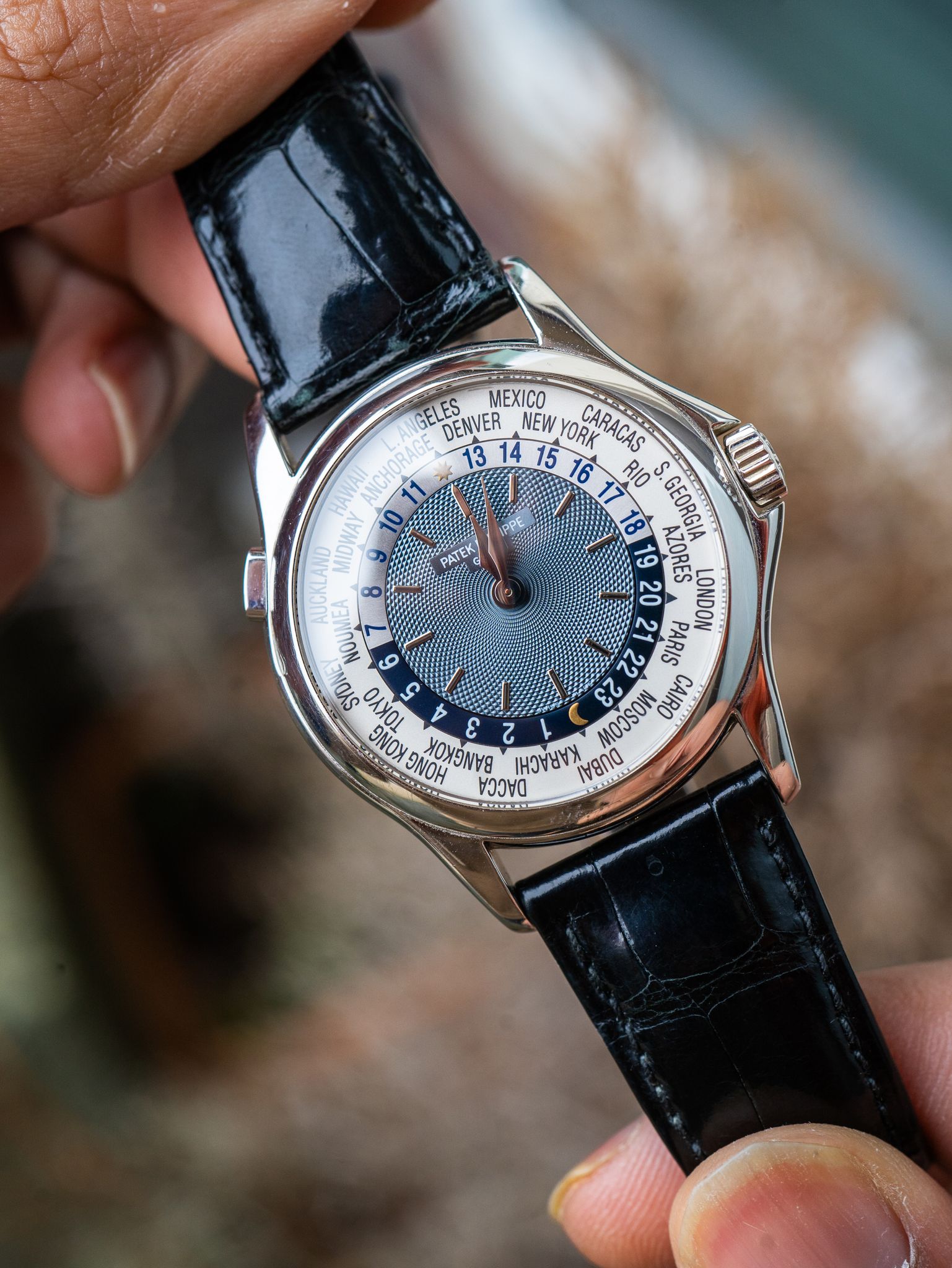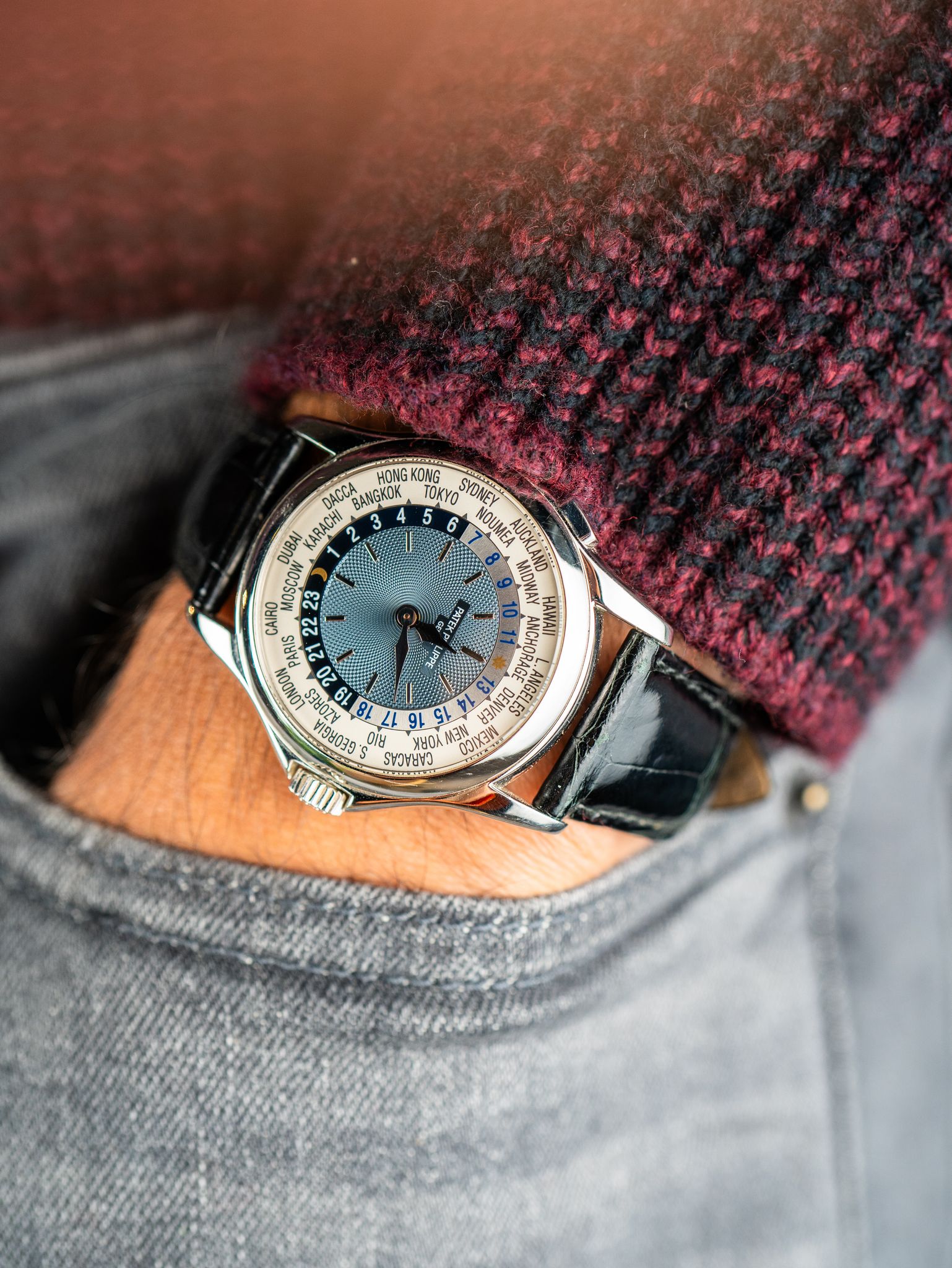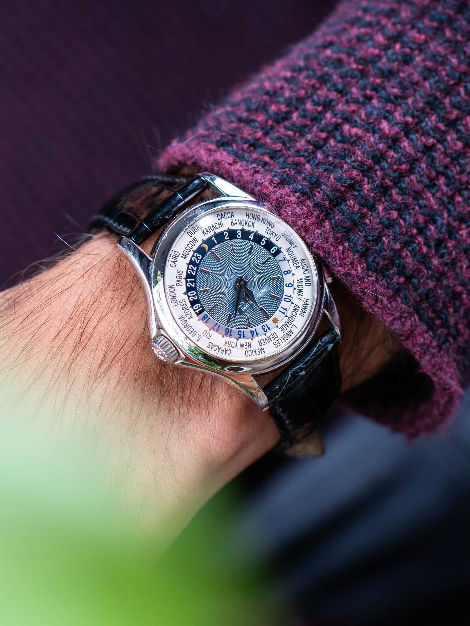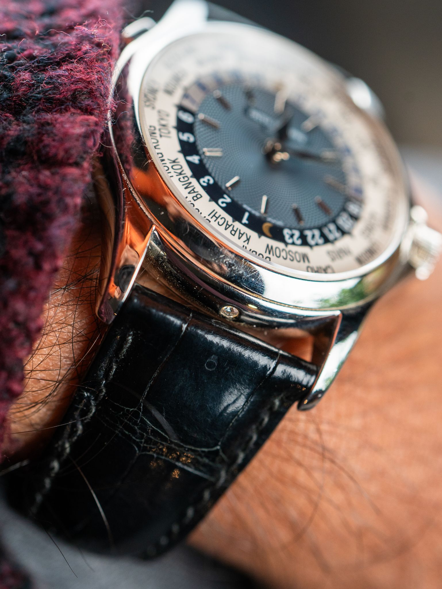 Live now! Patek Philippe world timer ref. 5110P. A true world timer complication! One of the last best modern patek world timers imo! It is a perfect blend of modern and vintage aesthetics. This ref was discontinued around 2005.