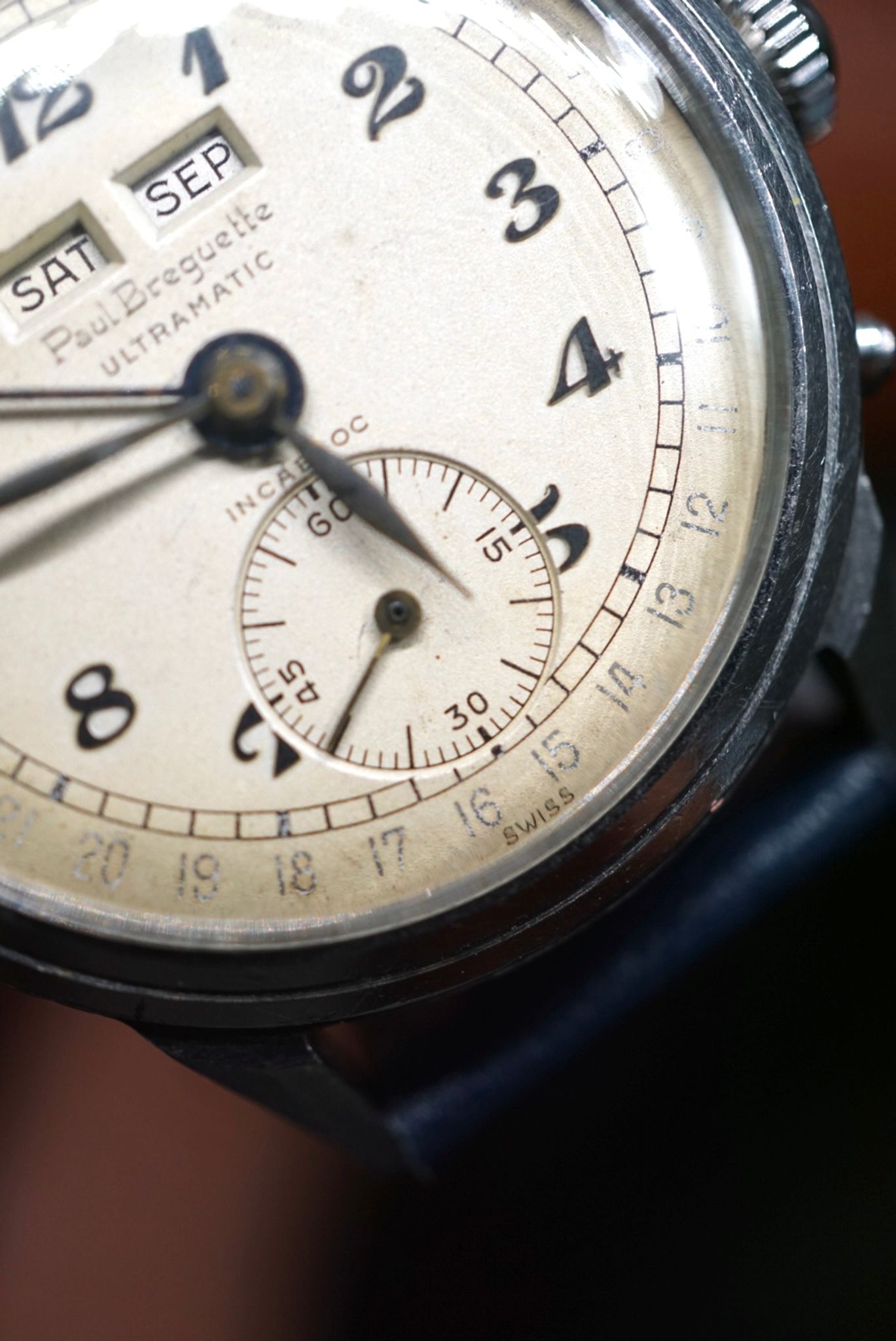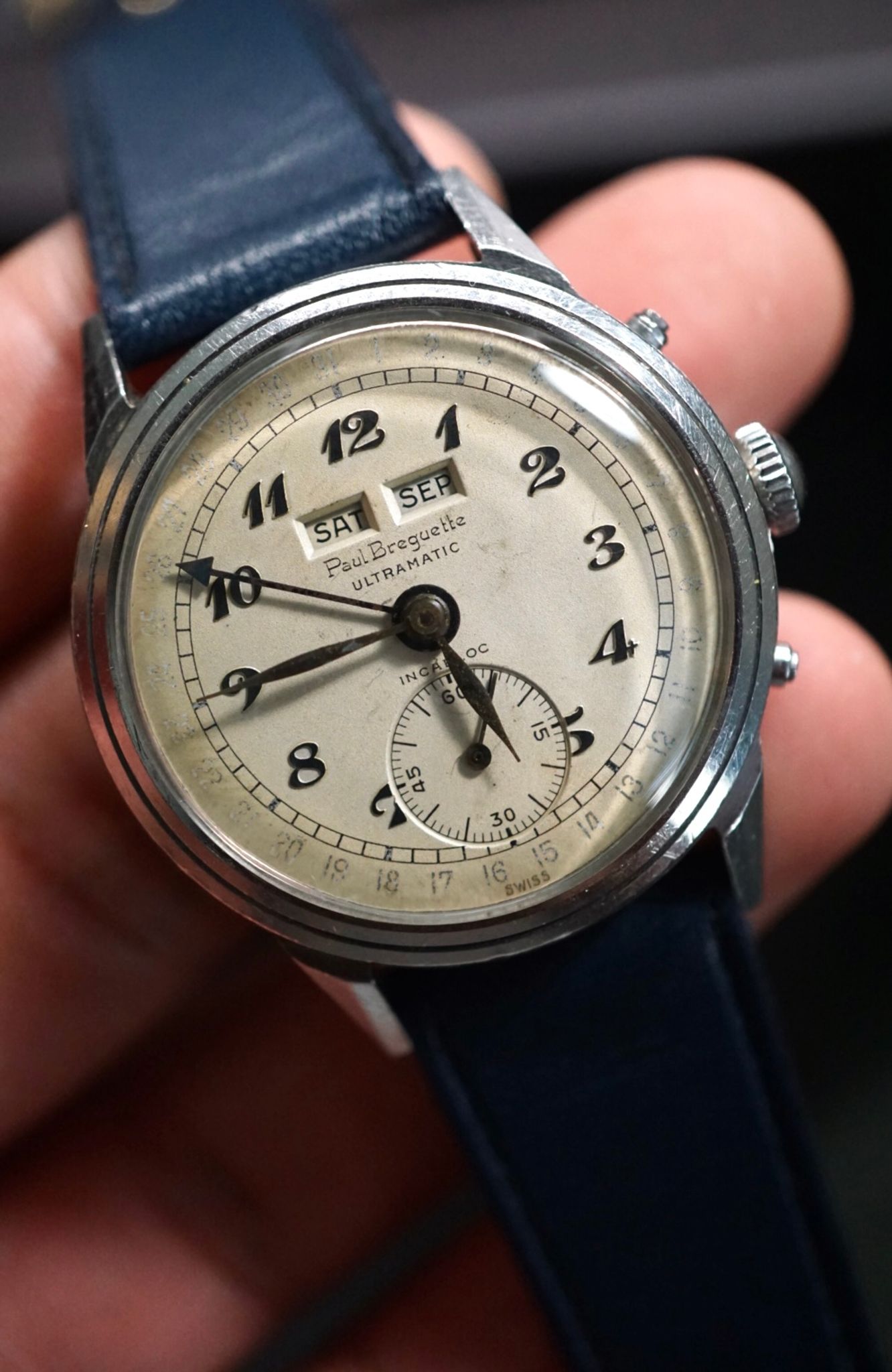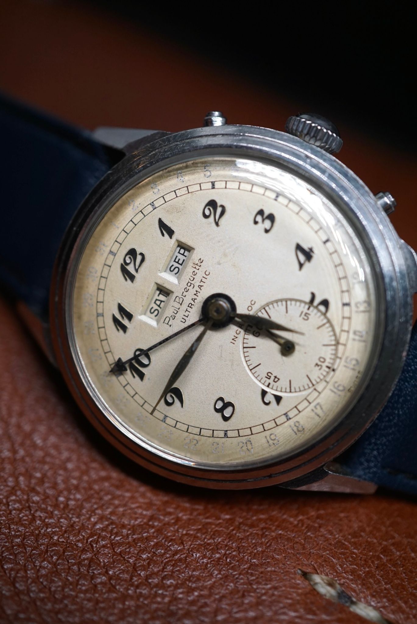 Stunning Paul Breguette triple calendar dress watch. This is a personal favorite because of all the nice details and condition, the dial has aged into an eggshell warm color paired with the Breguet applied numerals making it a special one.
