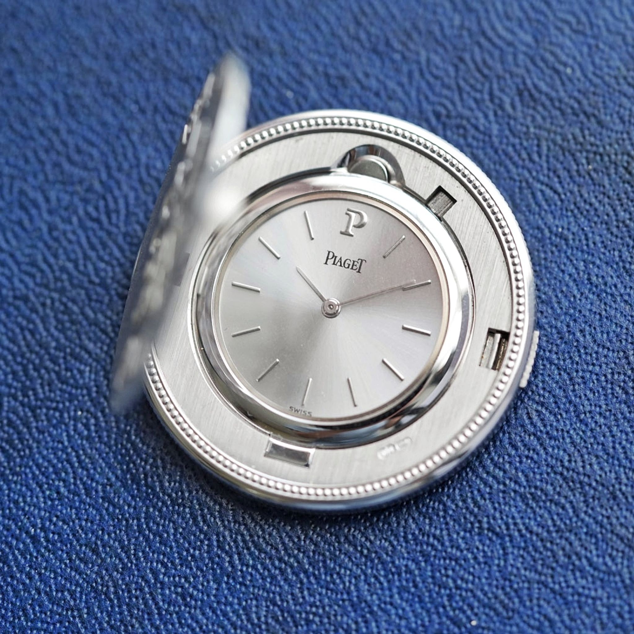 First created to mark Piaget’s 120th anniversary, this piece features a white gold commemorative coin with the Piaget logo on the hinged cover, while the reverse is engraved with the brand’s headquarters in La Côte-aux-Fées, unlike the typical American 20 dollar coin watch.