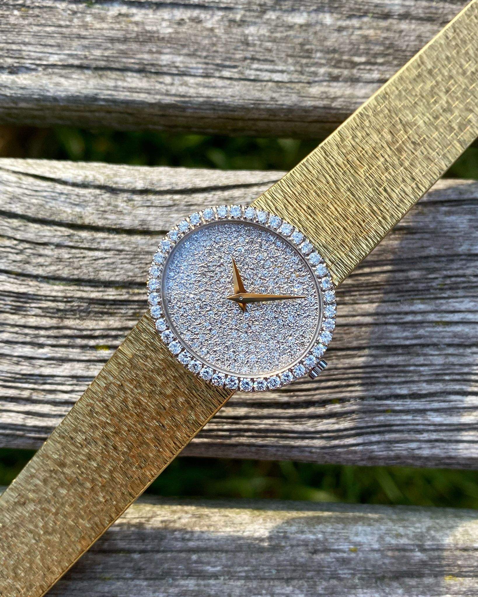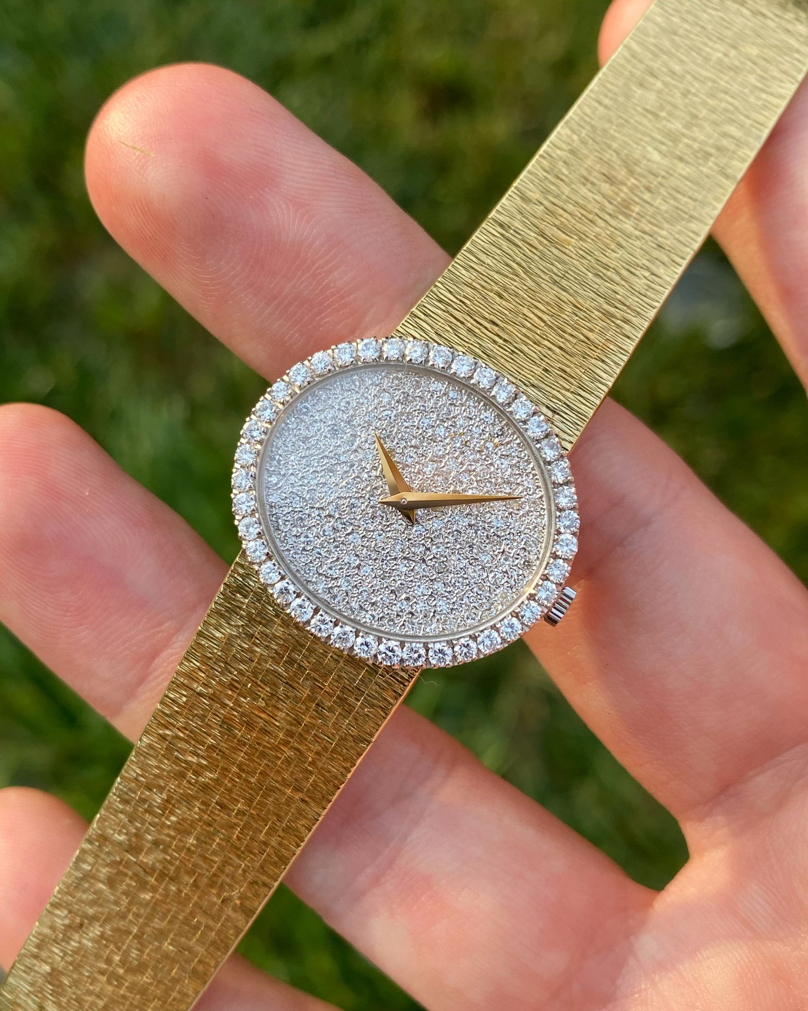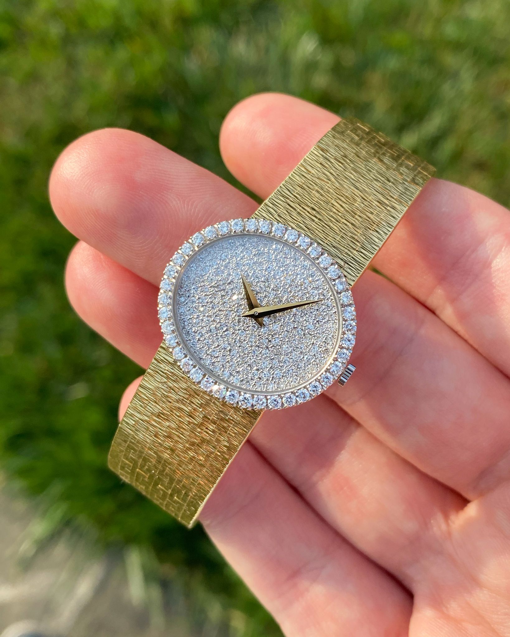 Overall, the Piaget remains in mint condition, and is a wonderfully preserved example of a vintage Classic Jewelry Watch featuring a seldom seen pavé diamond dial. Furthermore, its current equivalent has a retail price of approximately $69,000, and uses a quartz movement, thus making the 9806A6 an excellent buy from a value standpoint.