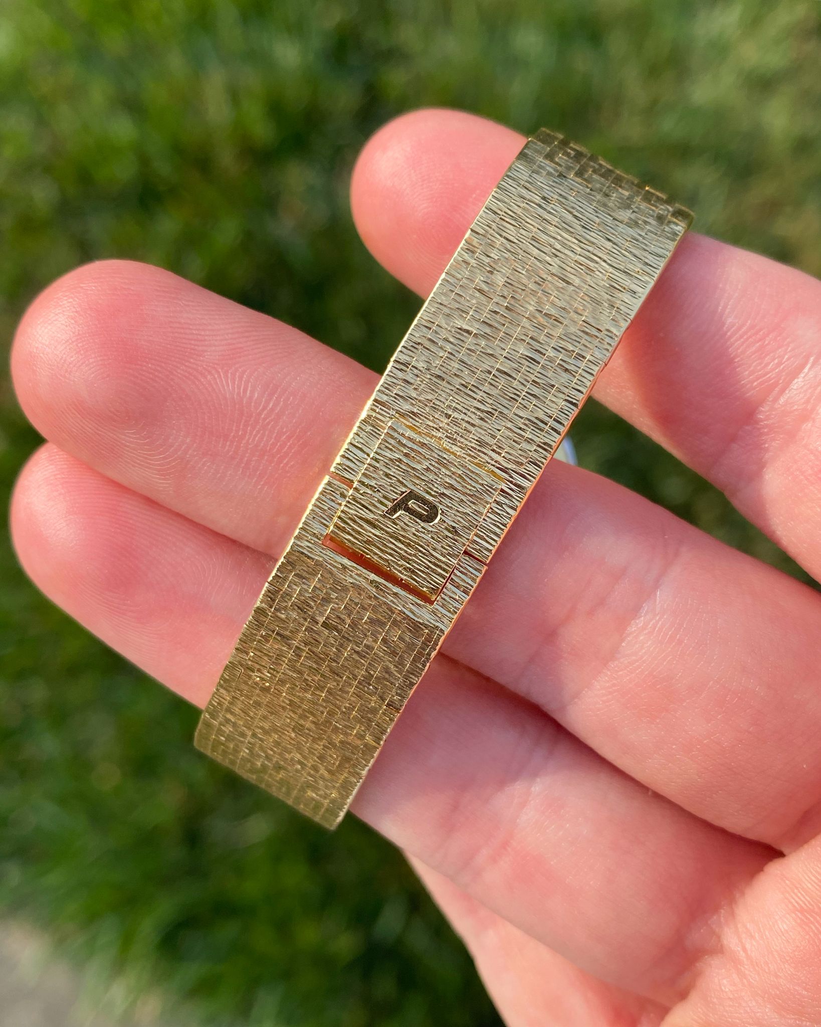 The case remains unpolished and has been well preserved with the only imperfection being some faint surface level hairline scratches on its caseback. The integrated bracelet also remains unpolished with its decor palace hand engraved finish remaining crisp, and is free of any noticeable signs of wear.