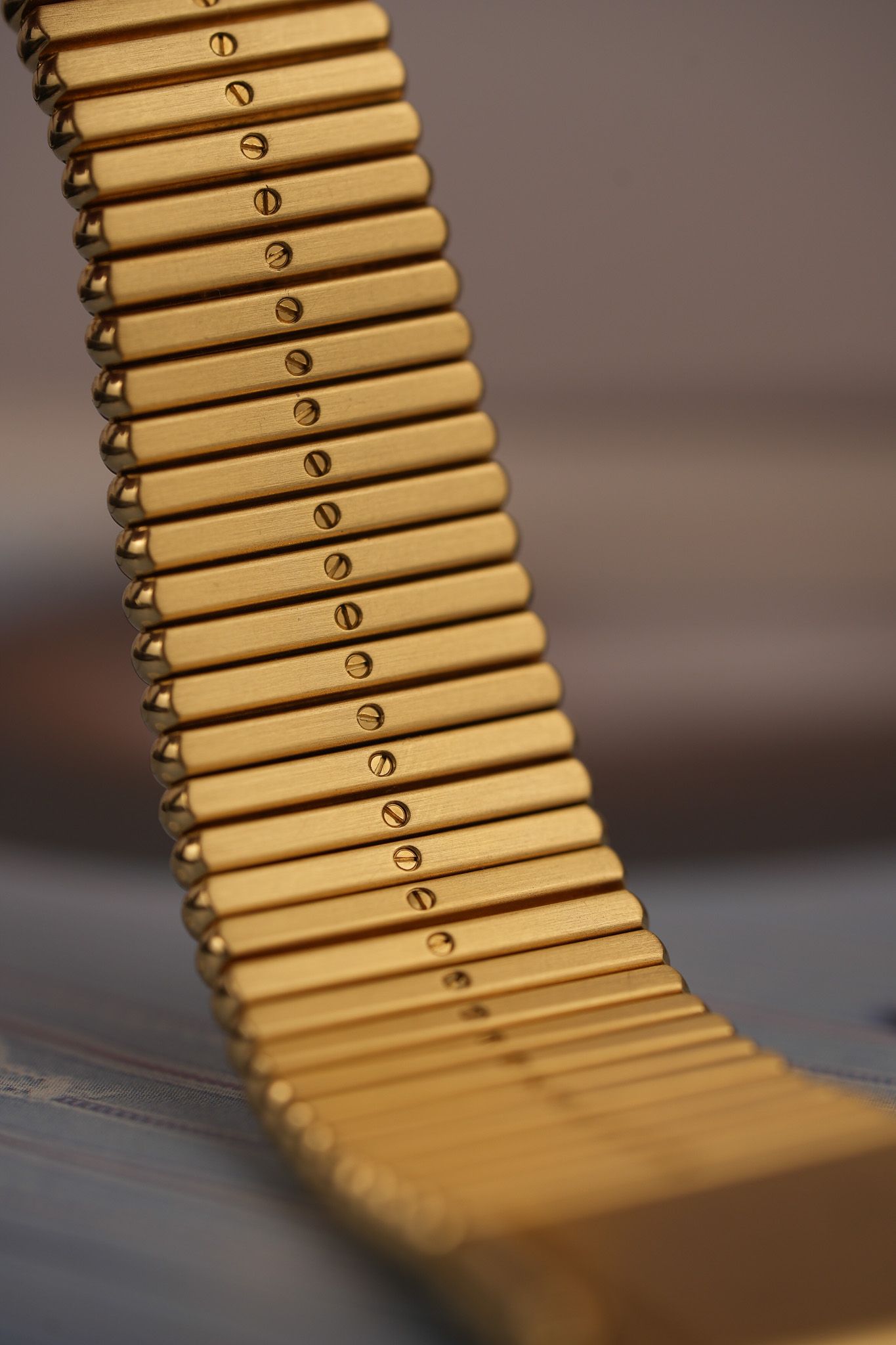 The bracelet? A work of art. Each bullet-style link is individually screwed in, making it one of the most beautifully over-engineered flexes in the vintage watch world. If you ever needed proof that function and flamboyance can coexist in harmony, here it is. And yes, it’s fully extendable and adjustable—because a true boss watch doesn’t compromise on comfort. As it’s currently sized, the bracelet measures 20cm when laid flat, making it ideal for wrists in the 7.5 to 7.75-inch range.