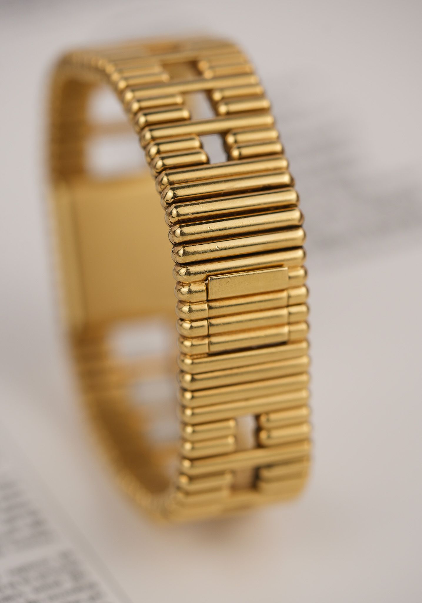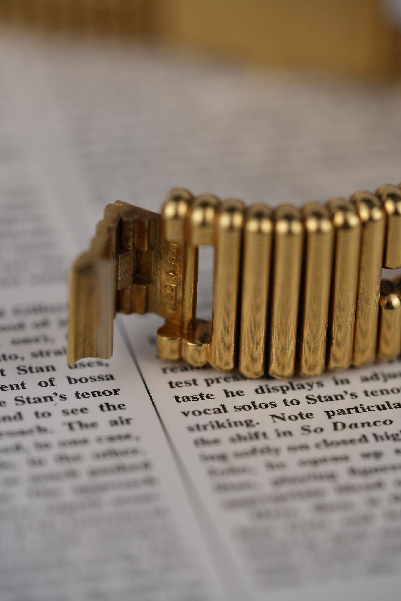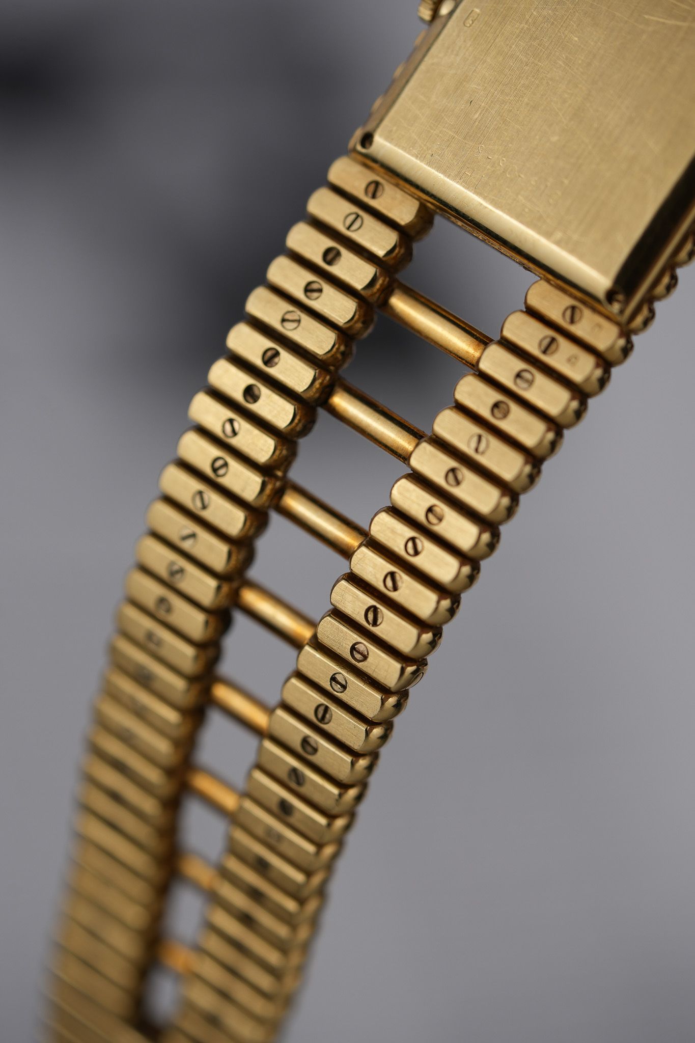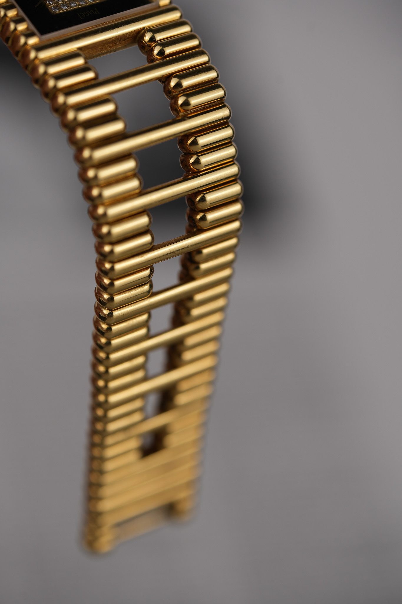 Everything on this watch is excess done right: the dial that reads like a miniature light show, the over-engineered ladder links, the mirror-polished gold, the notched crown tucked just deep enough to keep the case uninterrupted. Piaget, being Piaget, didn’t miss a single opportunity to remind you of their obsession with craft.