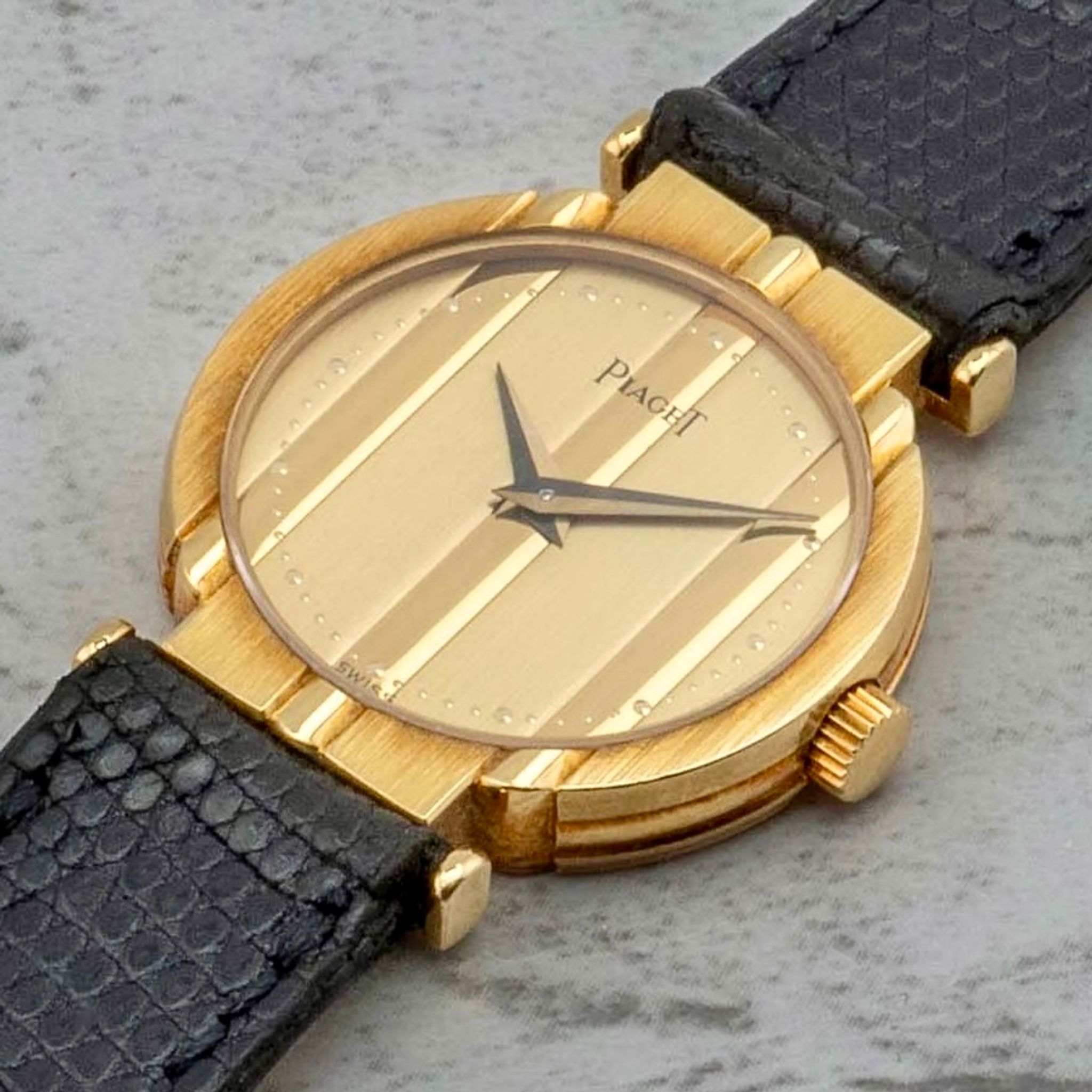 A Stunning 1988 Piaget Lady Polo in 18k Yellow Gold with a matching Yellow Gold Dial with very distinct Polo design.