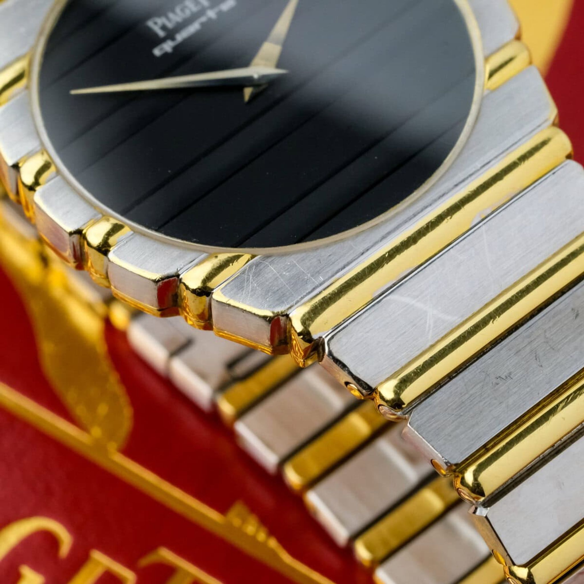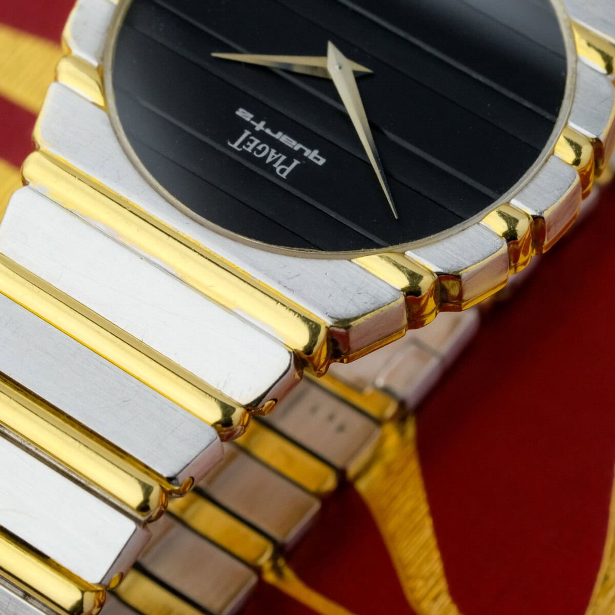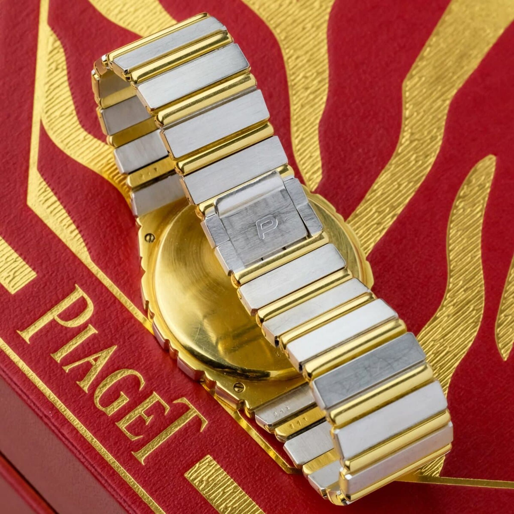The watch is fitted with a deep black onyx dial, free of any markers, which enhances its minimalist elegance and luxurious presence. Measuring 34 millimeters, the case offers bold yet refined proportions, embodying Piaget’s mastery of precious metal watchmaking in the 1980s.