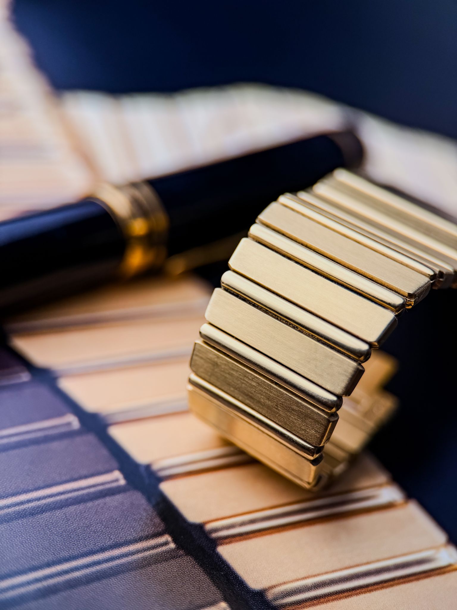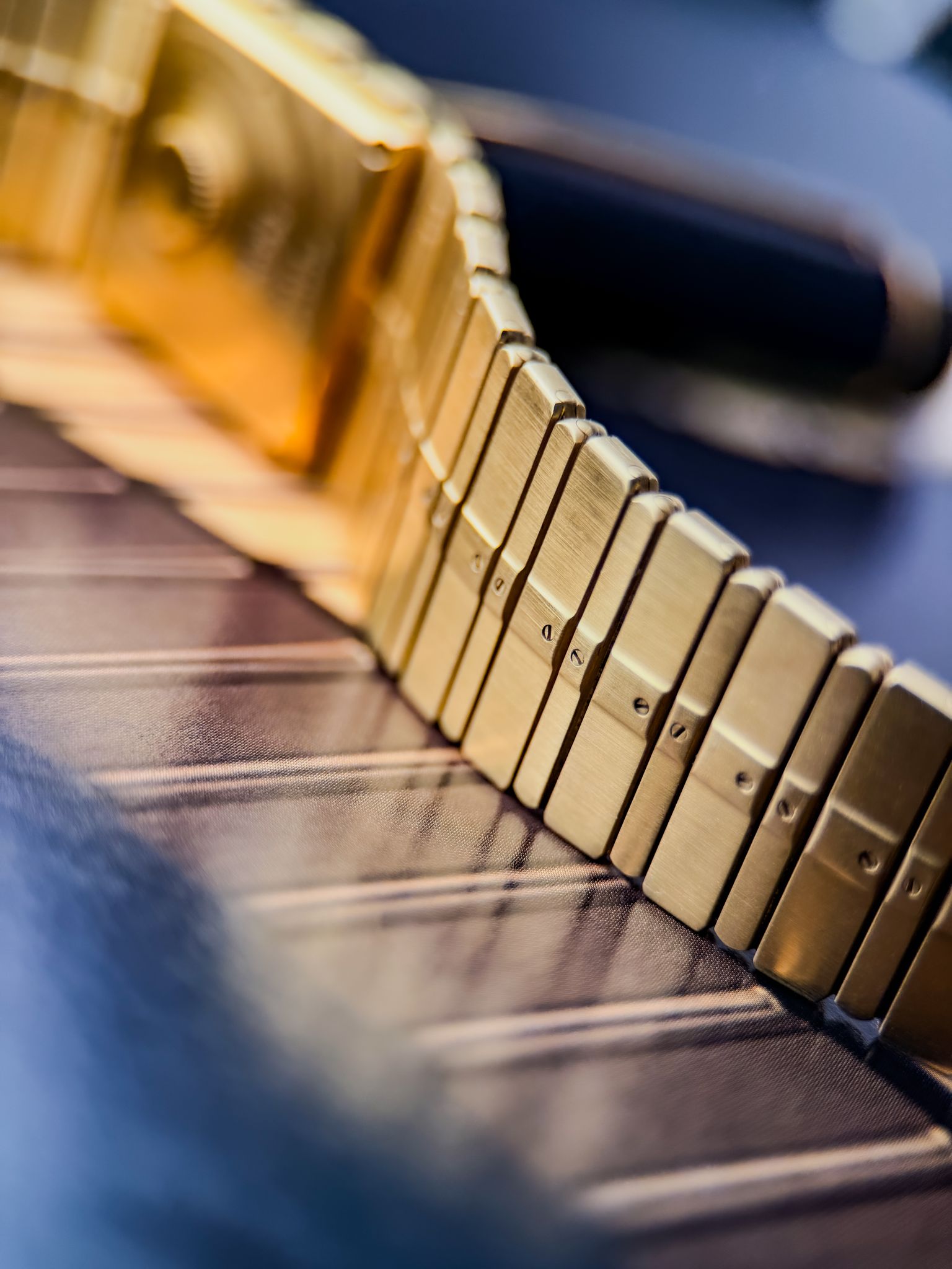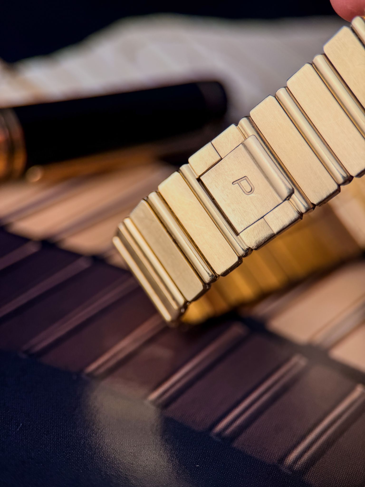 Bracelet: Integrated 18K yellow gold, brushed and polished horizontal bars