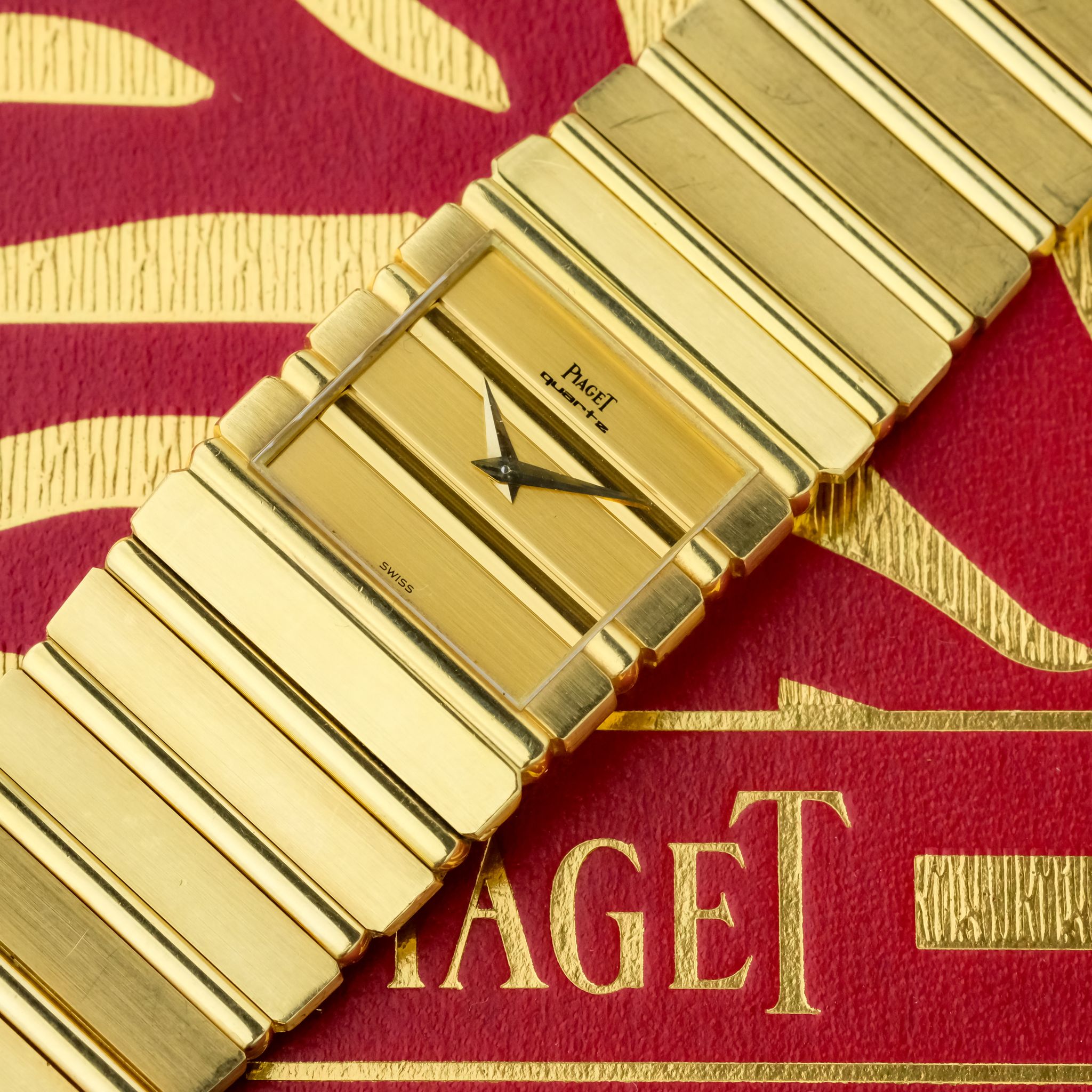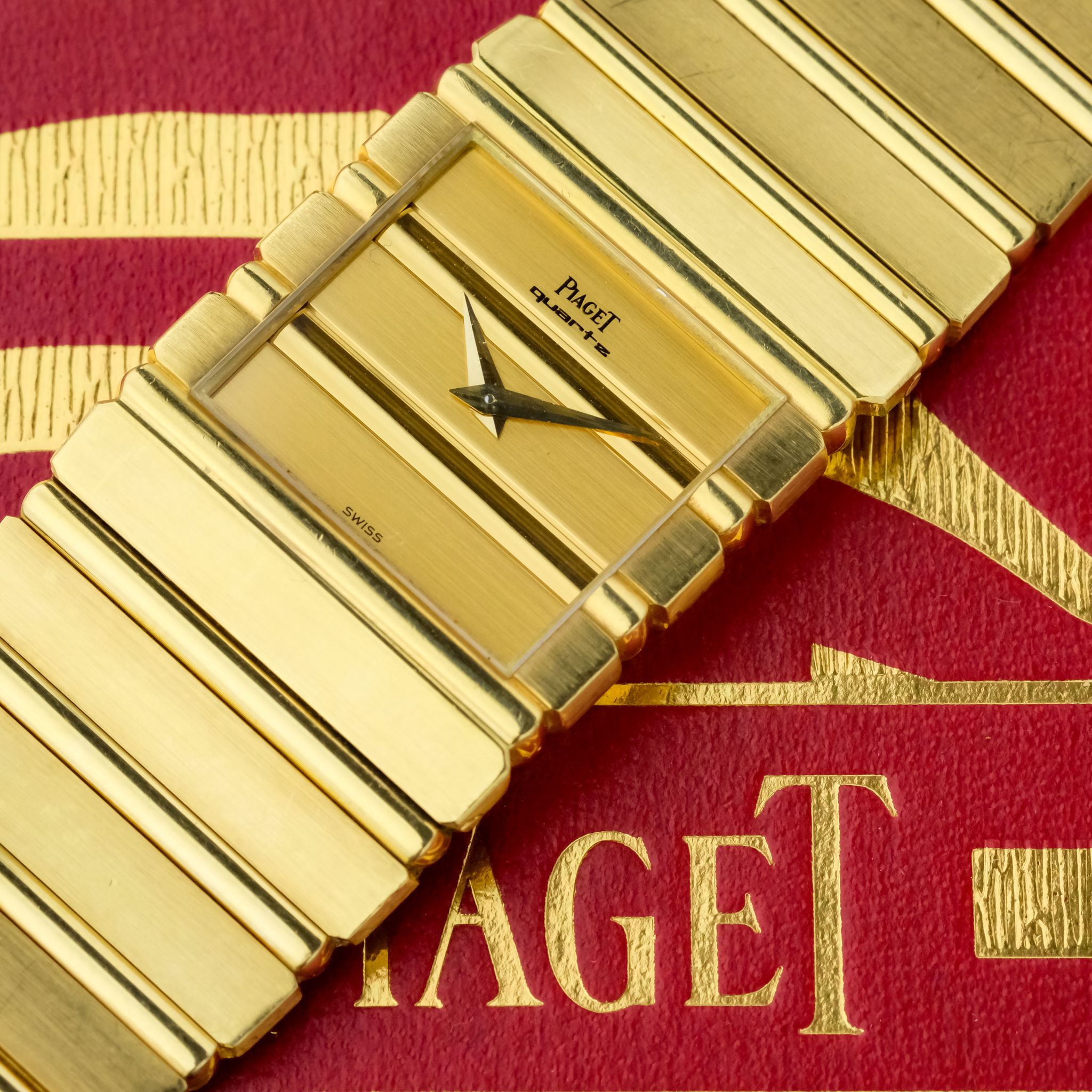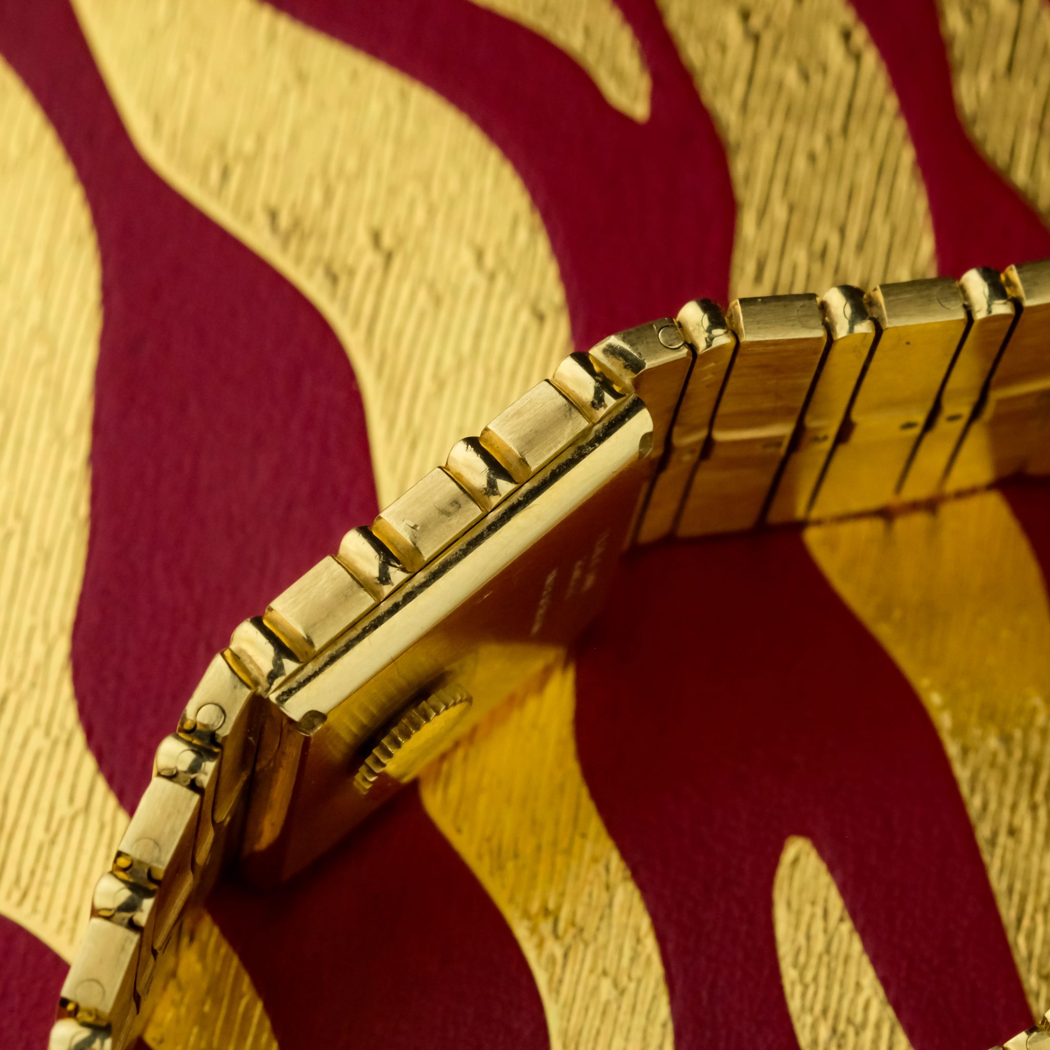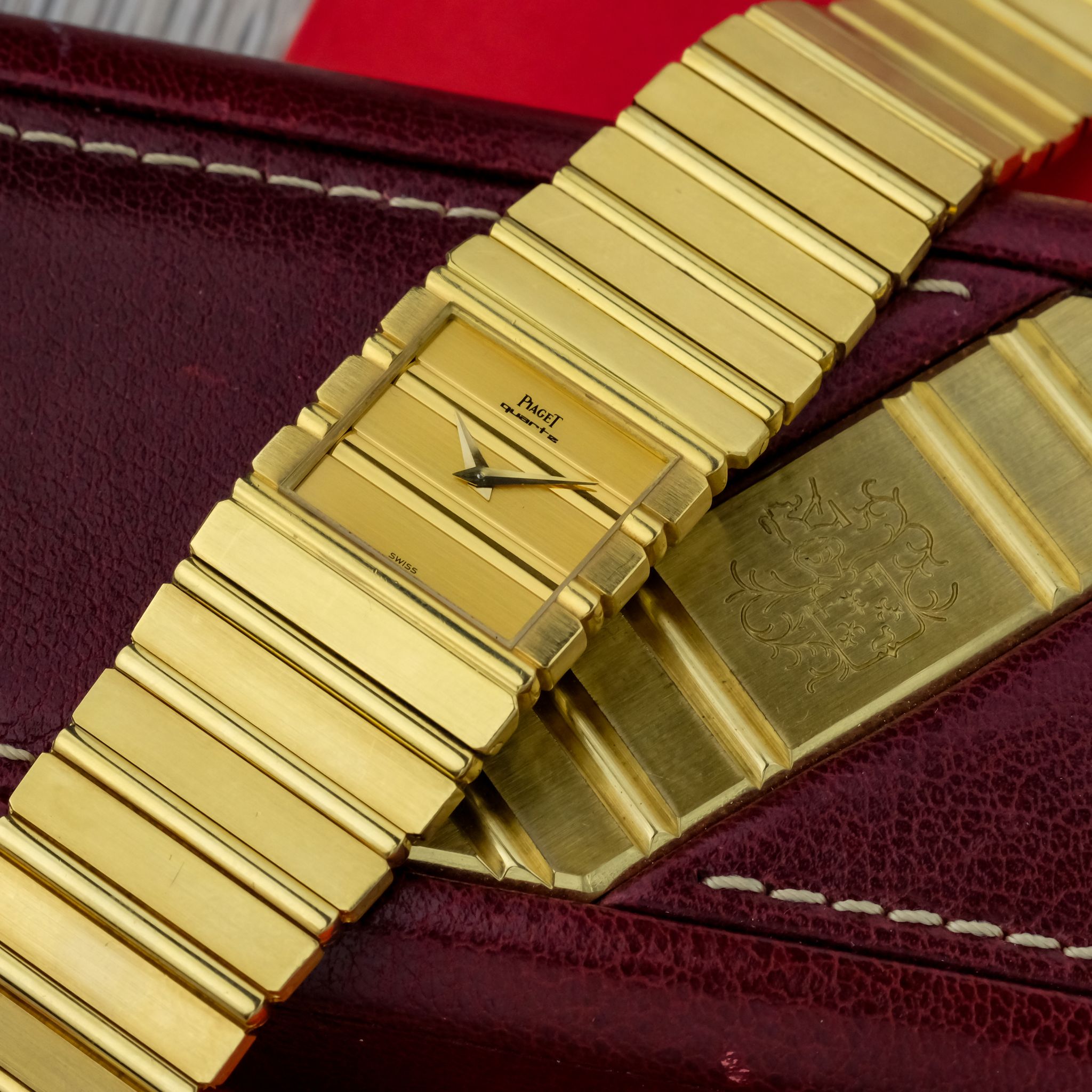 Beautiful and increasingly rare to find square Piaget Polo "cuff" ref. 7131 in good, unpolished condition and with the beloved "gadroon dial.