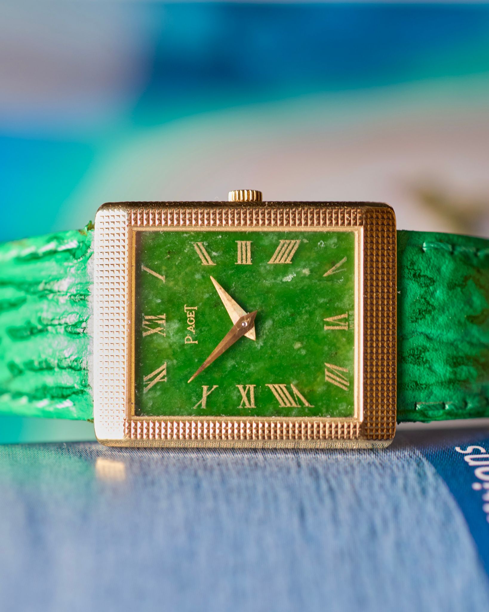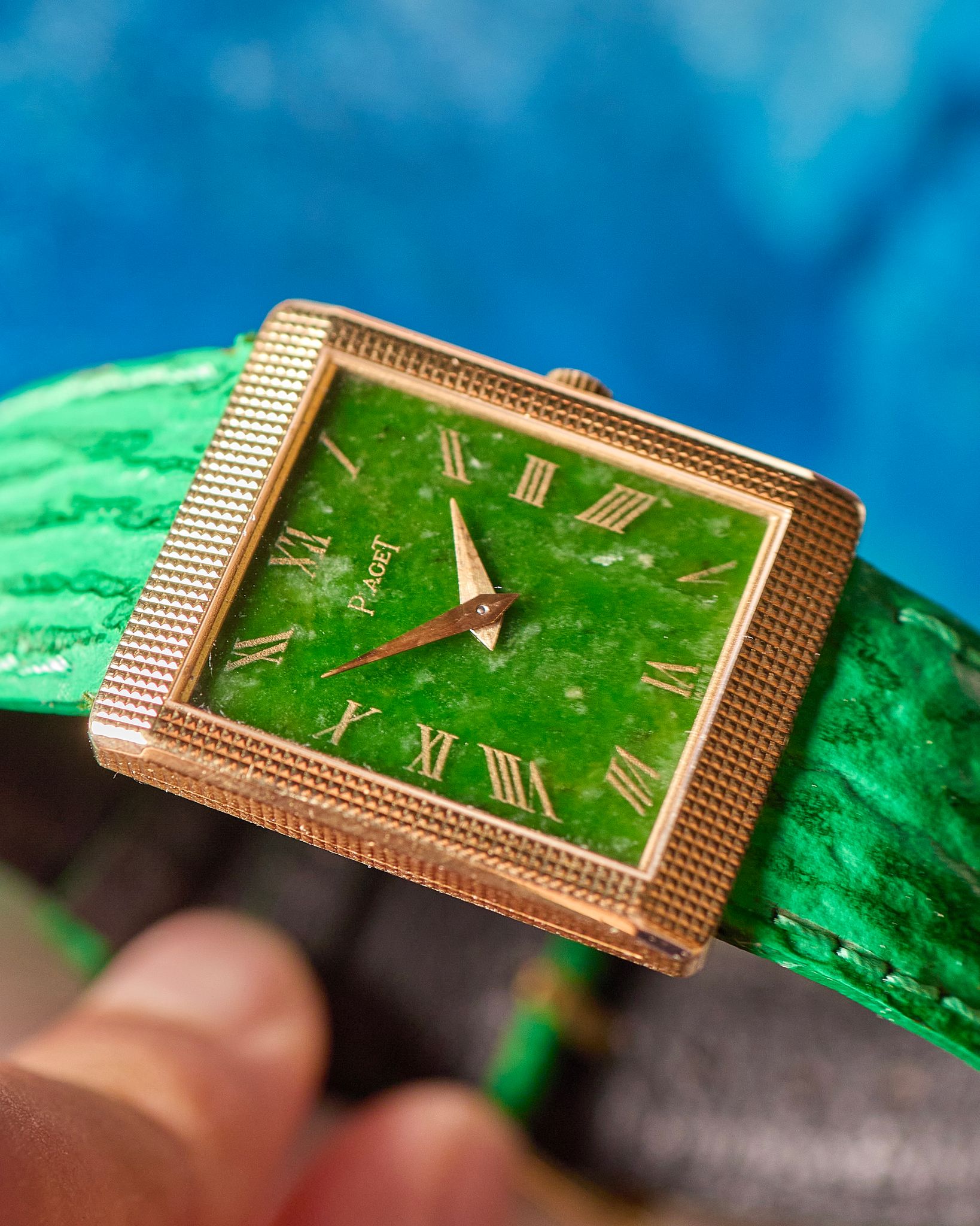 It is honestly hard to believe this dial exists, resembling a swirling emerald storm frozen mid-motion. It feels more cosmic than terrestrial, as if carved from a distant galaxy.