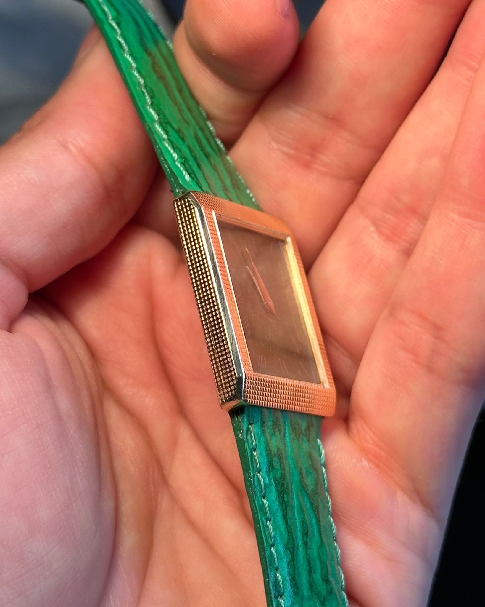 The watch is housed in an 18k full "Clous de Paris" yellow gold case - and includes its 18k signed buckle.