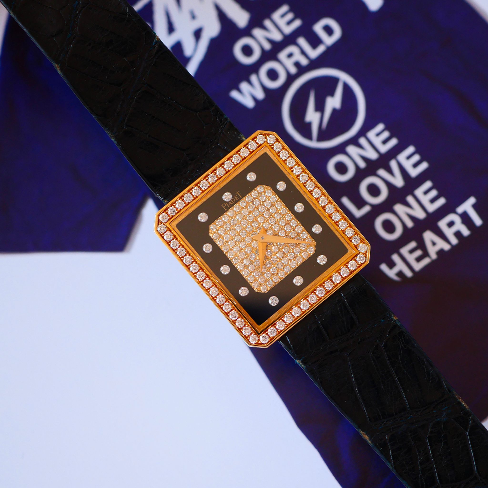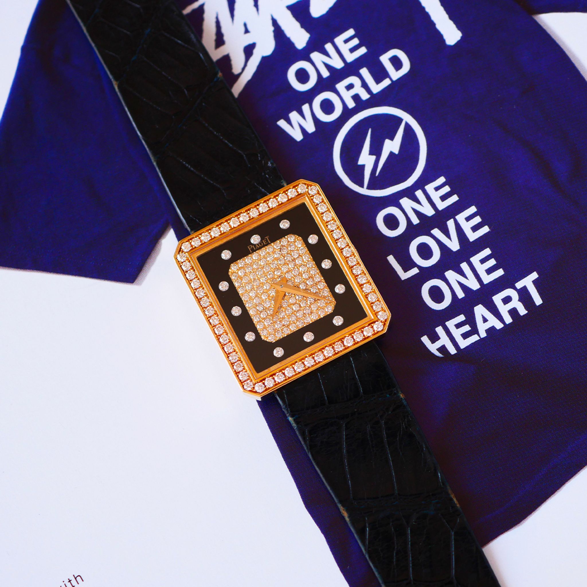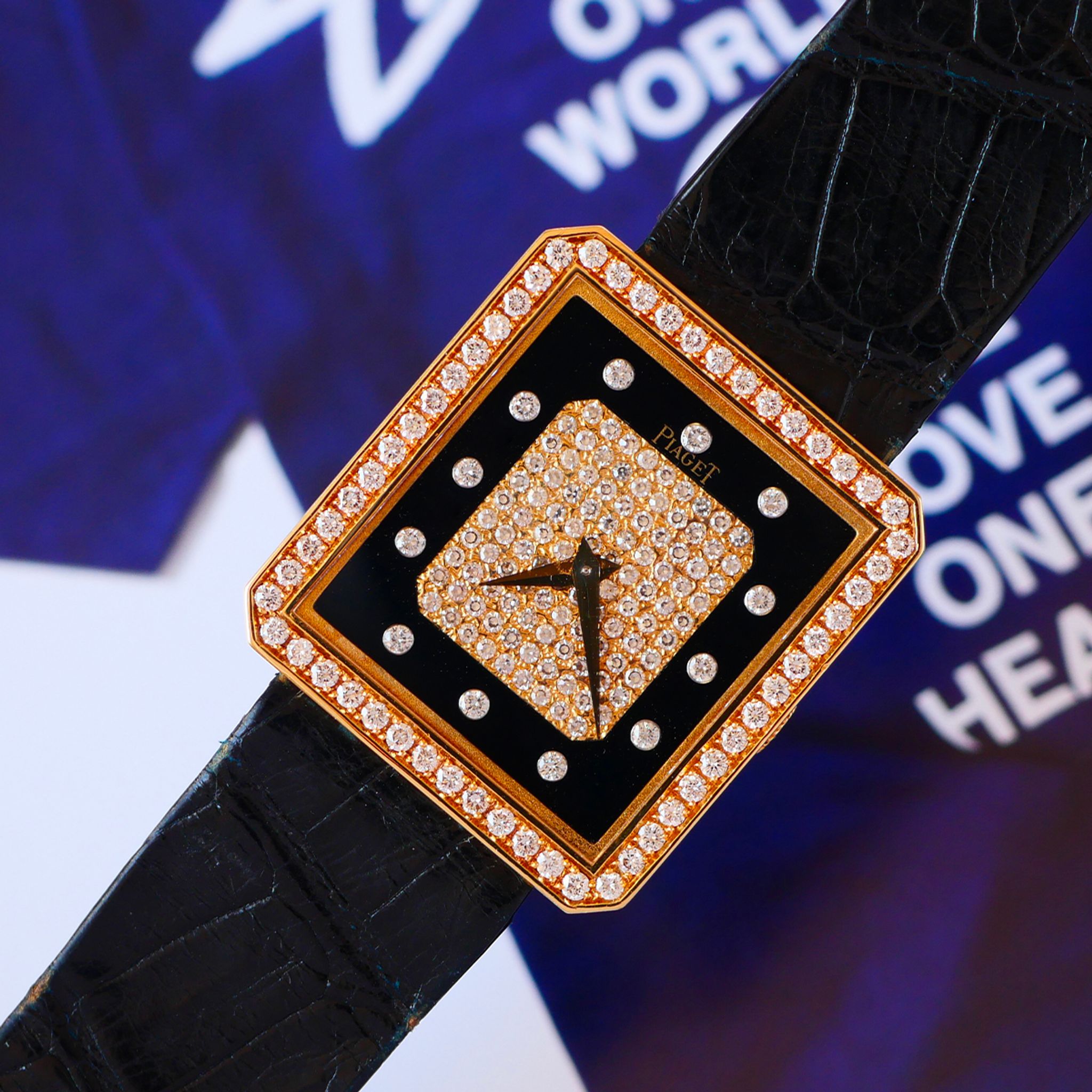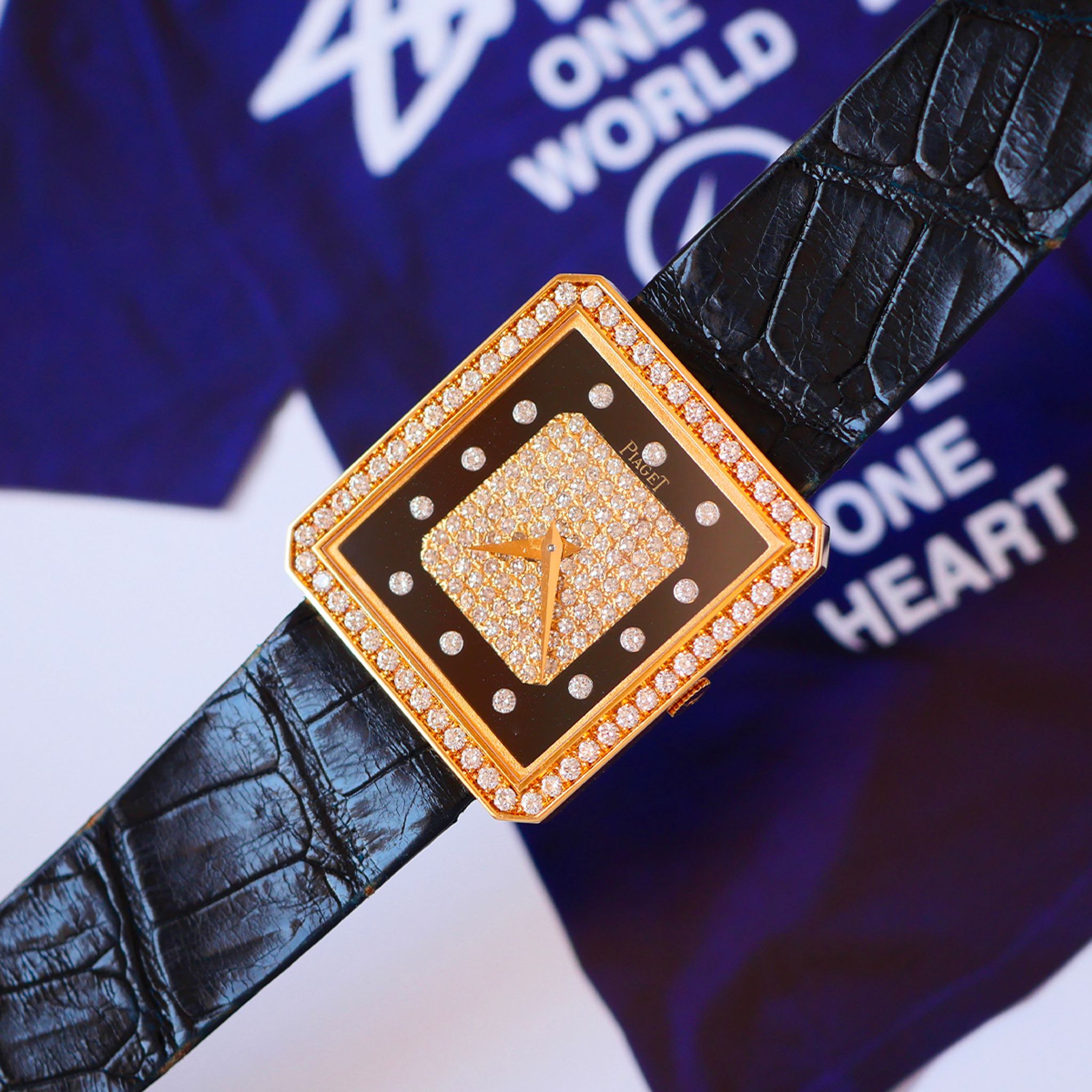 If you want to go for something different from the classic Piaget Protocole, we clearly have just the thing with this one. In exceptional condition, this 18k yellow gold Piaget is a prime example of what Piaget did best in the 70s and 80s. With a diamond bezel and a diamond-paved dial framed by onyx, this configuration is simply perfect.