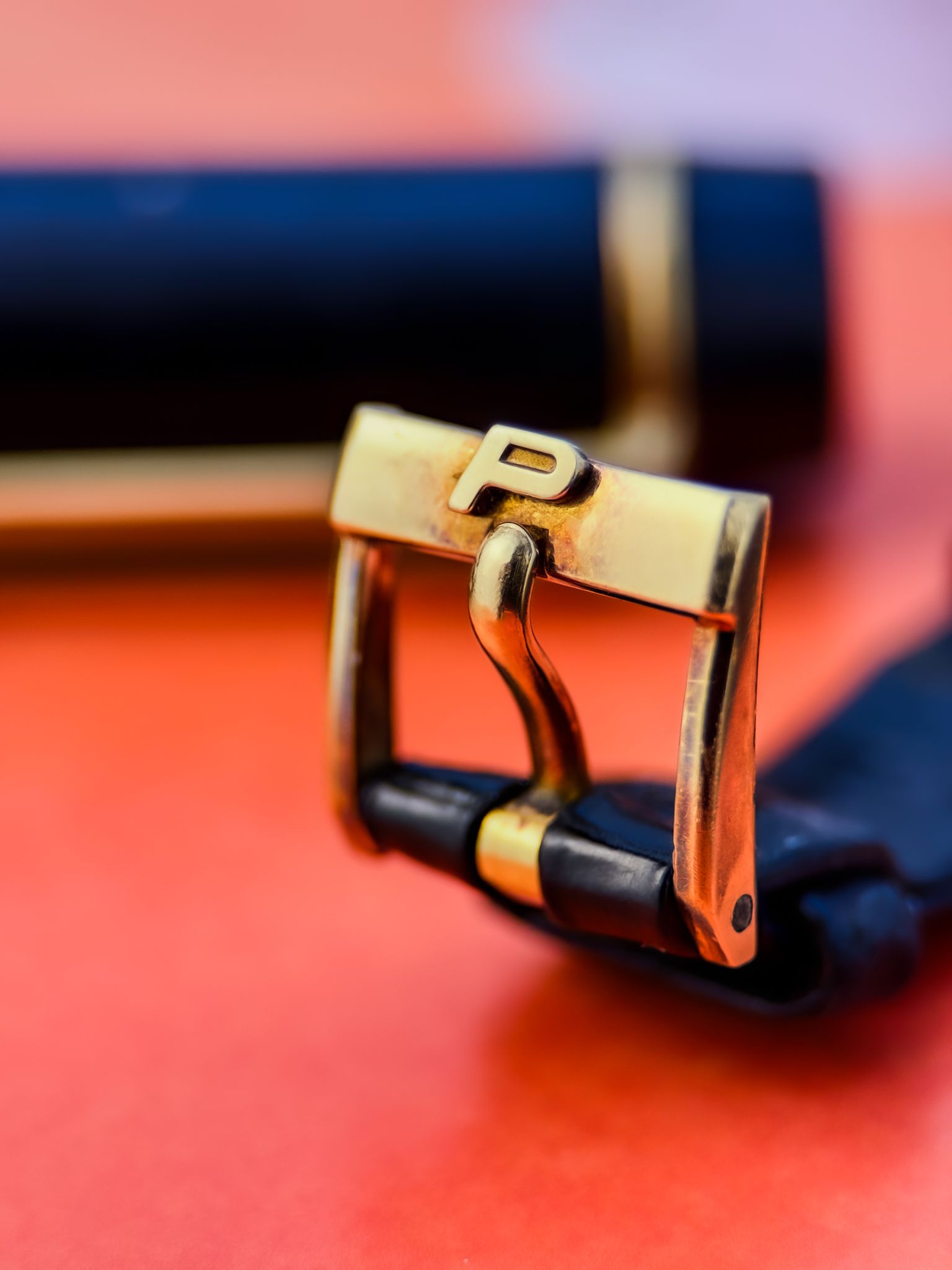 * Buckle: 18k yellow gold (750/1000) pin buckle, signed Piaget