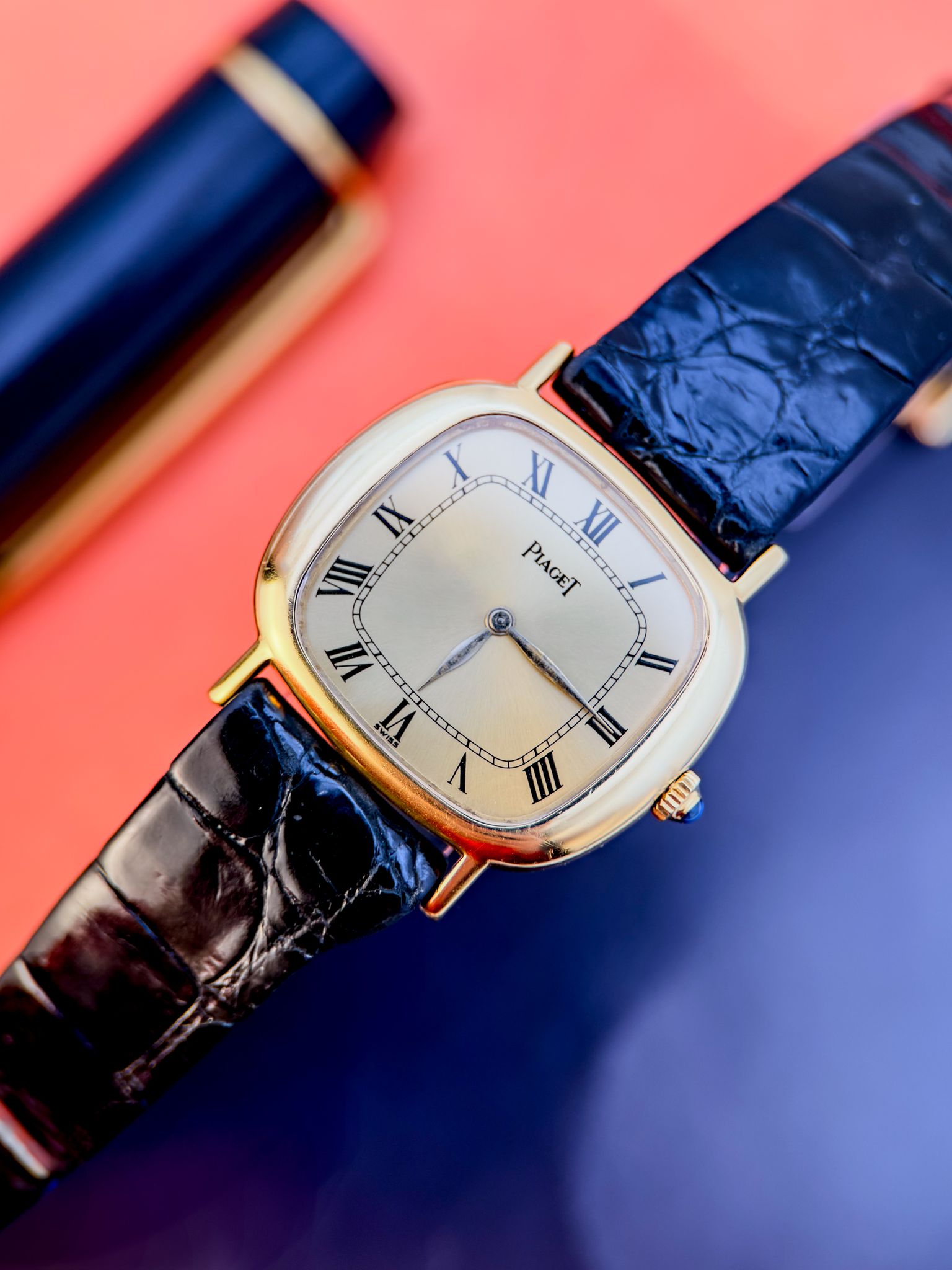 Piaget doesn’t just make watches—it crafts statements of timeless luxury. This 18k yellow gold masterpiece, with its signature TV Screen case, is a bold yet refined nod to vintage sophistication. Soft curves, perfect proportions, and pure gold radiance—a watch that speaks without saying a word.