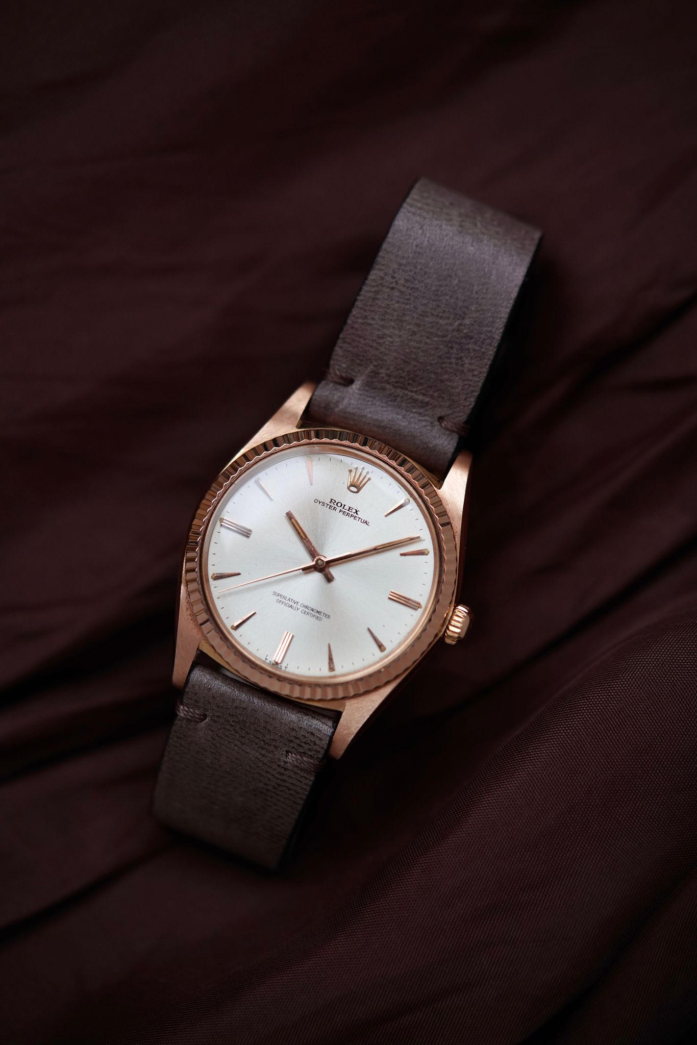 A most special find: an extremely rare and unseen before Rolex Oyster Perpetual ref. 1013 in pink gold ! This jumbo 36mm is the perfect watch if you dont love date windows!