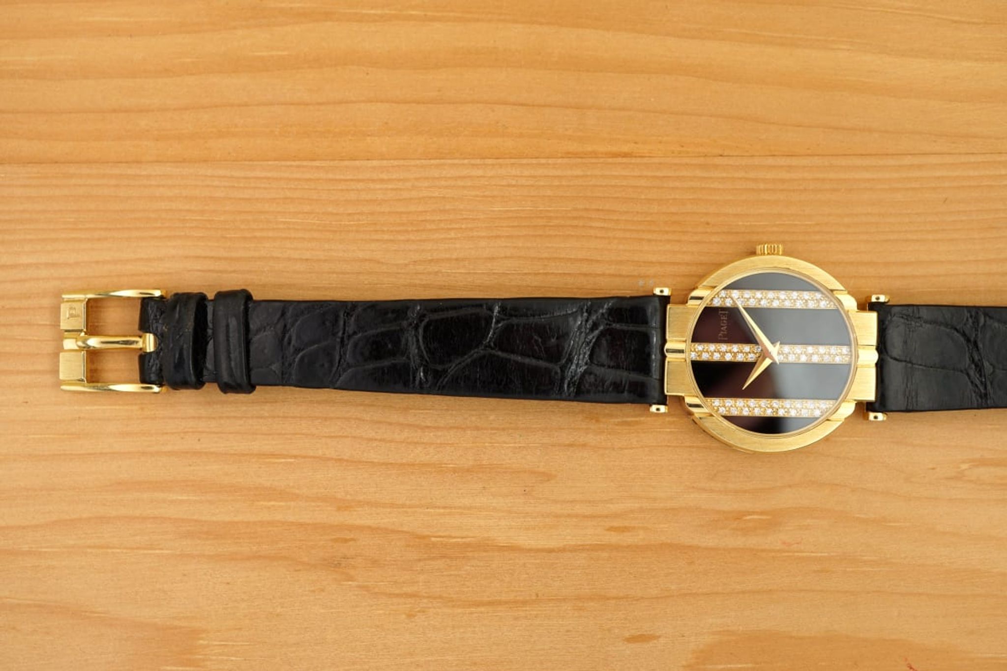 Coming with its box, original Piaget leather-strap & 18K buckle and a new perfectly fitting custom-made black leather strap for immediate use and preservation of the original one.