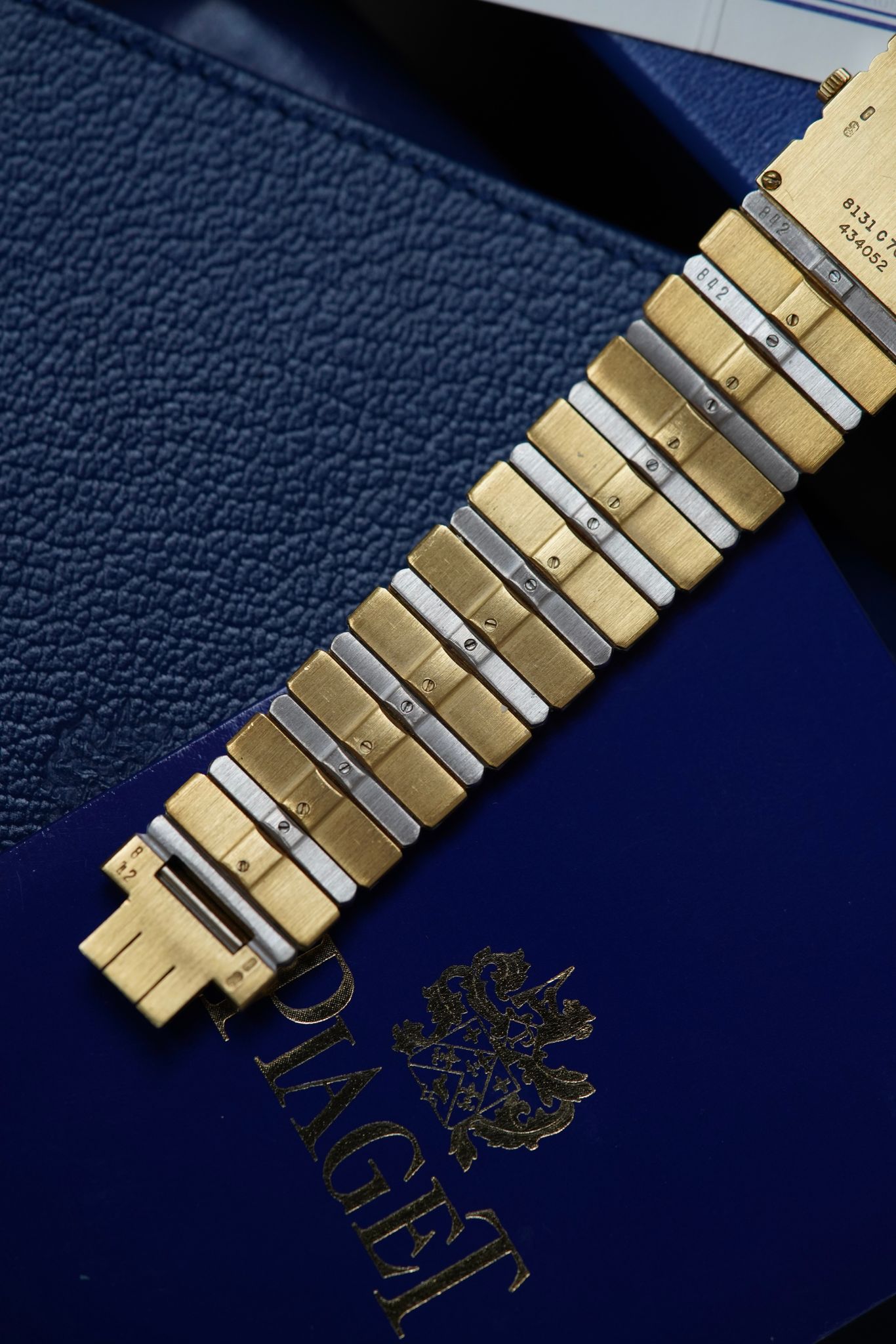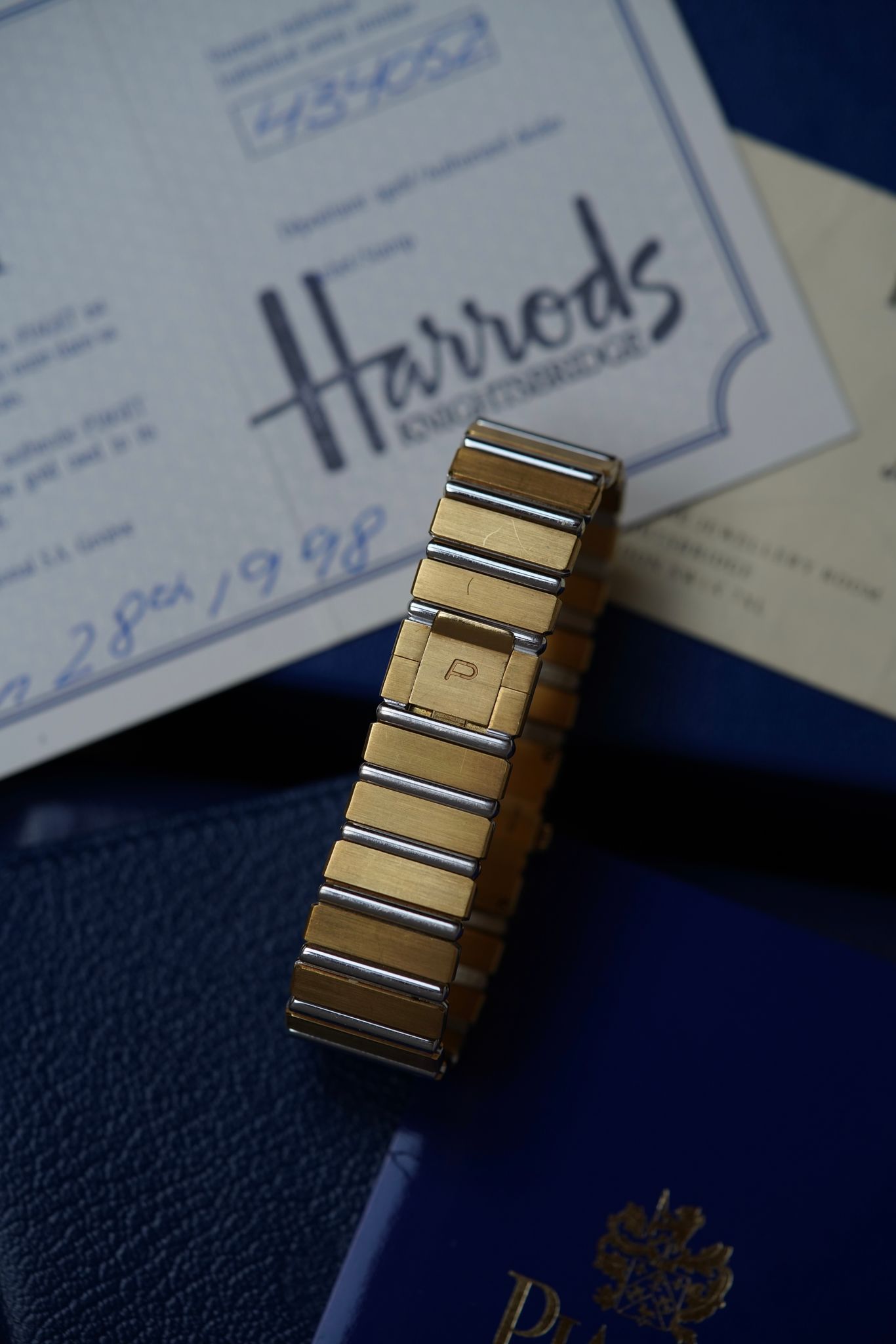 The Piaget Polo needs no introductions: at the time it was one of the most expensive watches money and especially taste could buy you. Imagine walking into Harrod’s London in 1998 and find this gem: a two-tone white and yellow gold mid-size reference 8131 C 701 with onyx dial.