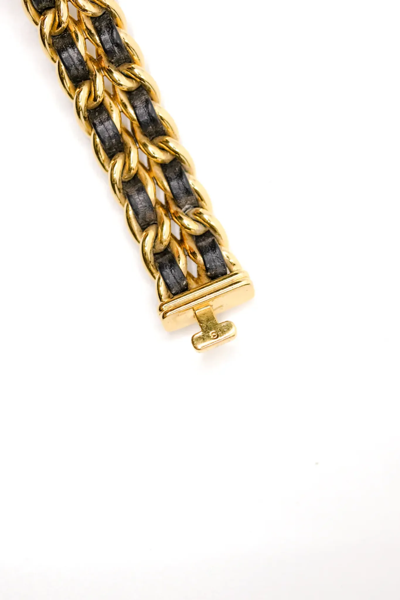 Chanel gold-plated and leather case and bracelet.