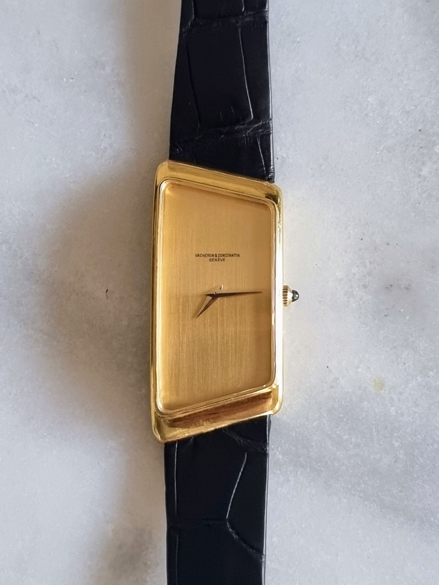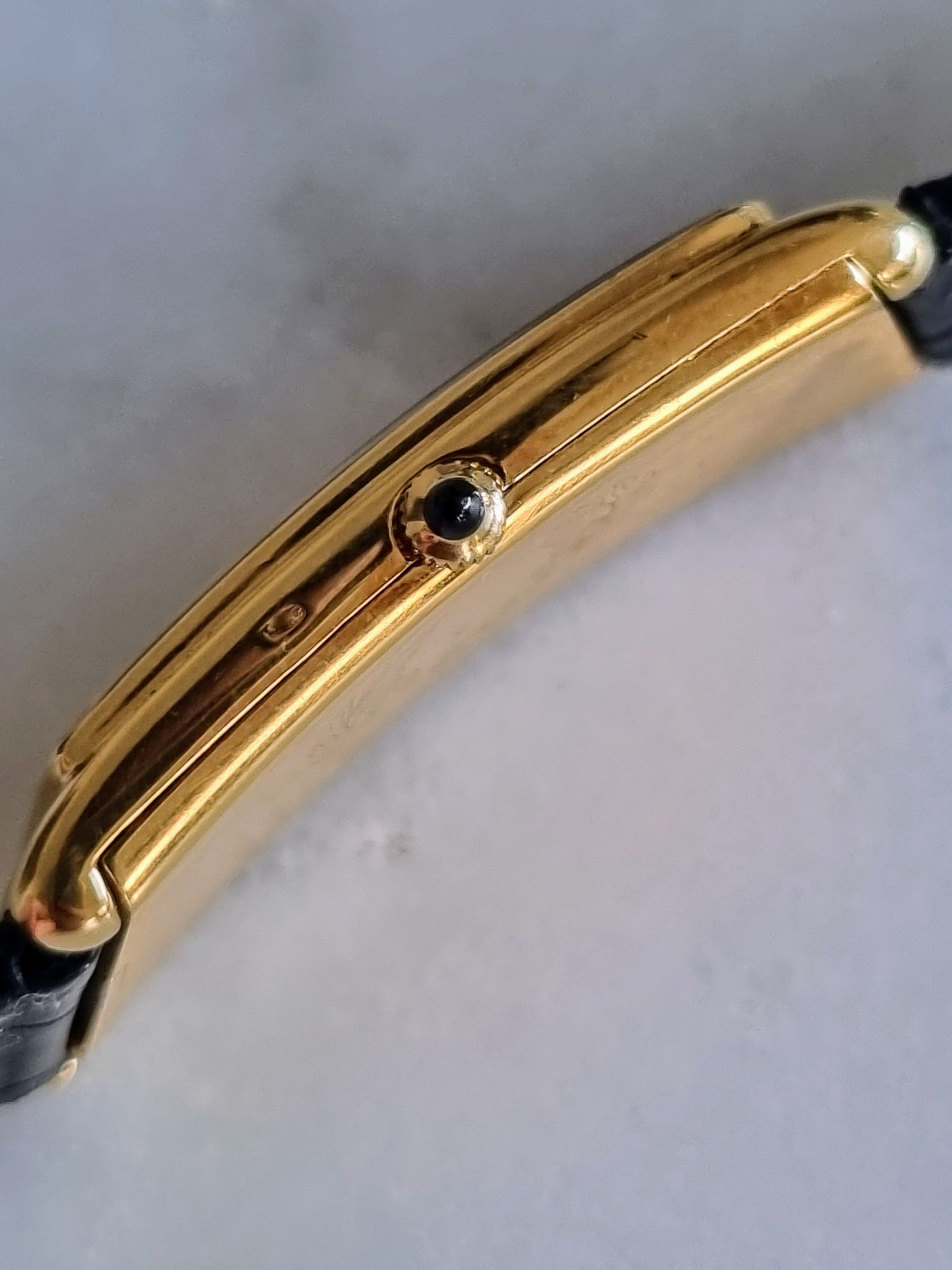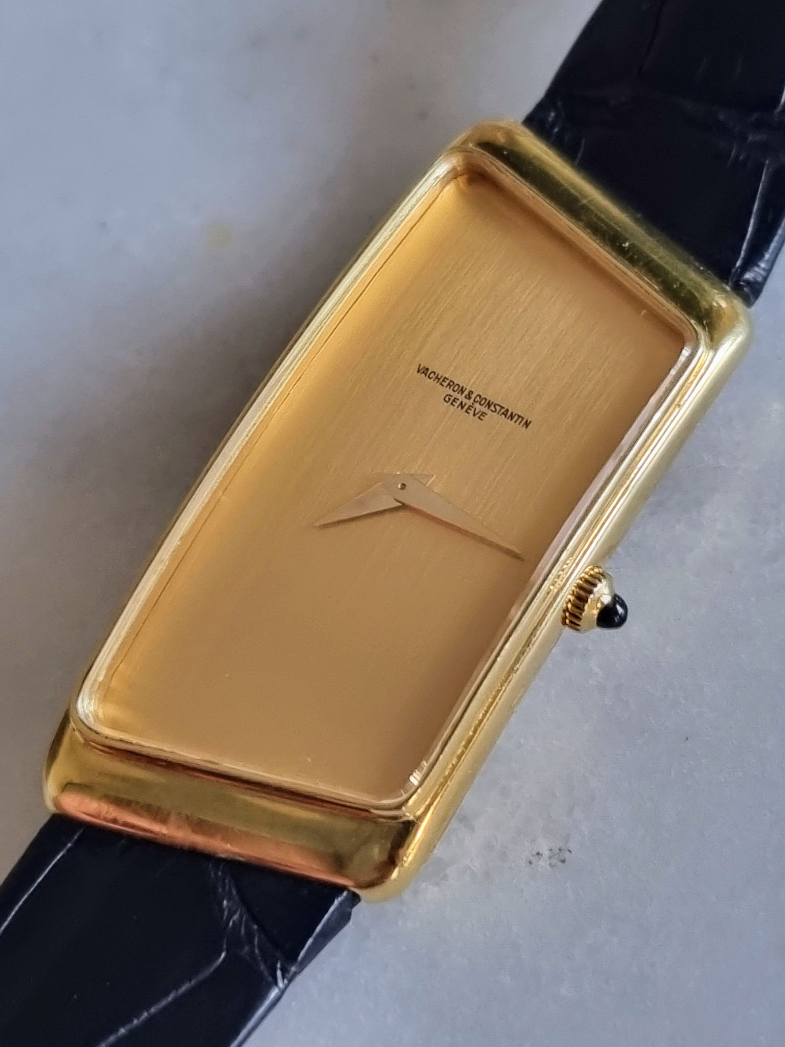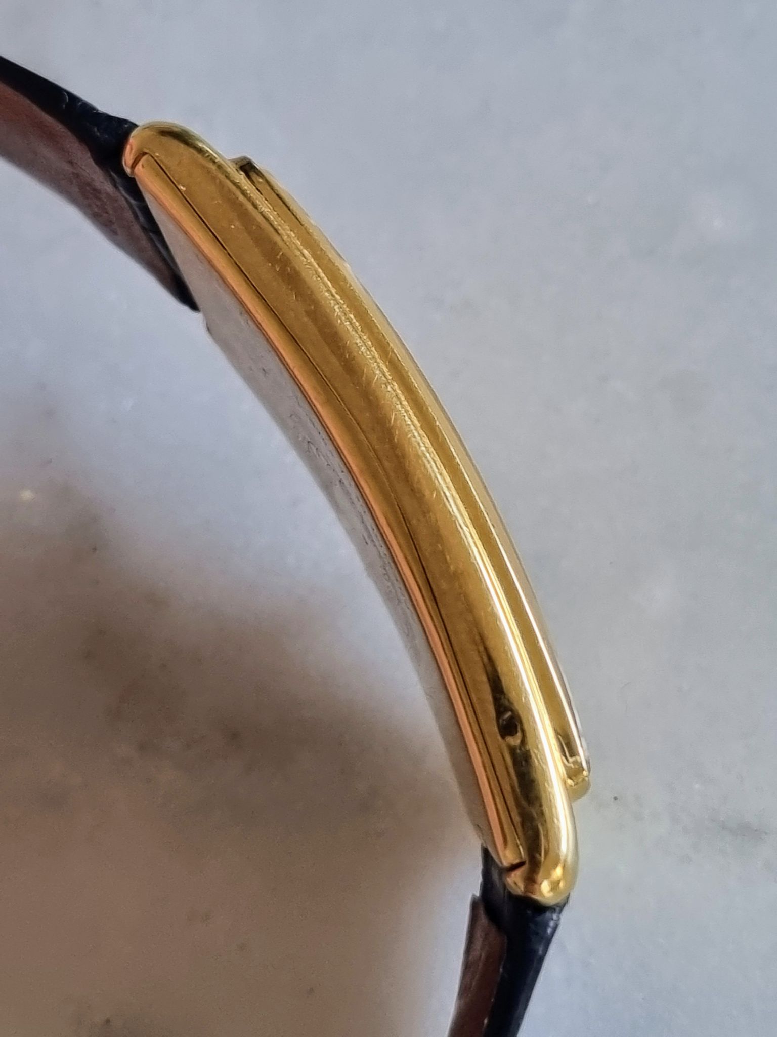 Lovely deep gold dial. This model has a lovely curved thin case which reminds me of the Cartier Tank Cintrée.