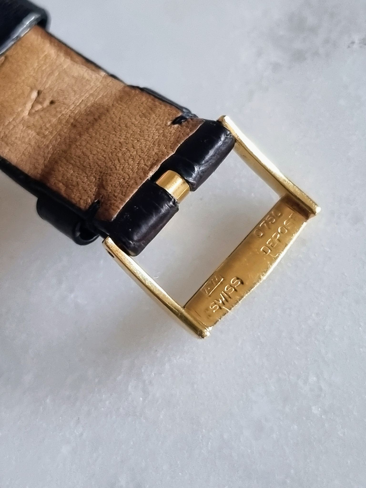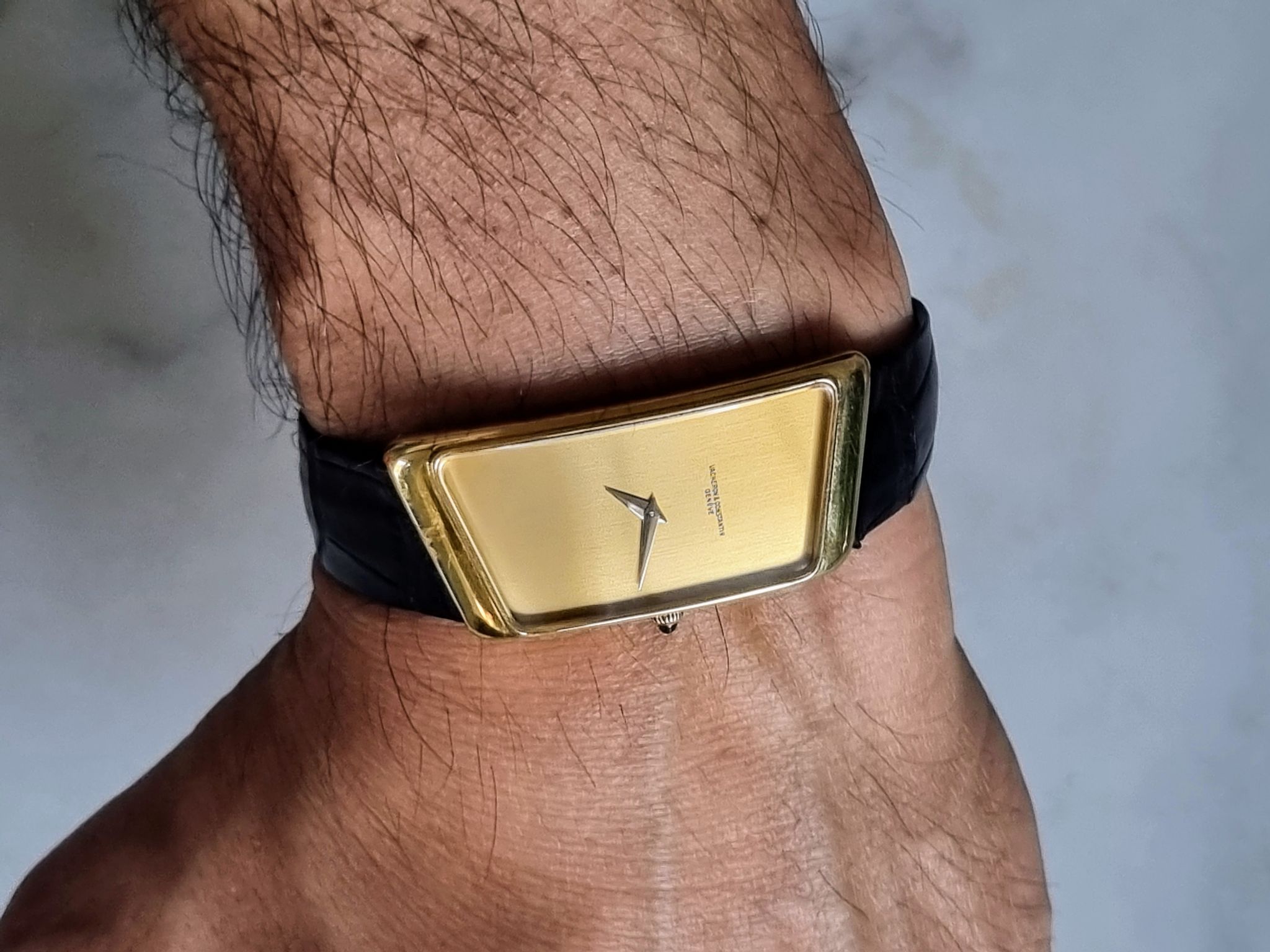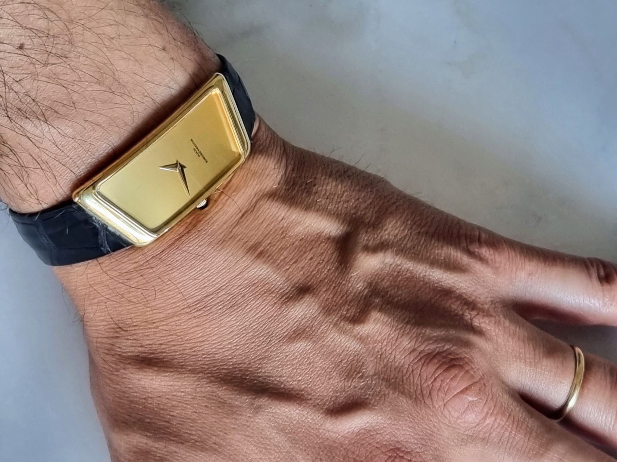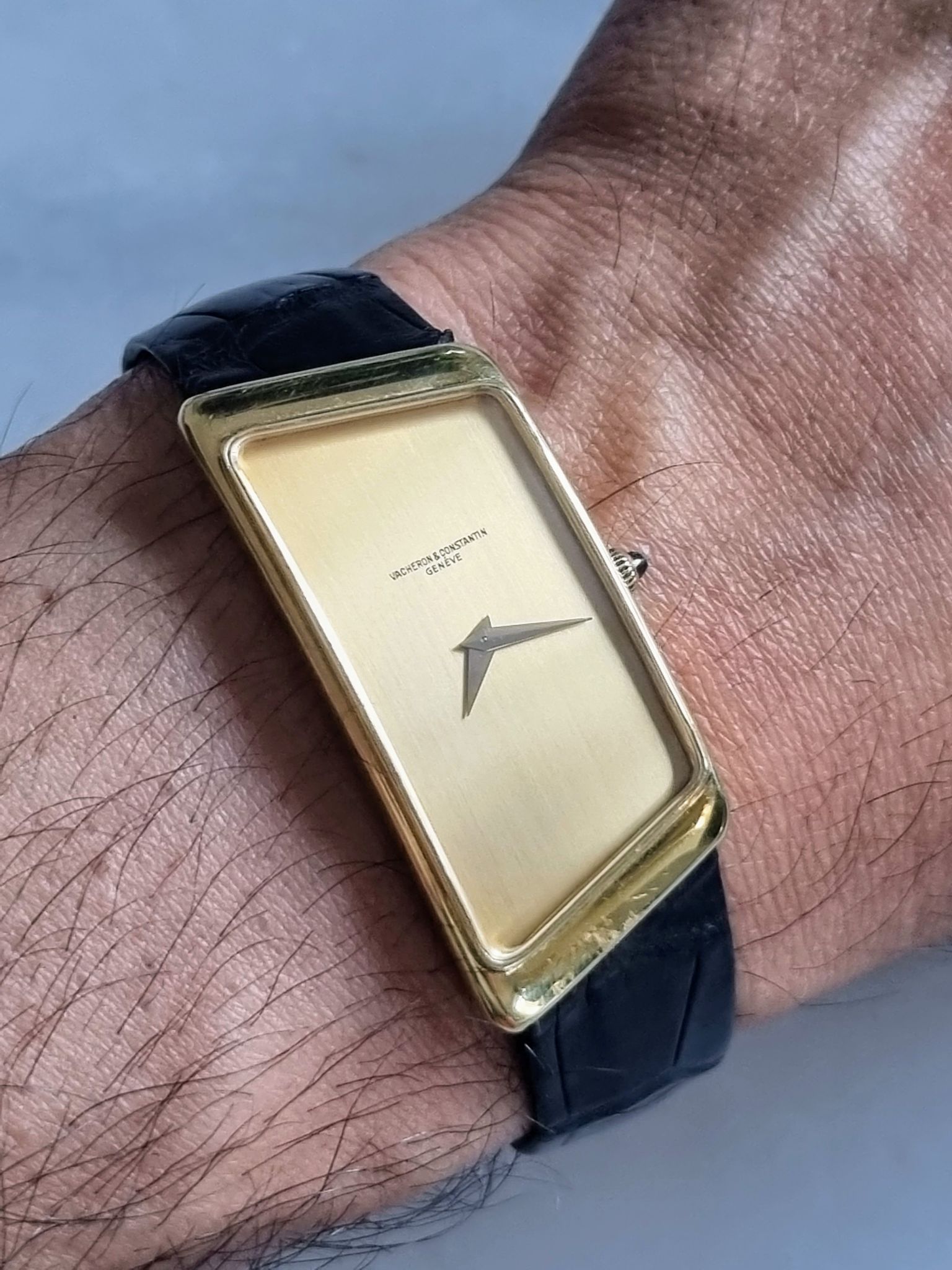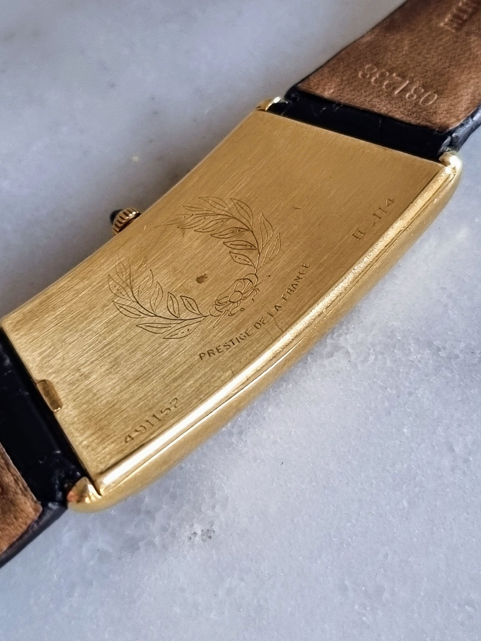 Lovely deep gold dial. This model has a lovely curved thin case which reminds me of the Cartier Tank Cintrée.