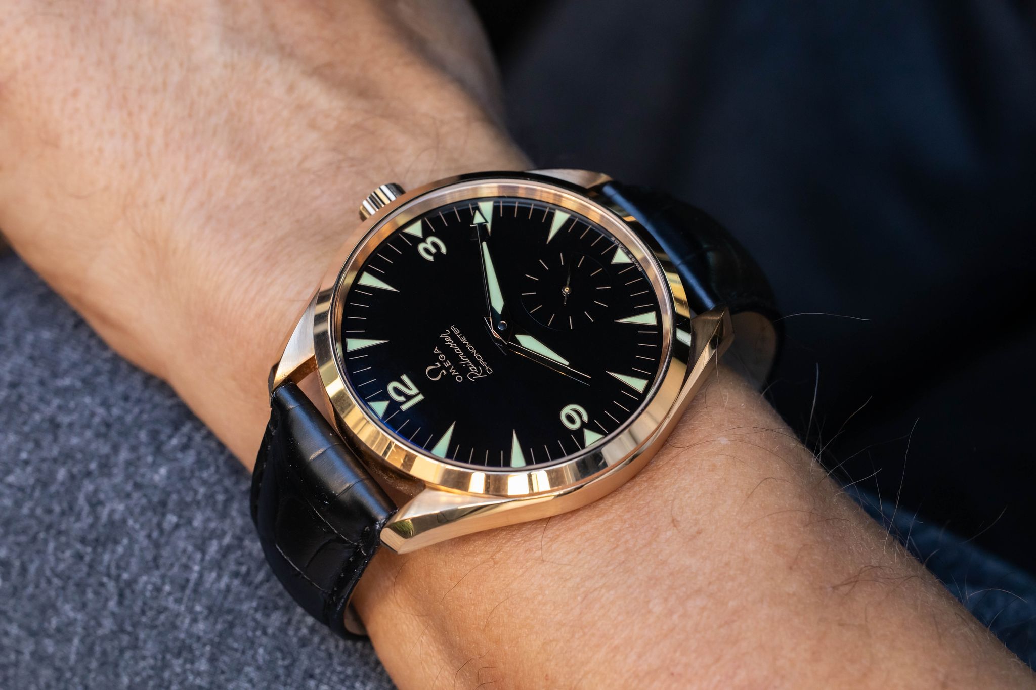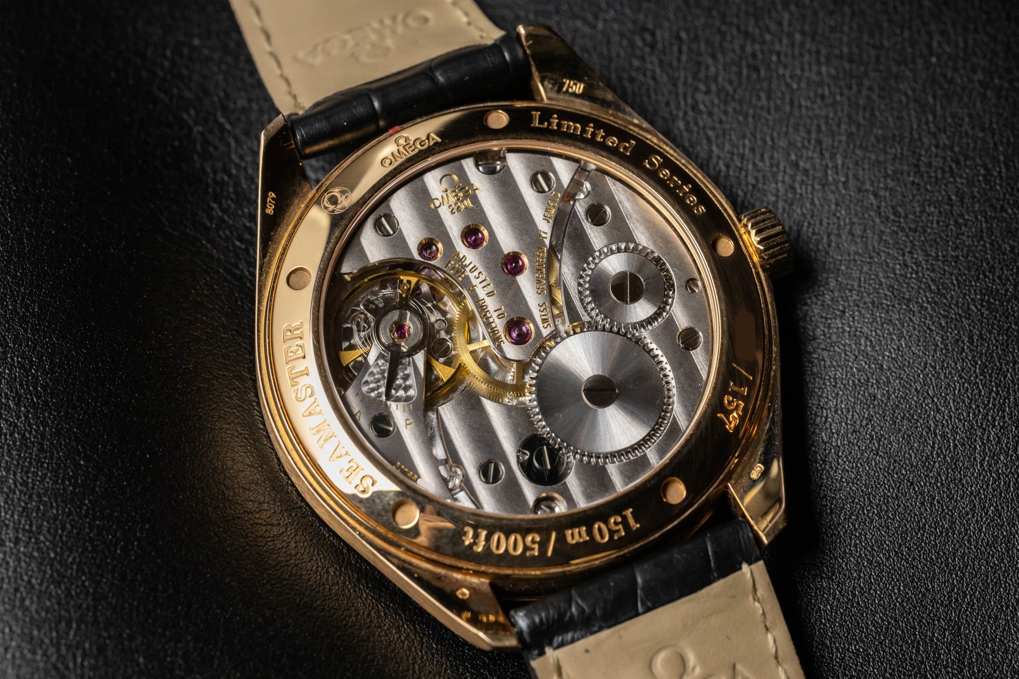 This Railmaster XXL is an exceptional timepiece, offering a bold and luxurious statement with its 49mm case, crafted from 18K red gold. This model is a larger and more exclusive variant of Omega's legendary Railmaster collection.