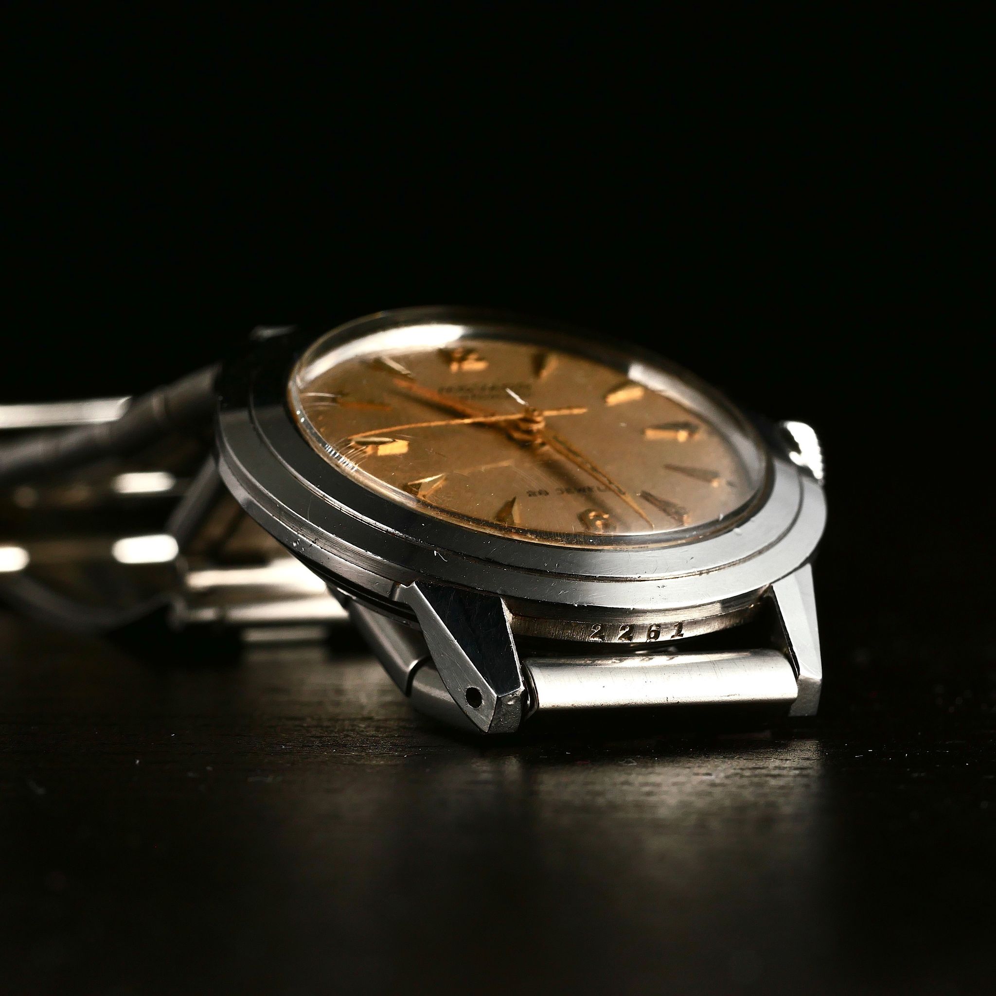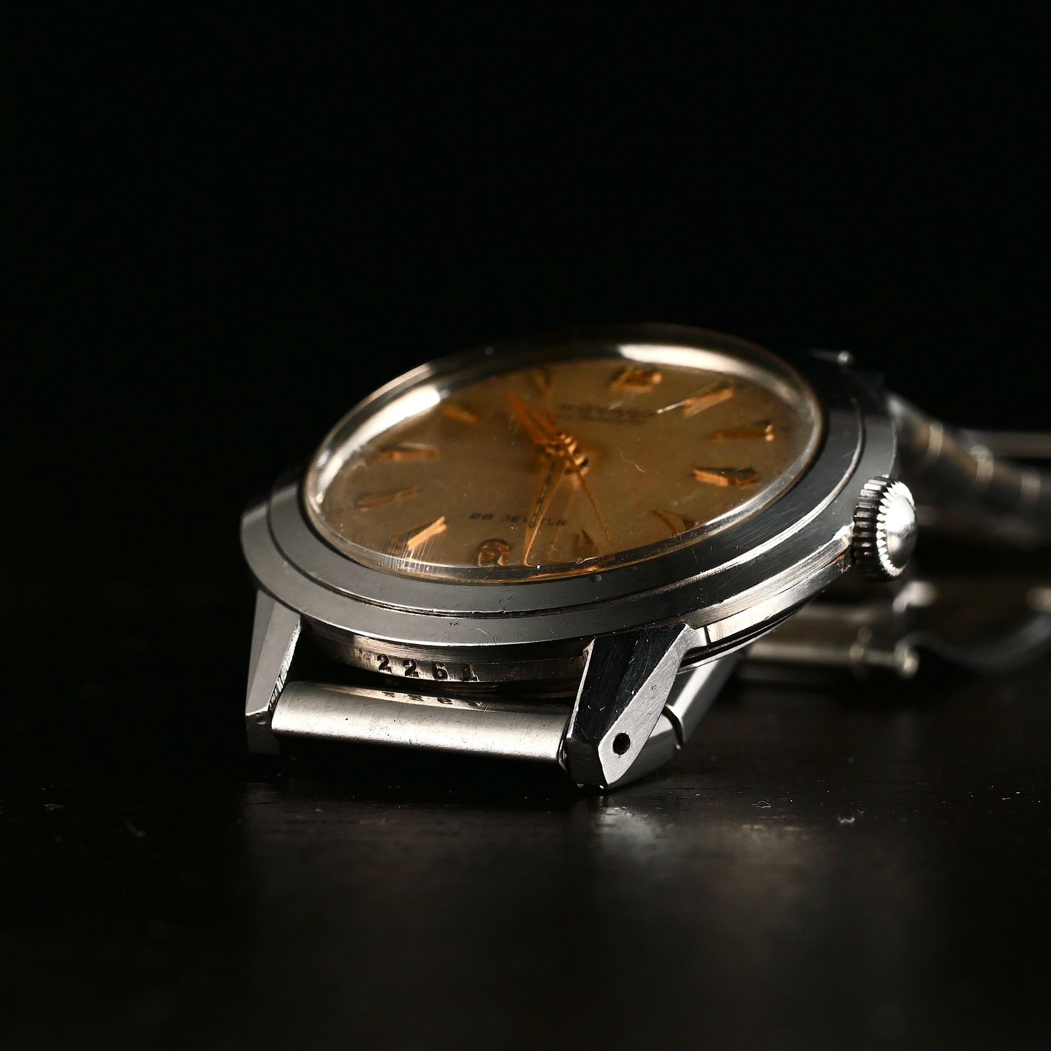 FEATURES: Stainless Steel, Original Period Correct Extensible Steel Bracelet, Stepped Bezel, Alpha Hands, Plexiglass