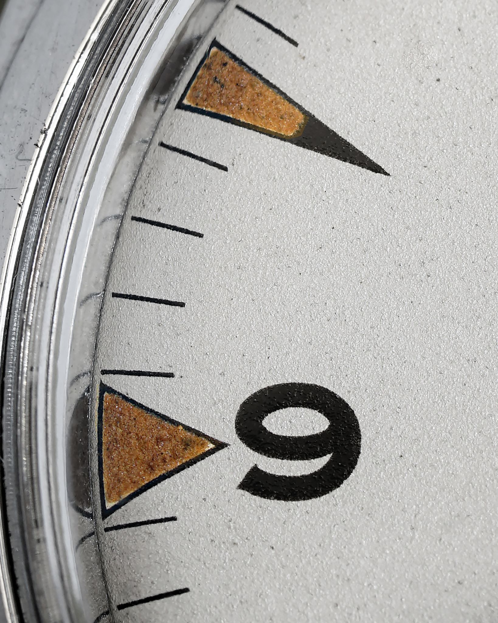 The thin crystal and case emphasized the dial, featuring luminescent triangles and ‘broad arrow’ hands inspired by the Railmaster. However, the Ranchero was discontinued by 1959 due to limited success. This is why so few exist today, and finding one in good condition is rare, let alone one like this, in exceptional shape.