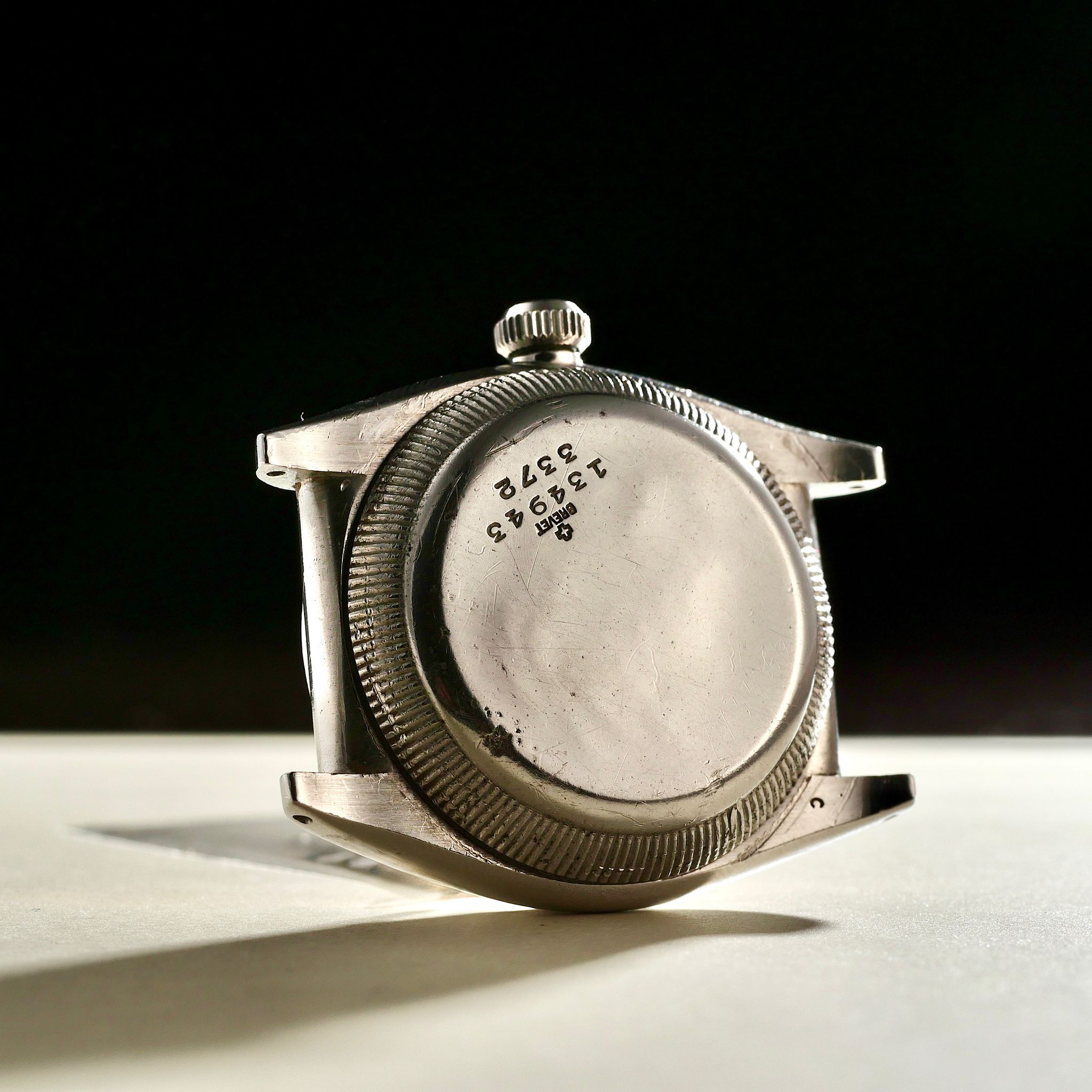 This 3372 is one of these masterpieces. Its burnt salmon dial feels like the first rays of dawn over a quiet horizon. While the dial may have been sourced from another bubbleback model, it remains entirely original and untouched. Its authenticity is underscored by the Geiger scale, which confirms its radium lume, a detail that collectors know is as rare as it is precious.