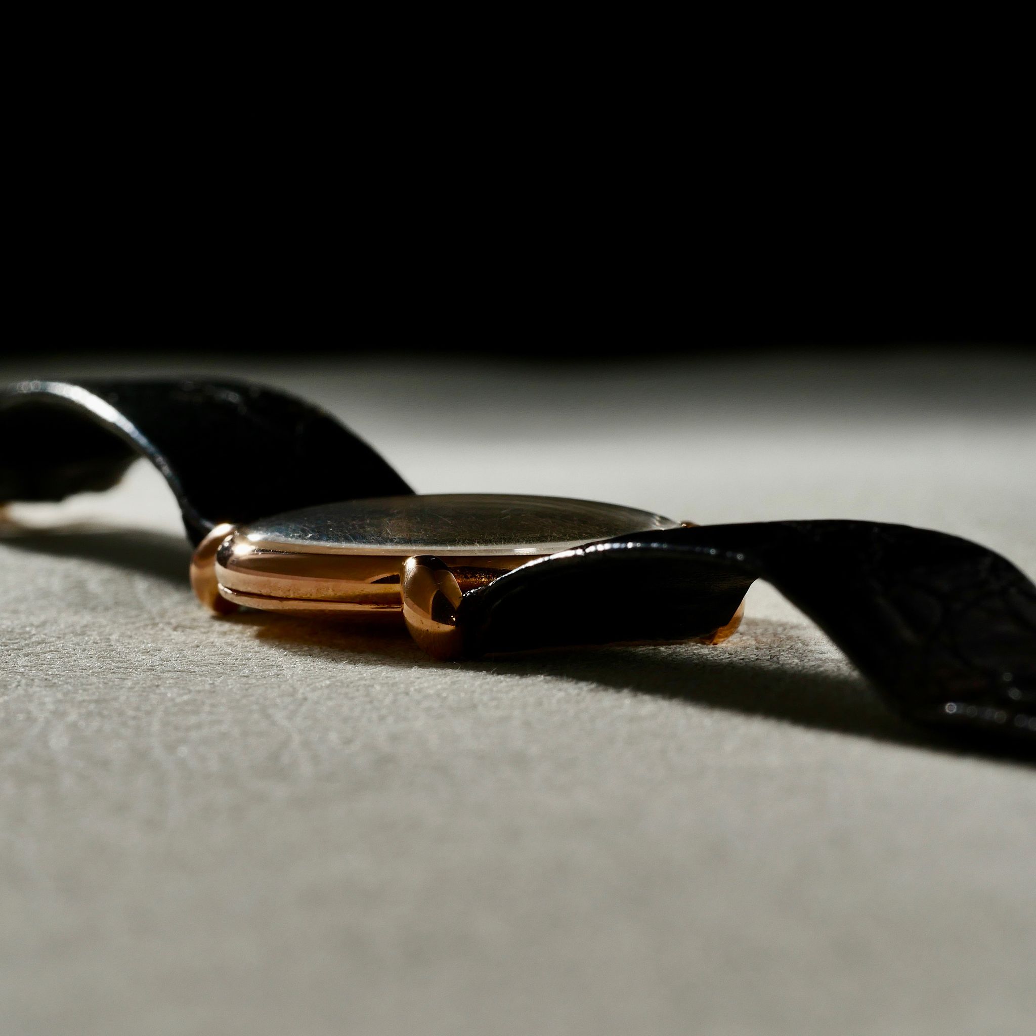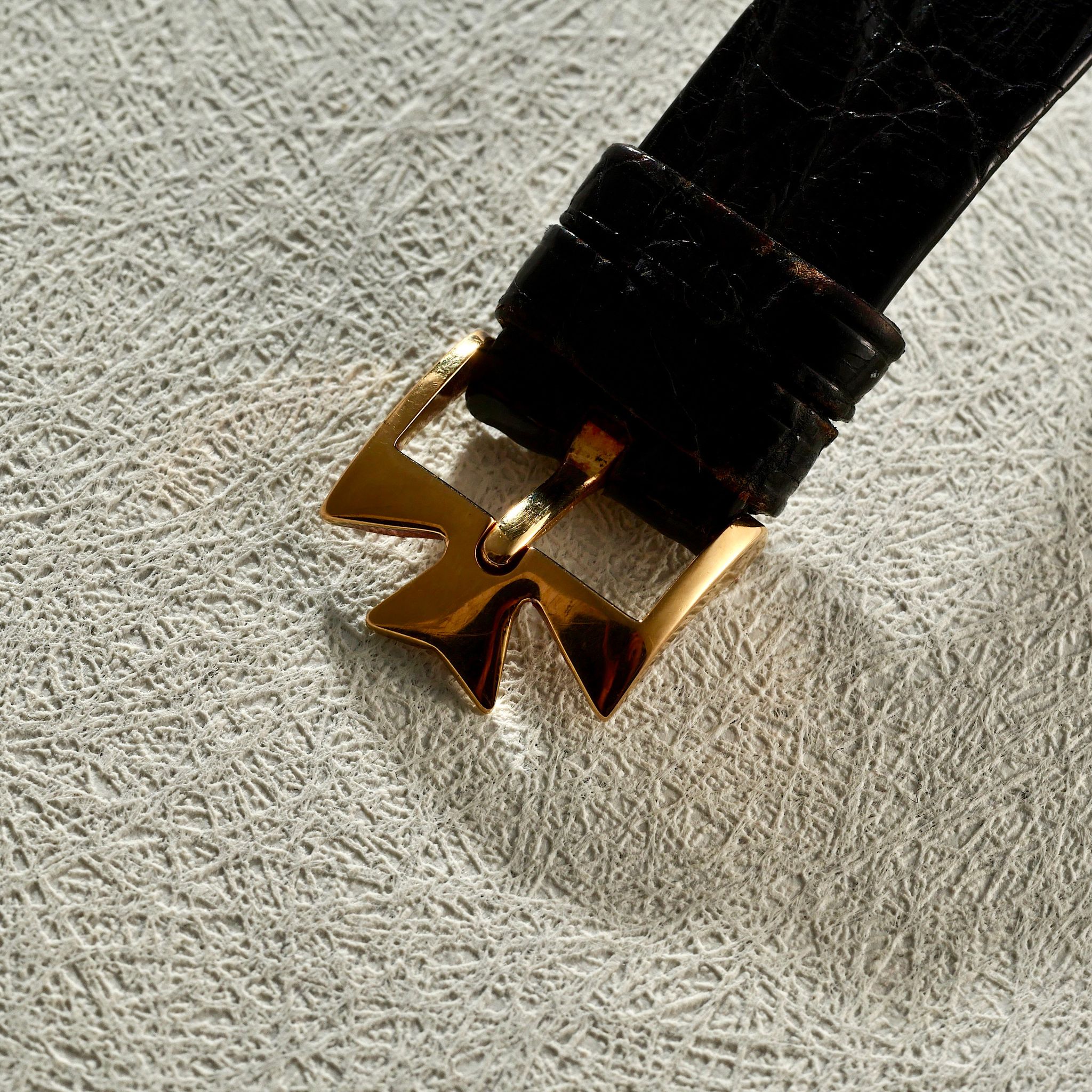 SPECIFICATIONS: 18k gold case, Alligator leather strap, Original Vacheron 18k gold buckle, Original, untouched dial with signature guilloche, Very Fine and Rare.