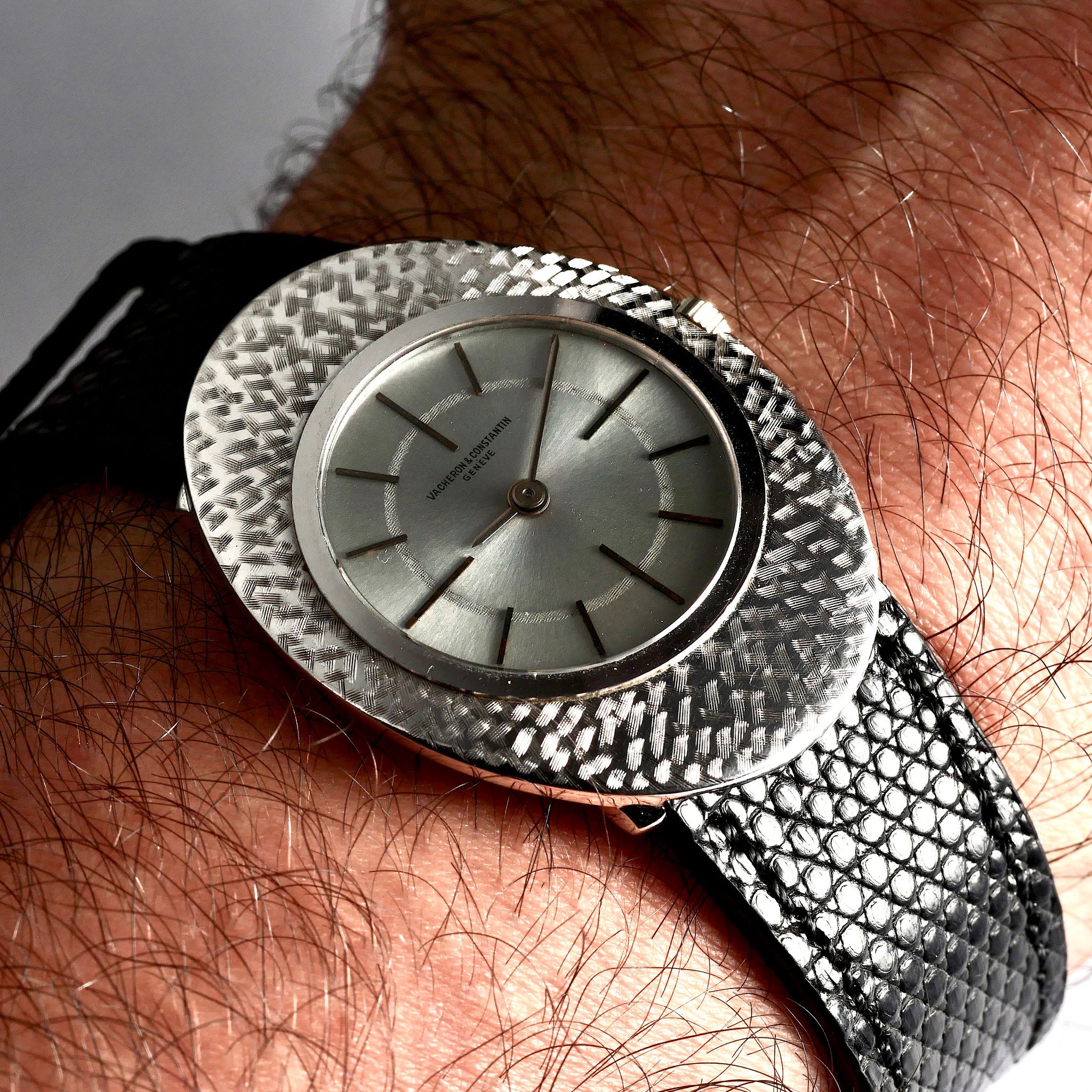 The oval case, bold and unconventional, appears to hover above the wrist, like the curve of a distant planet. The dial is a masterpiece of texture, a play of light and shadow that showcases Vacheron’s unparalleled dominance over design. While its competitors rely on complications and embellishments, Vacheron chooses simplicity, proving that true genius lies in restraint.