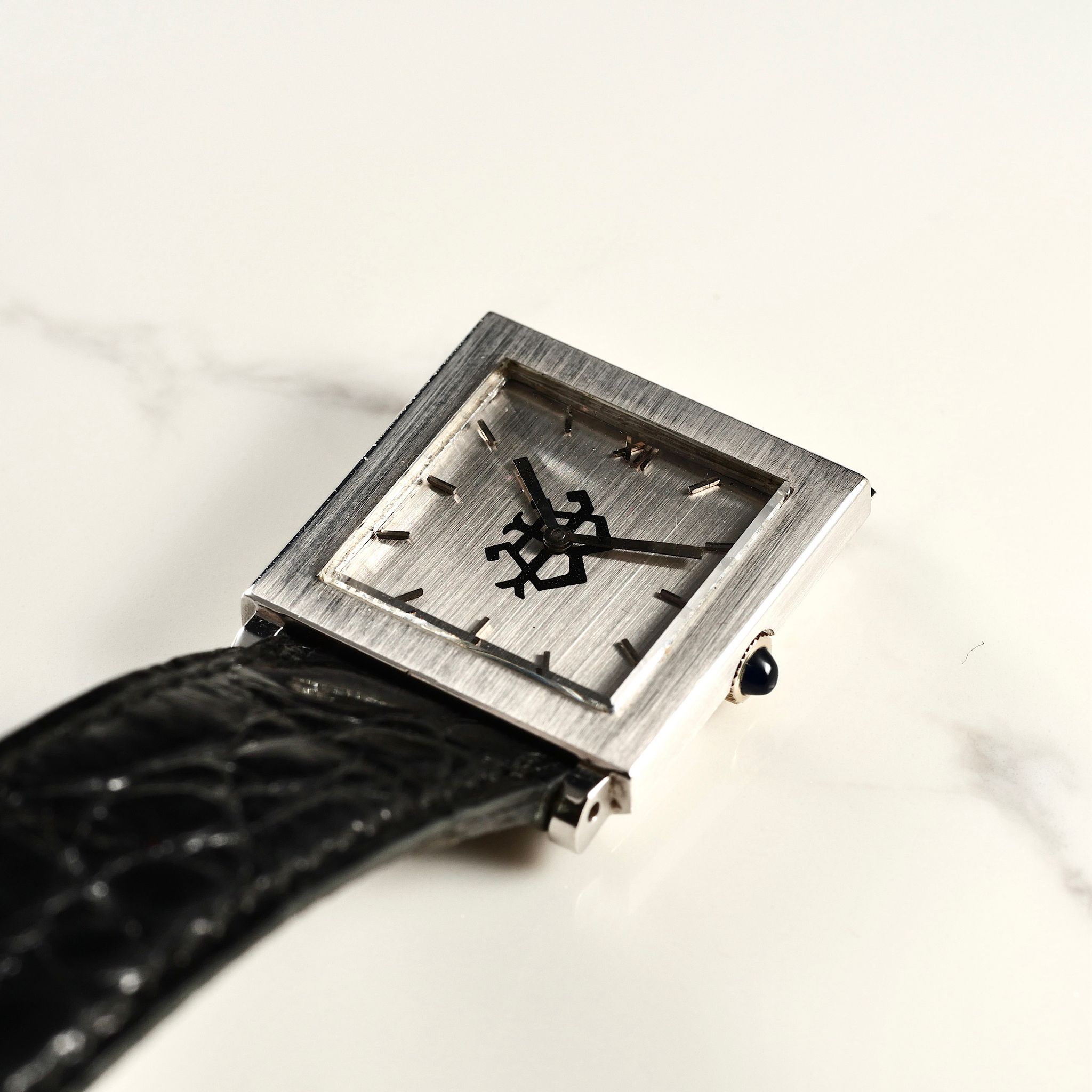Square, impossibly thin and unmistakably Parisian; this Boucheron Carrée in 18k white gold, was born in the late 1960s.