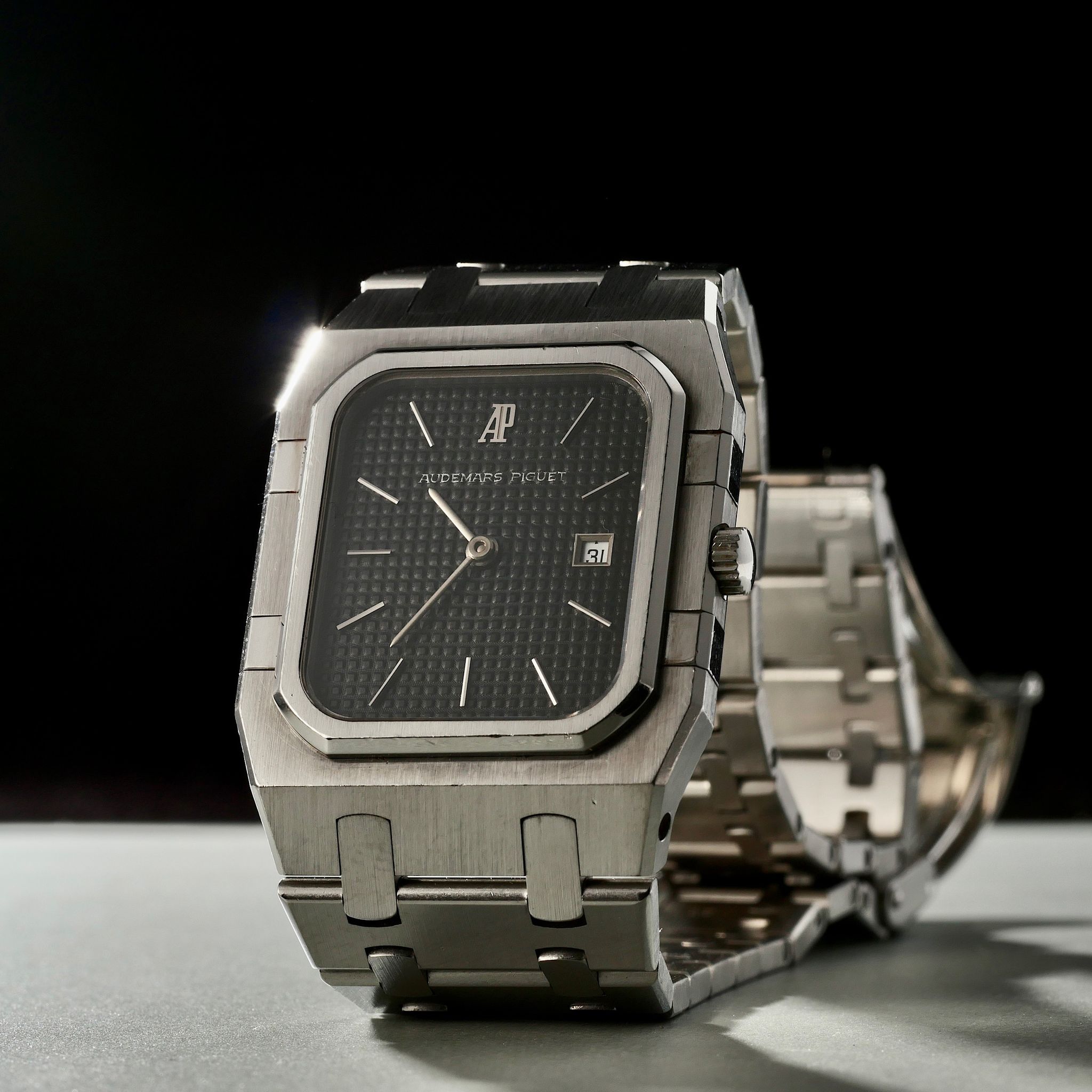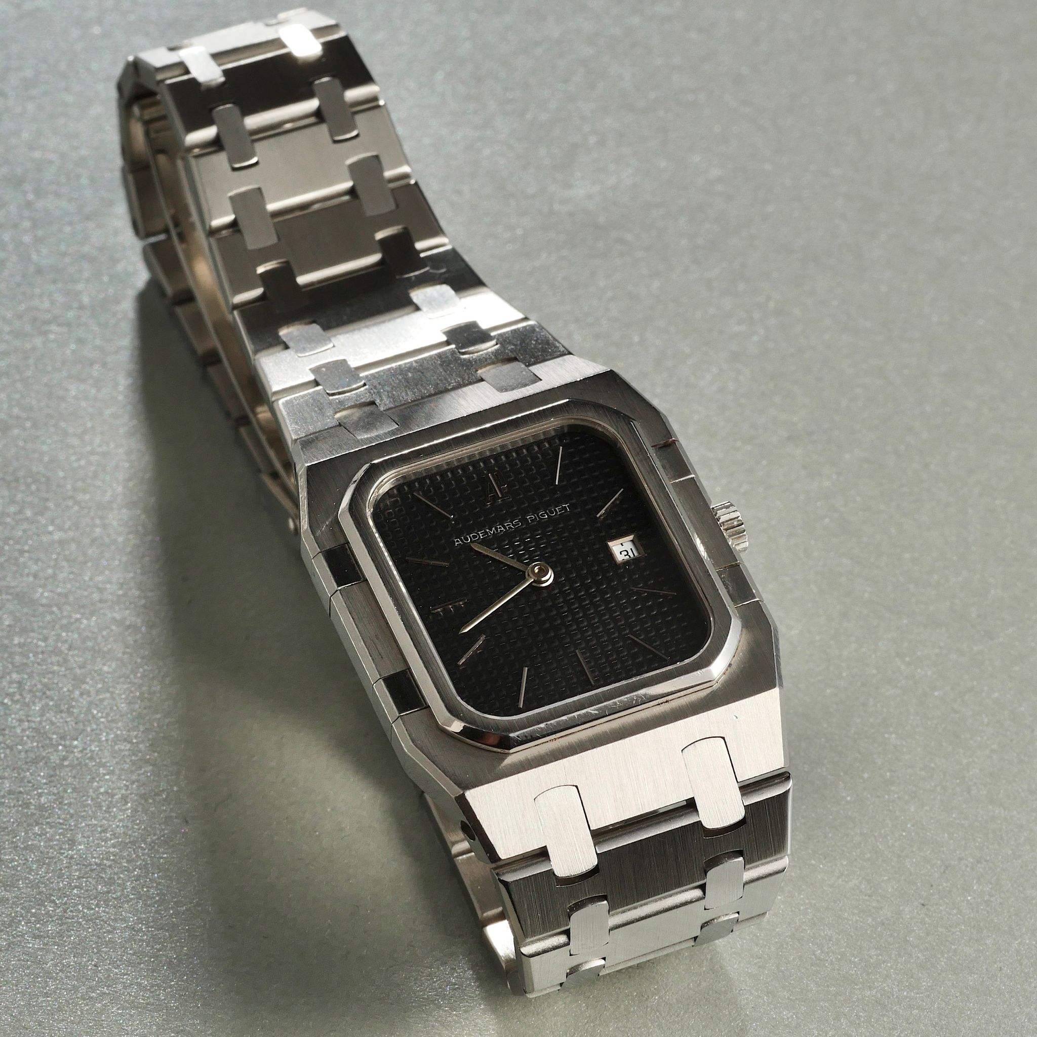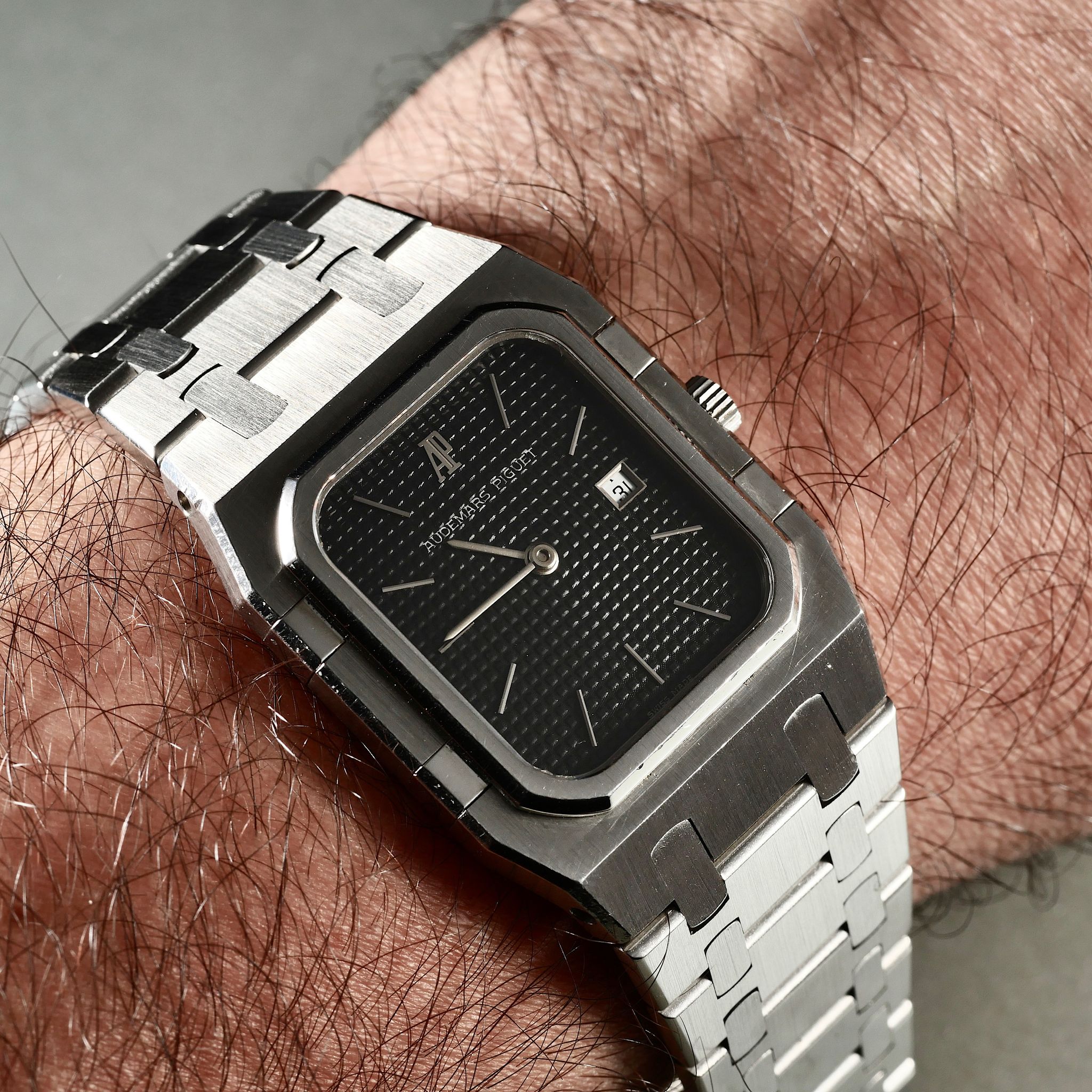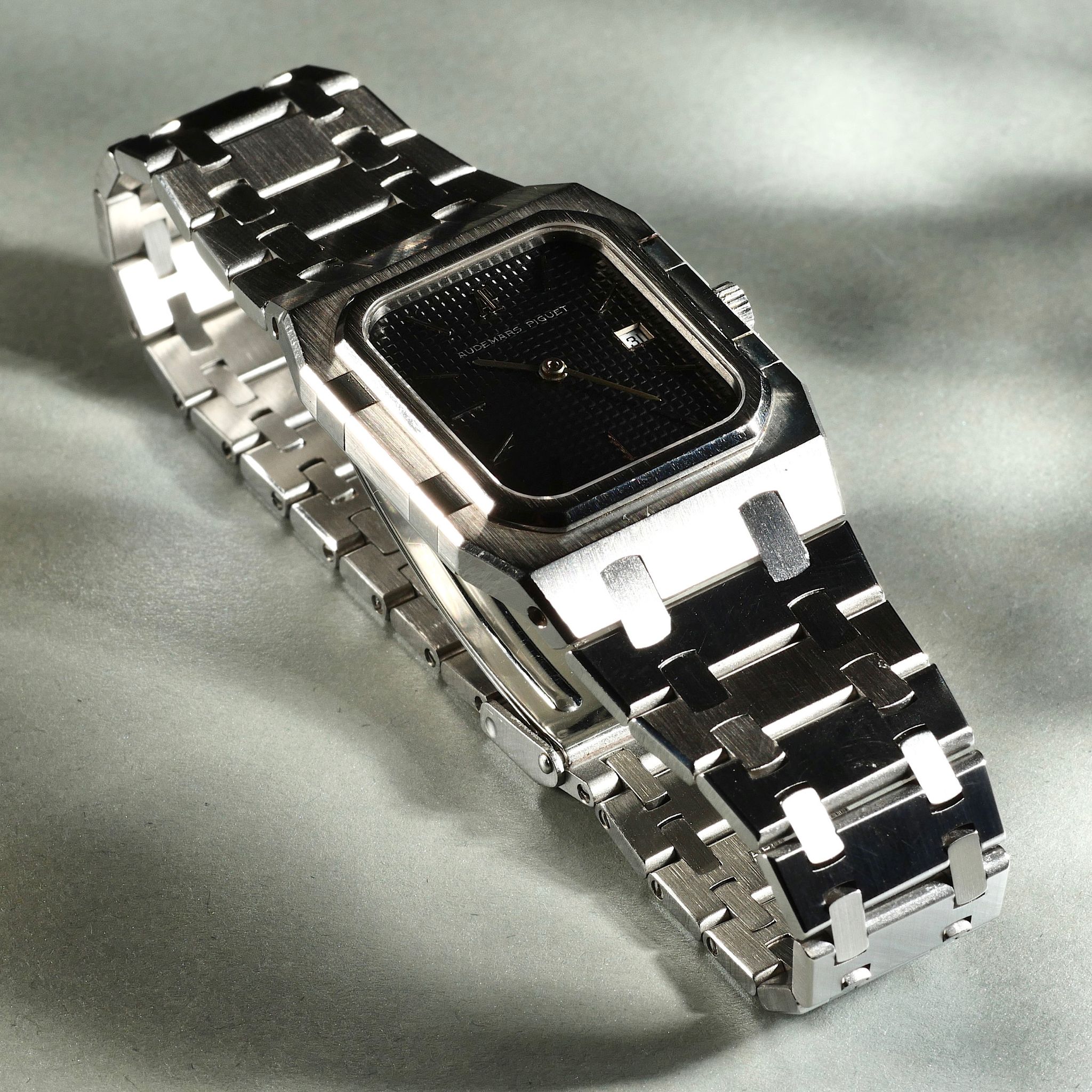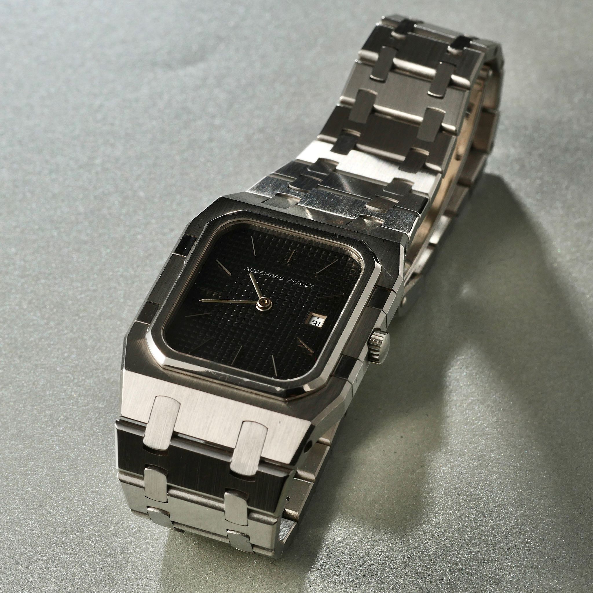 Unlike the other rectangular Royal Oaks, the 56049ST has a personality of its own. At first glance, the classic Genta designed steel case looks similar but then you notice a date window at three o'clock which doesn’t exist in the normal models.