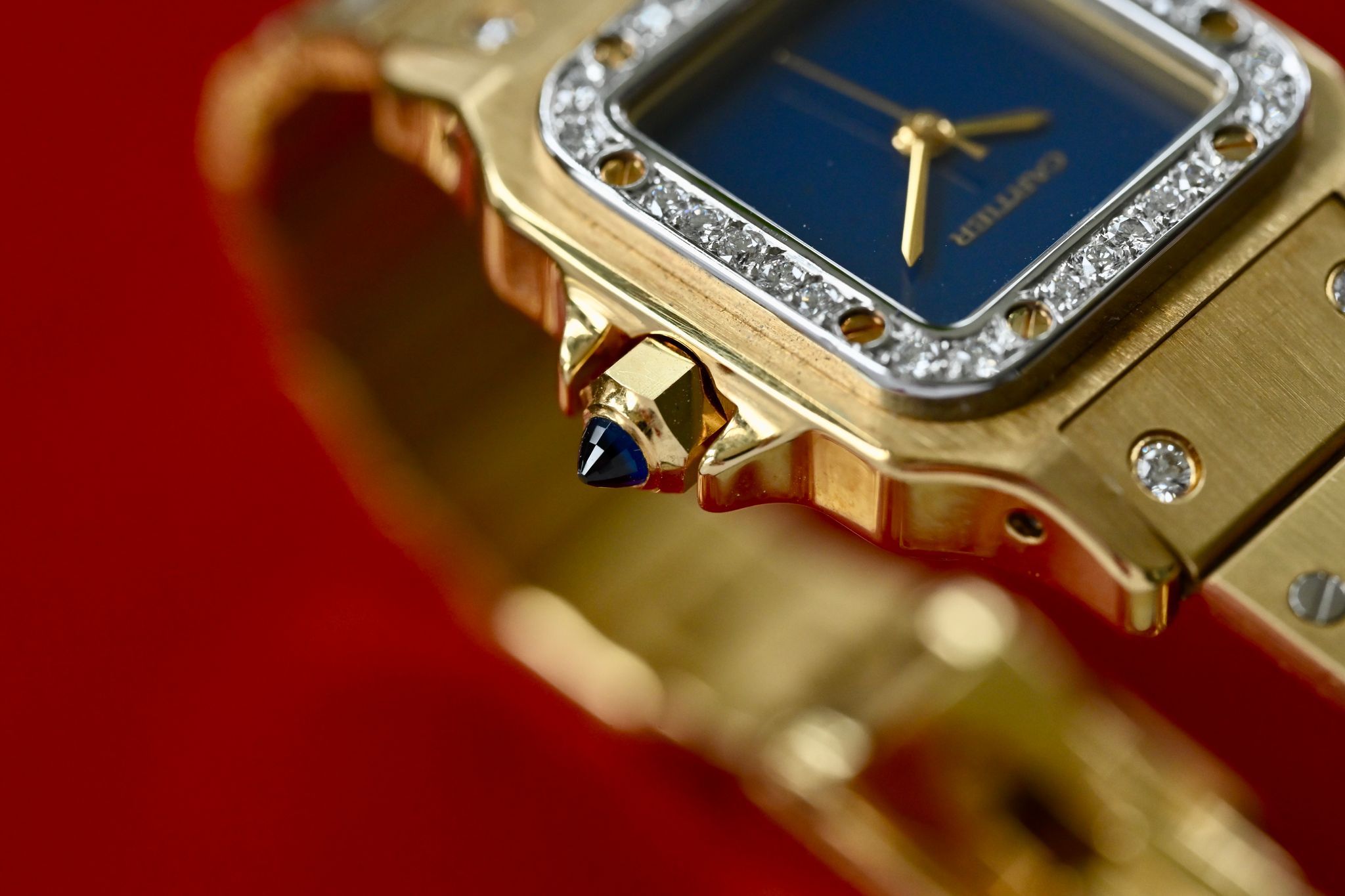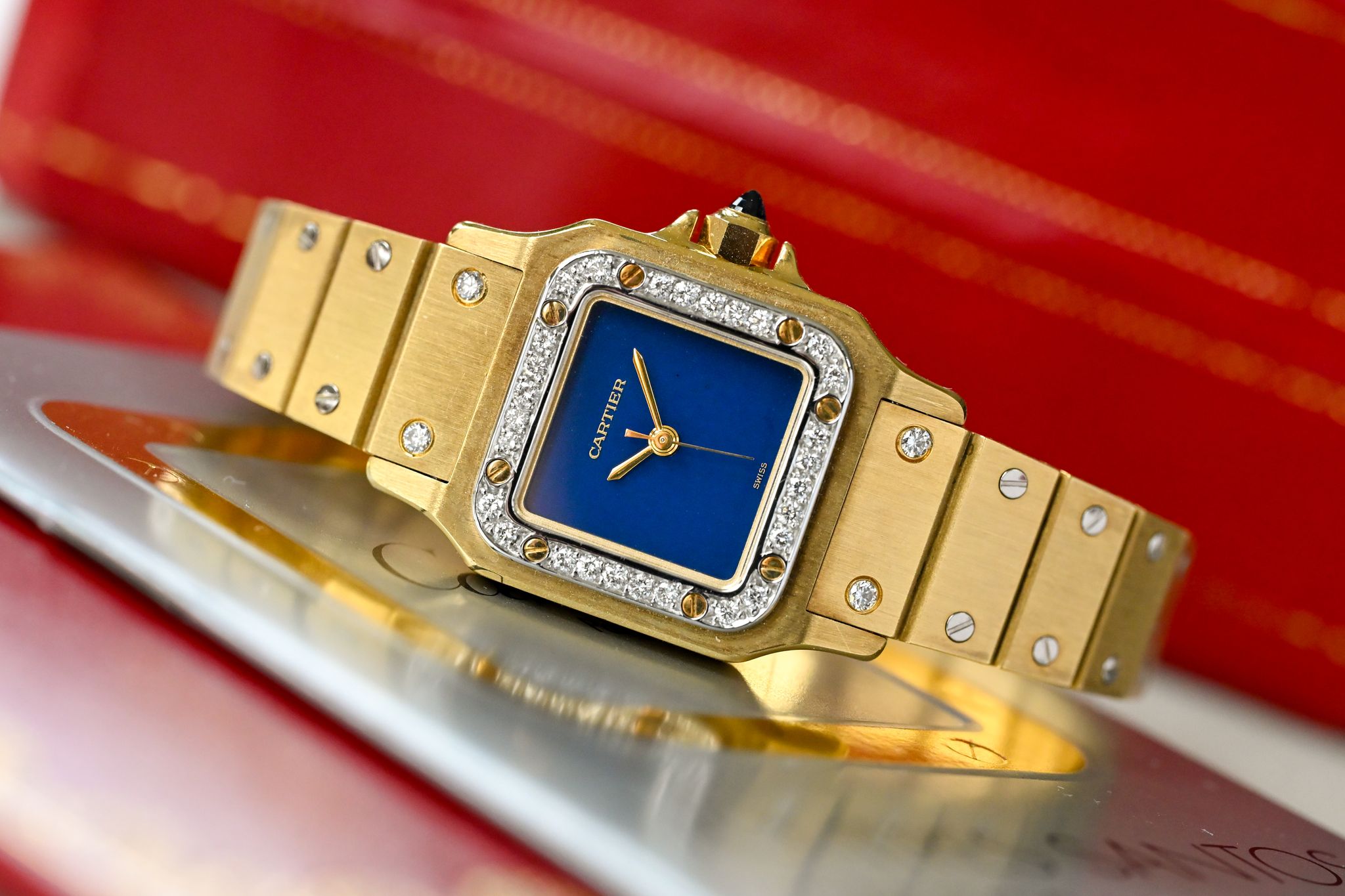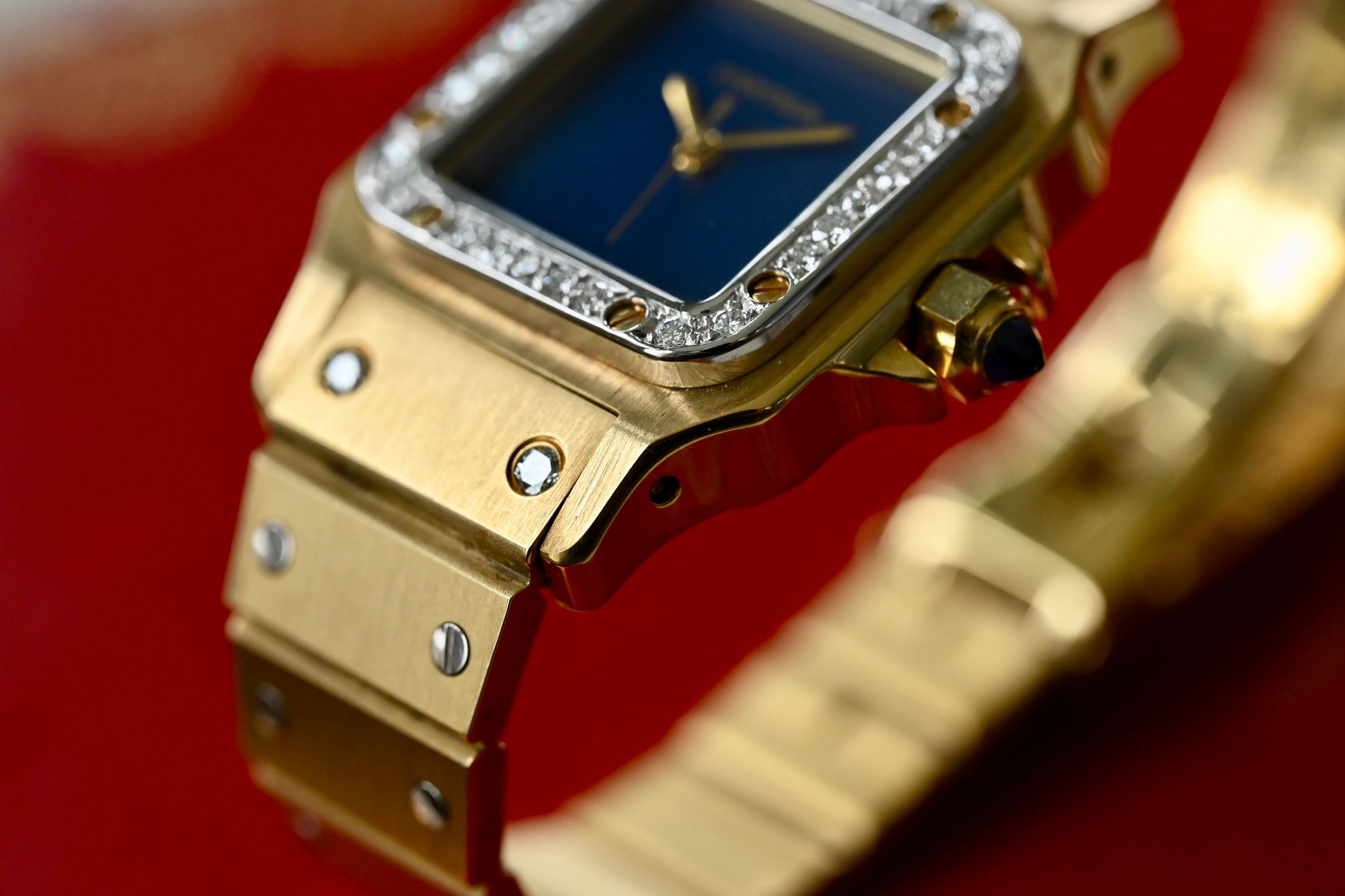 Cartier - Rare Santos Or Massif 18k Gold Blue Agate Dial & Factory Diamonds