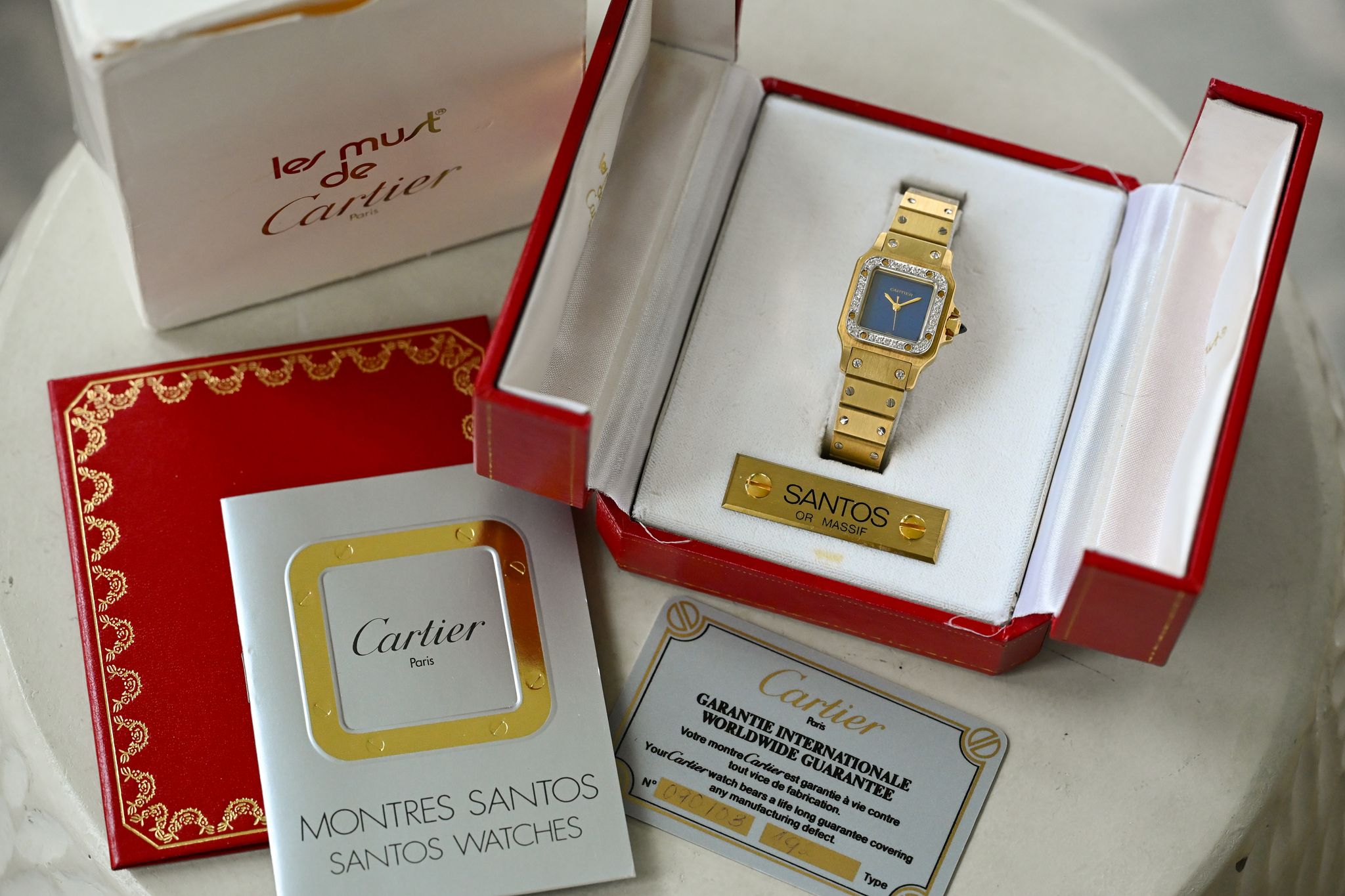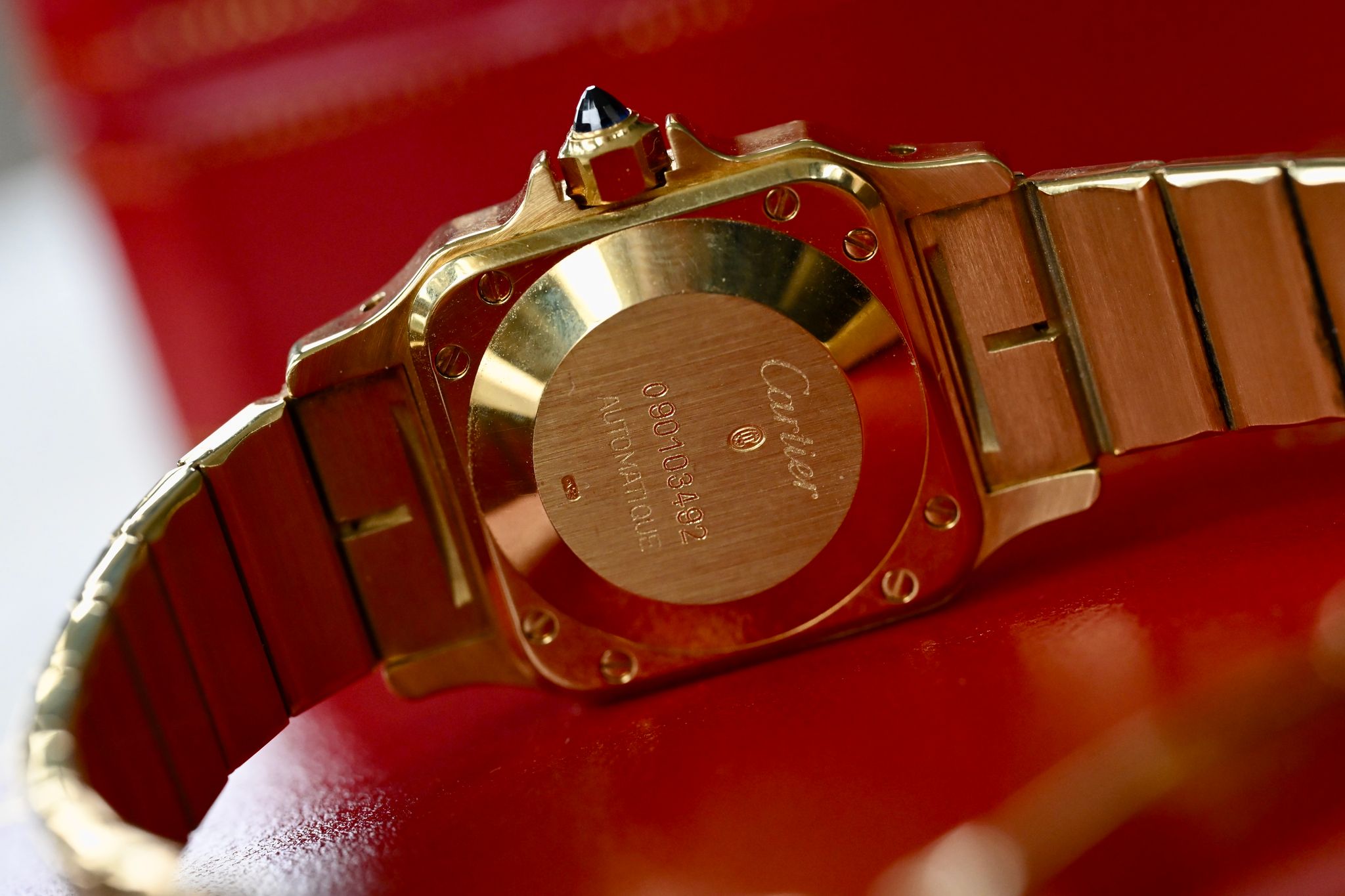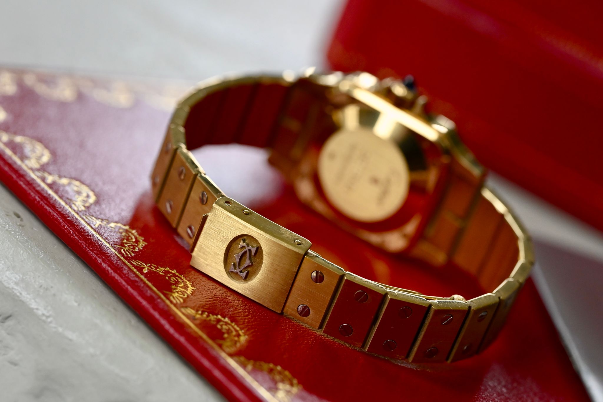 Cartier - Rare Santos Or Massif 18k Gold Blue Agate Dial & Factory Diamonds